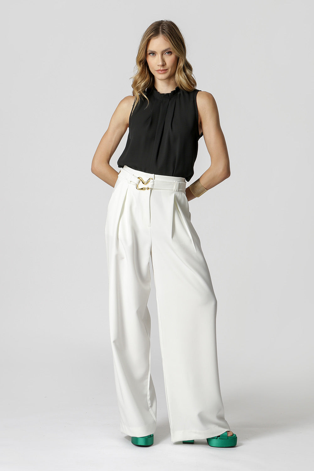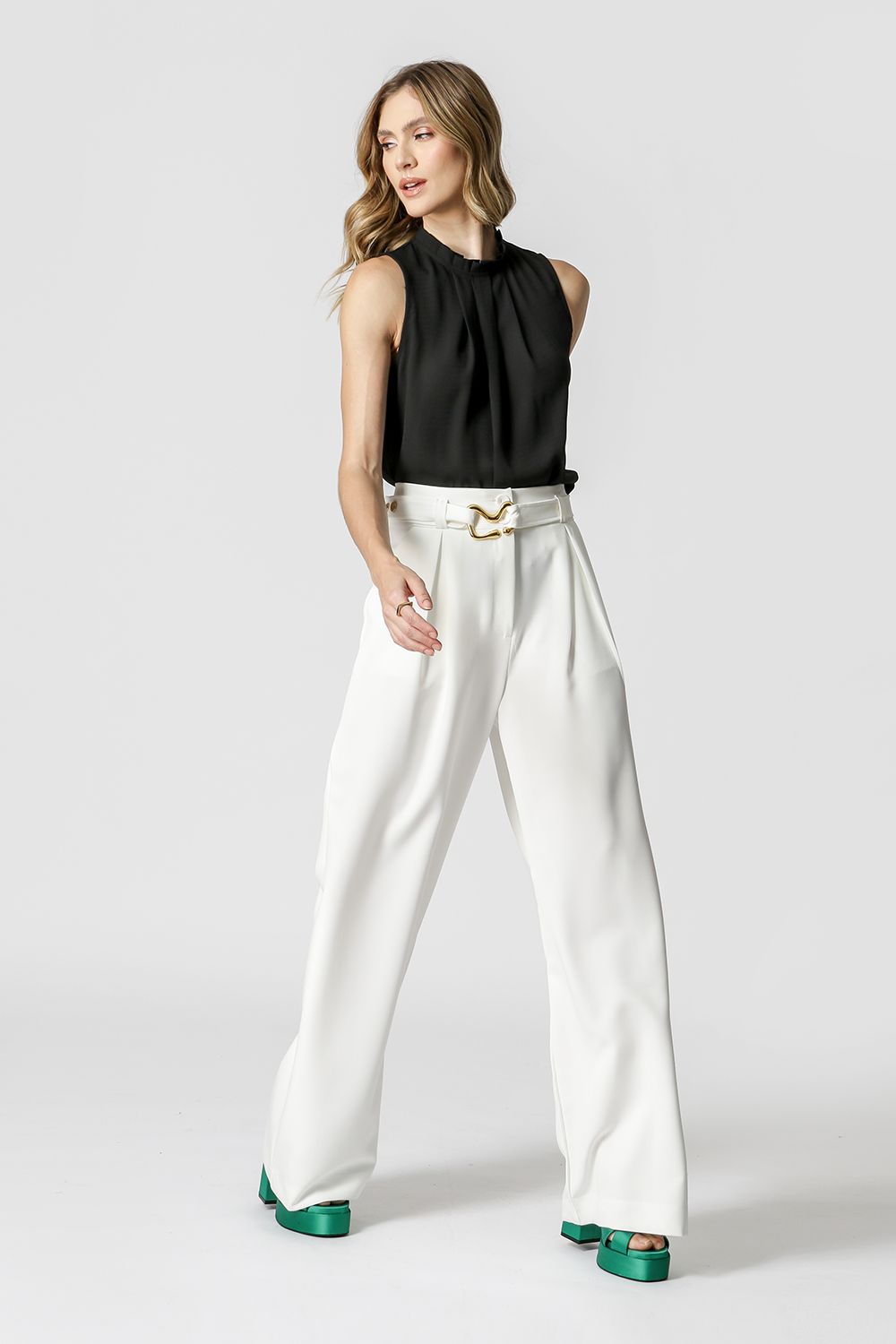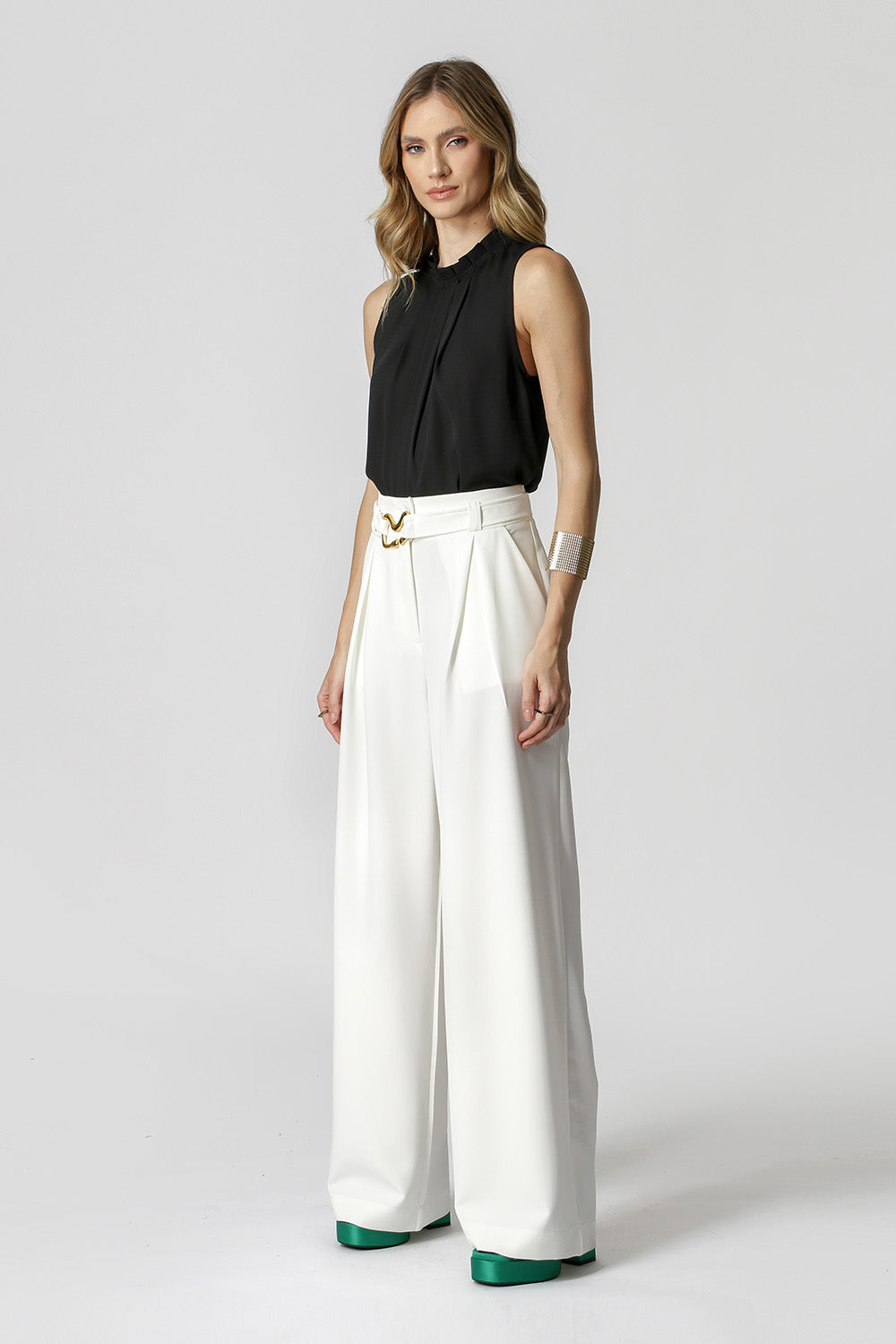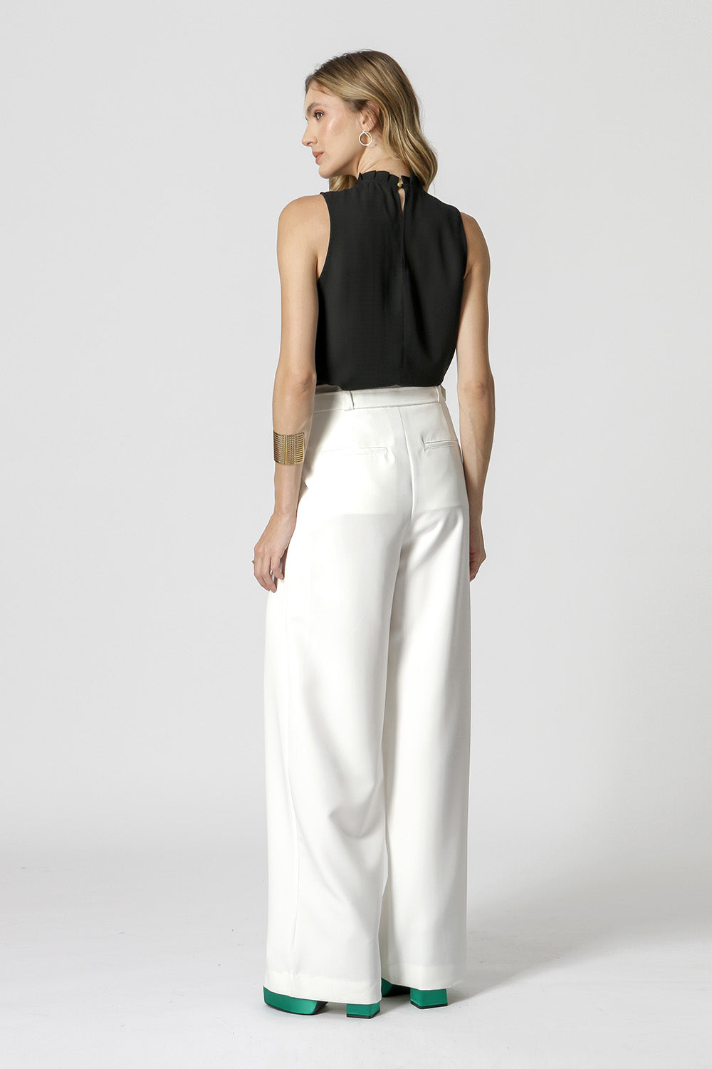 Blusa regata com detalhe de pregas na gola. Confecciona em tecido fluido. Uma peça perfeita que permite diversas composições, para diferentes ocasião e arrasar no look.
