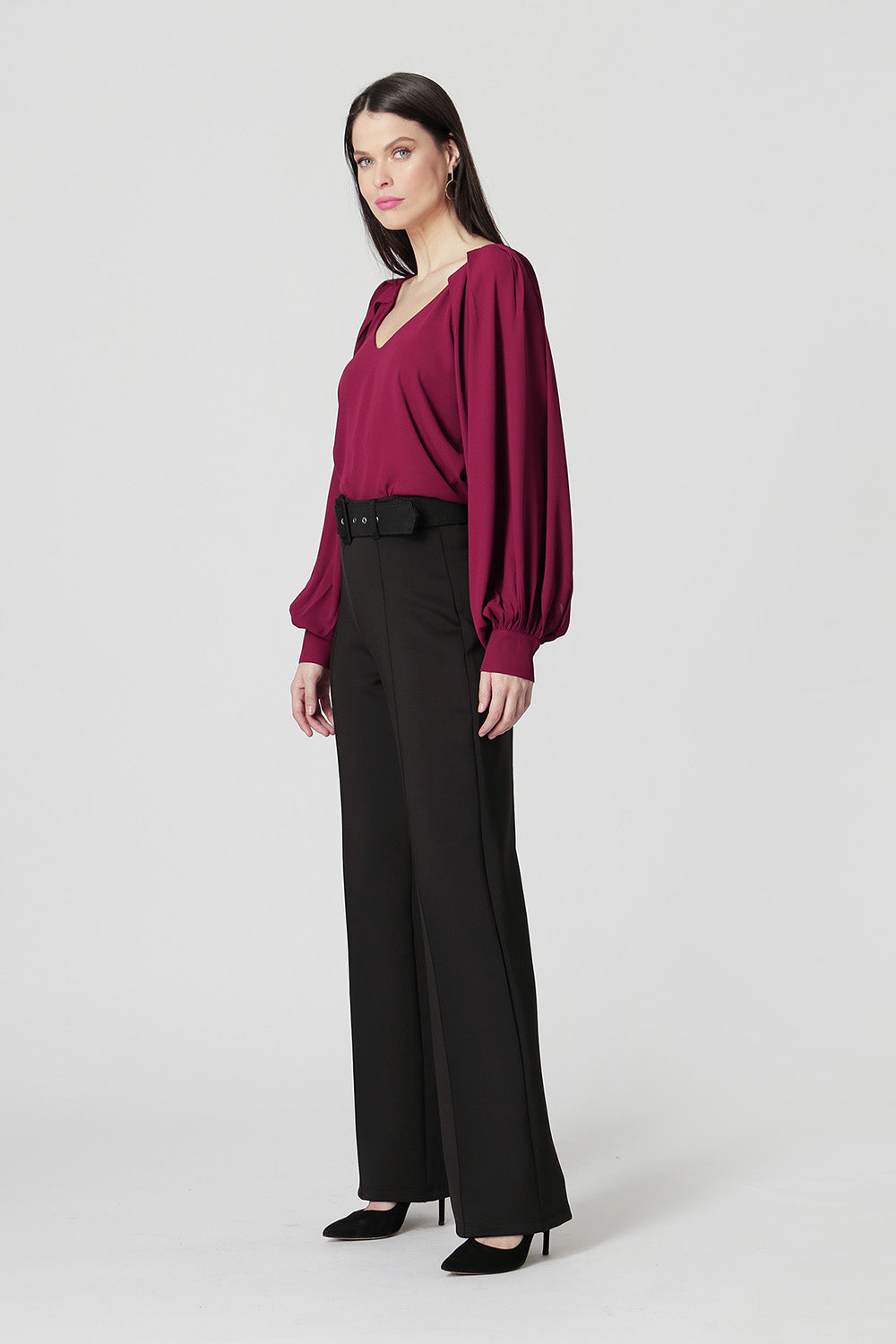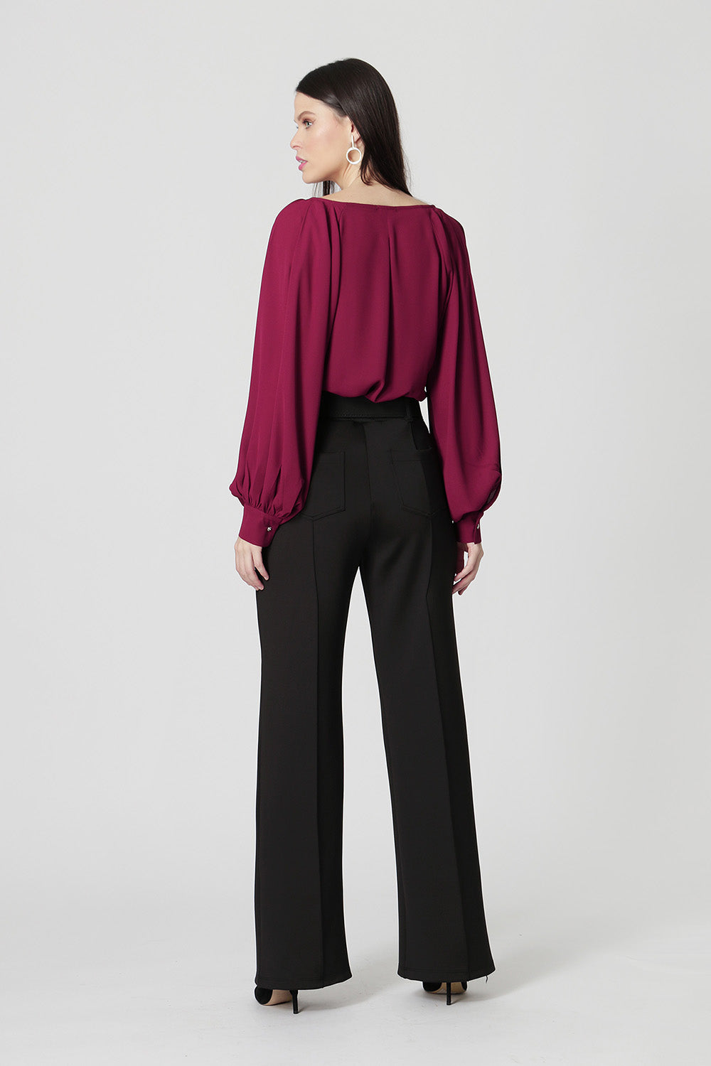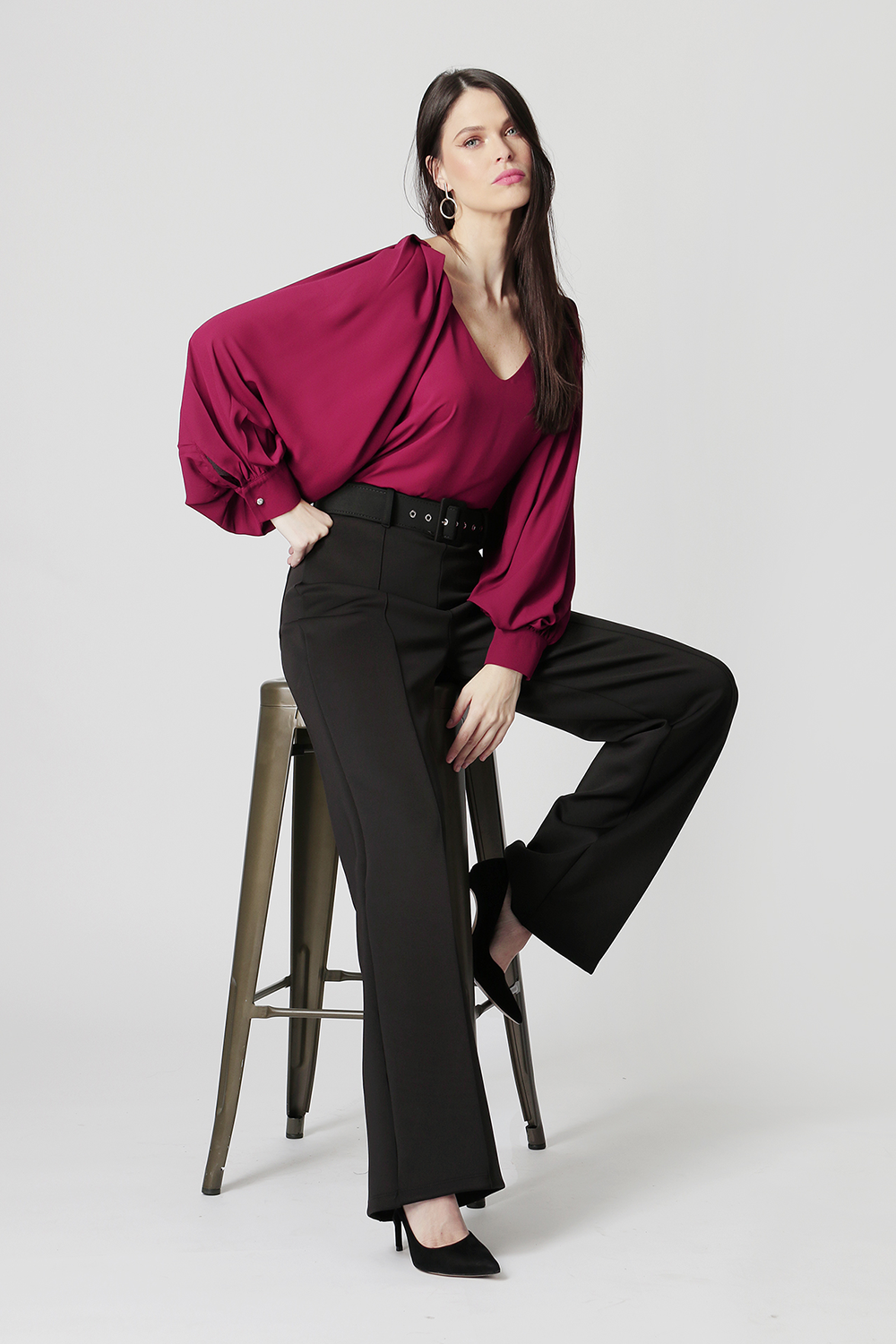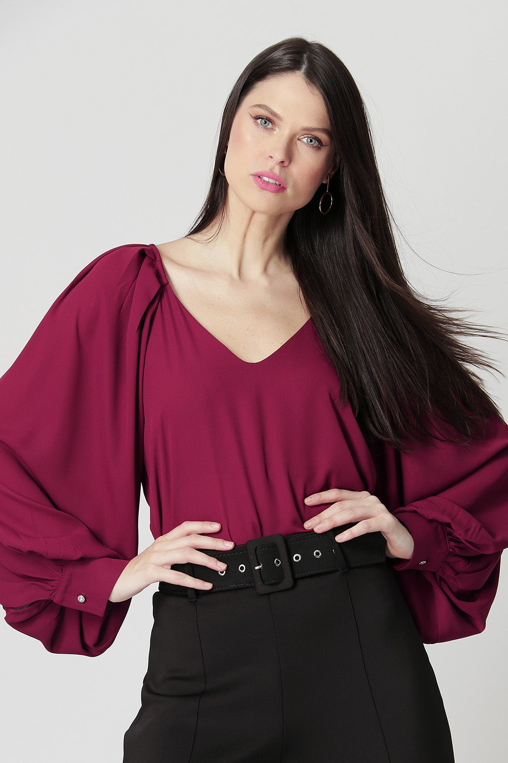 Blusa feita em crepe fluída com decote V, e delicadas pregas no ombro, uma peça com abotoamento no punho com shape mais despojado e elegante, ideal para um look trabalho ou eventos especiais.