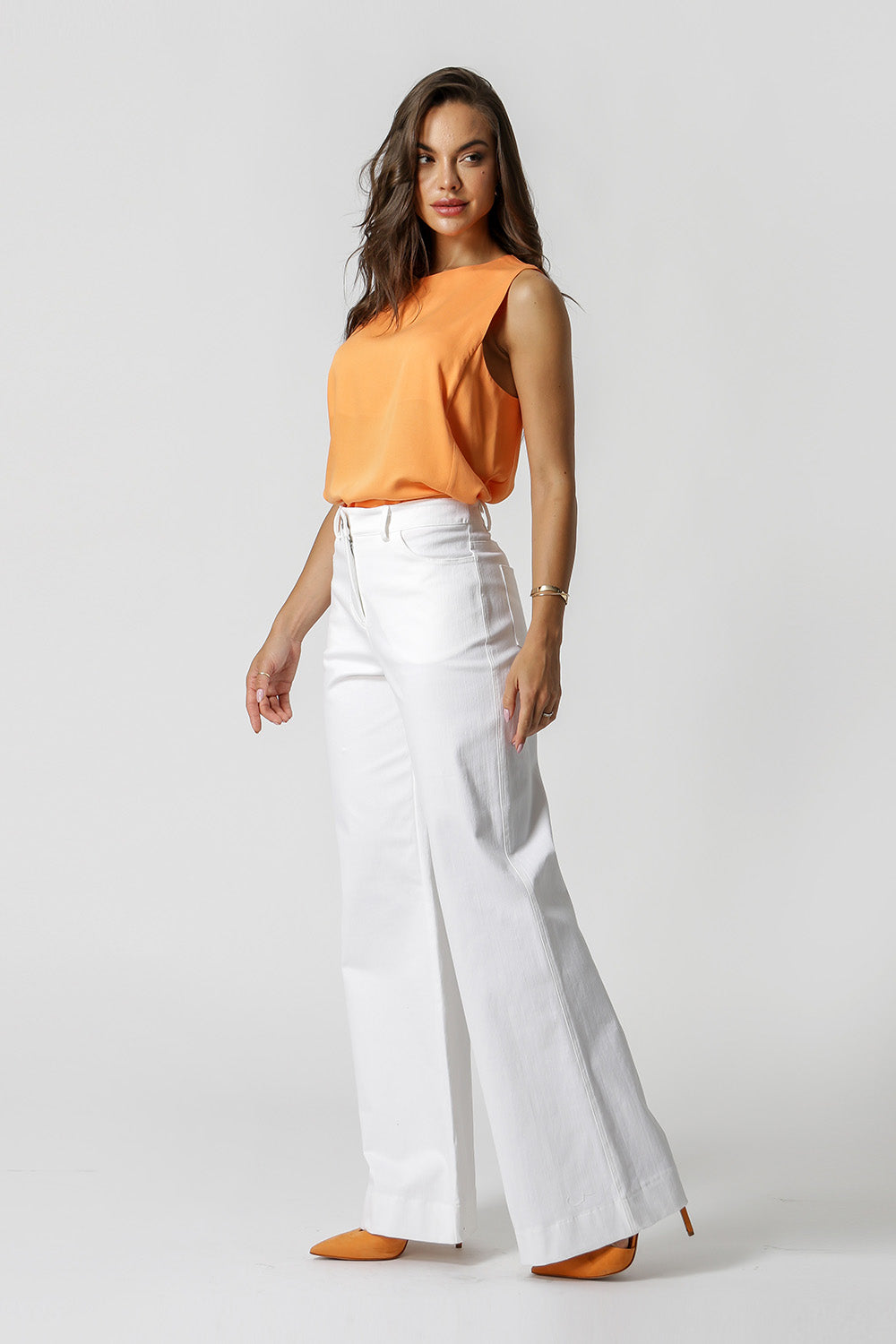 Blusa com recortes laterais. Confeccionada no Tecido Viscose Fluída. Peça ótima para compor look verão por ser prática e confortável.
