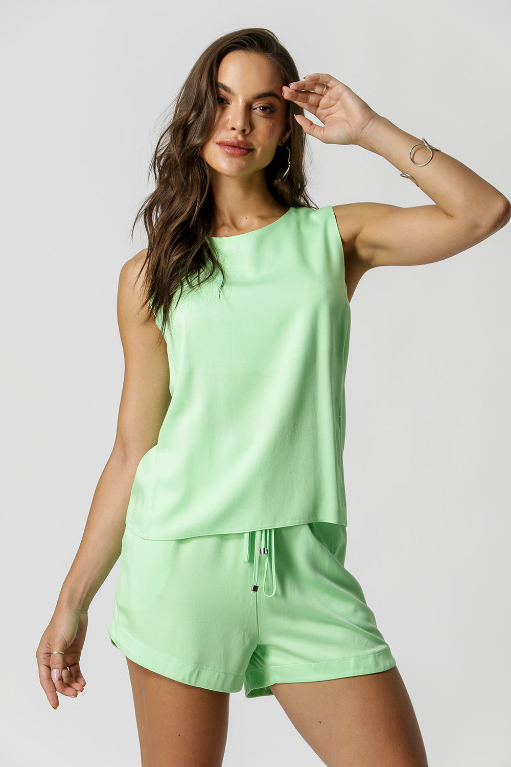 Blusa com recortes laterais. Confeccionada no Tecido Viscose Fluída. Peça ótima para compor look verão por ser prática e confortável.