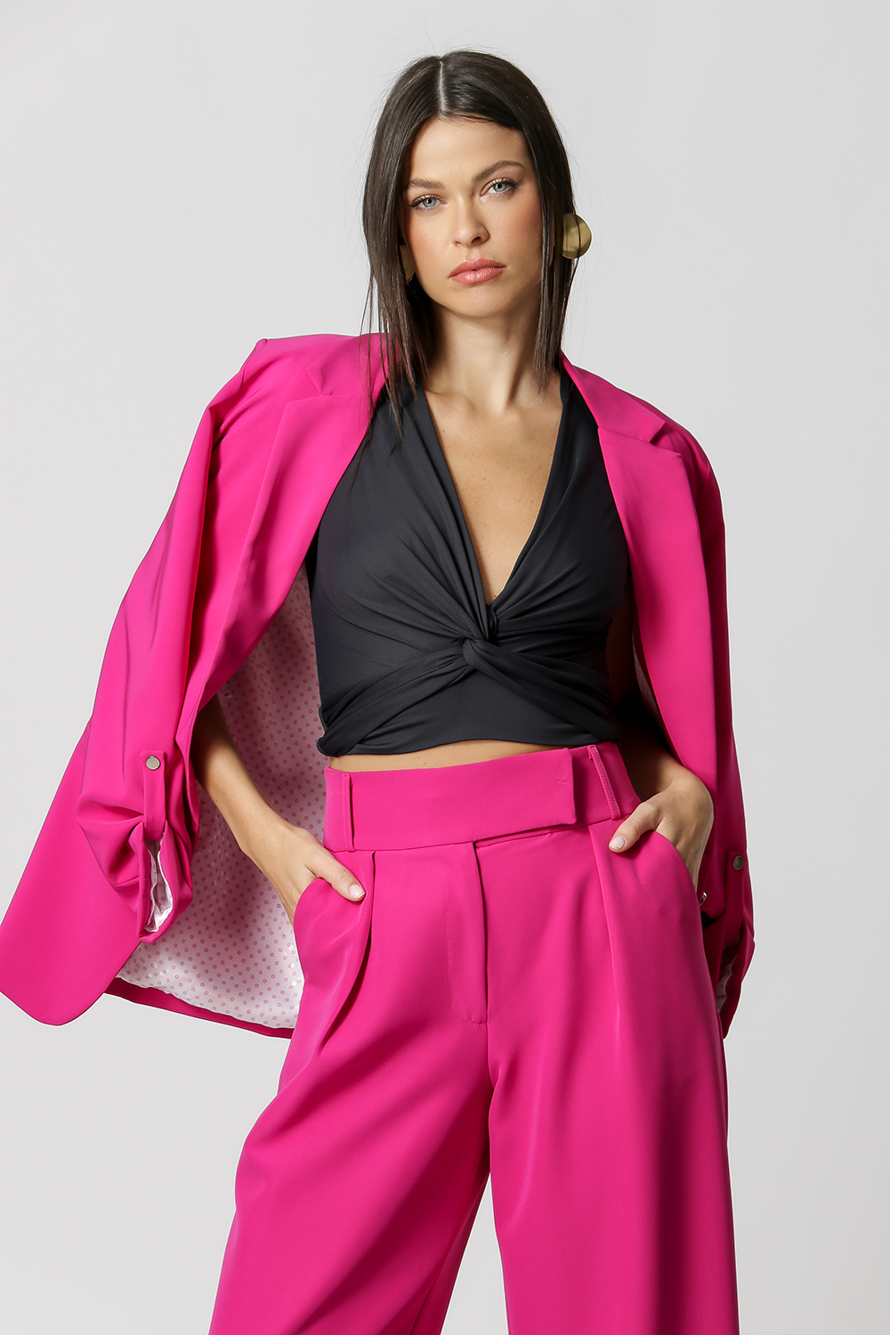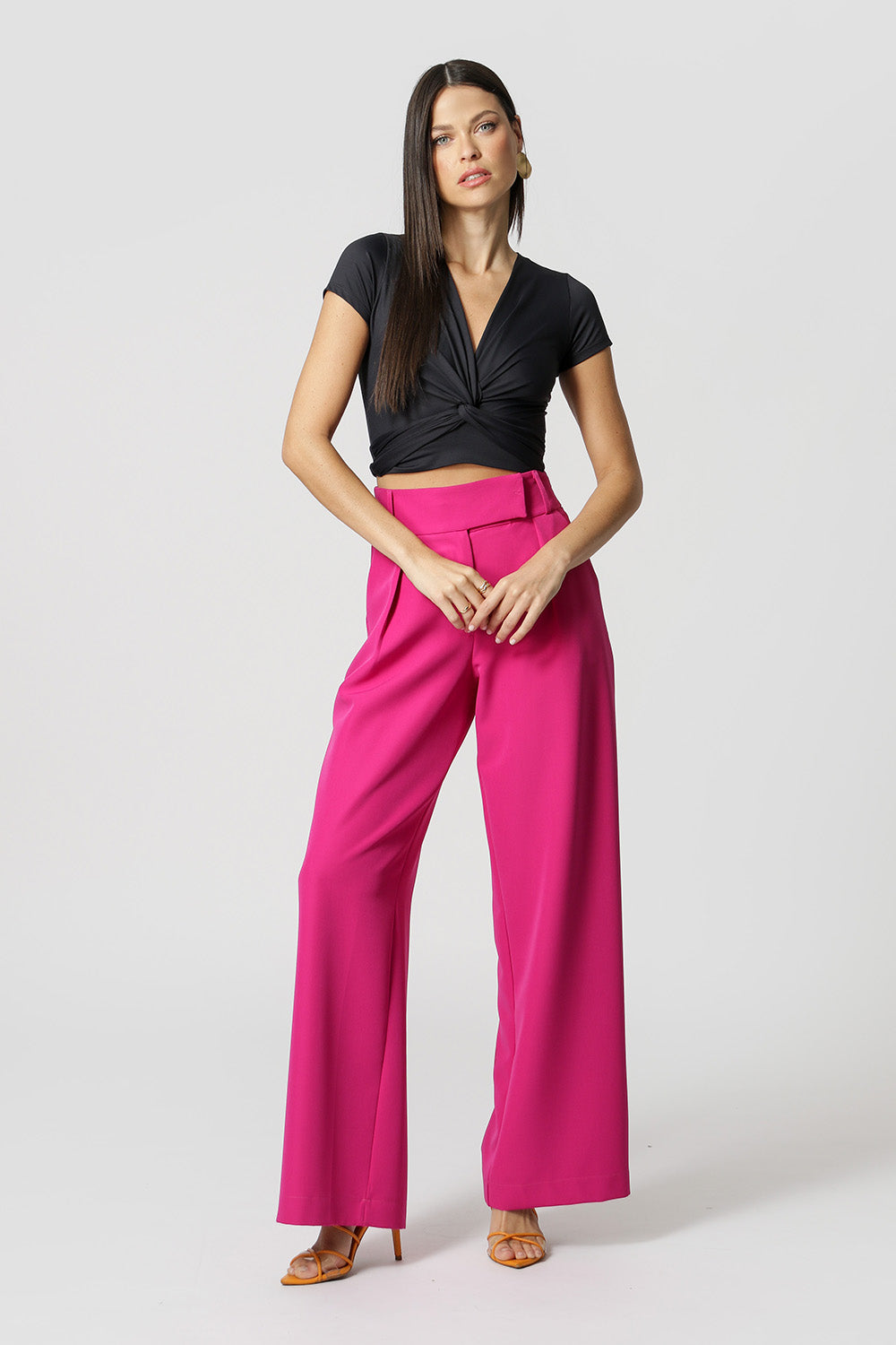 Blusa cropped com detalhe de twist frontal, com uma delicada manga, confeccionada em malha amni, ideal para compor diversos looks.