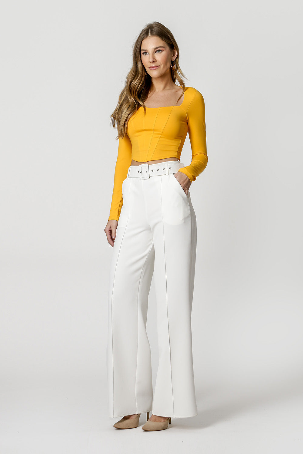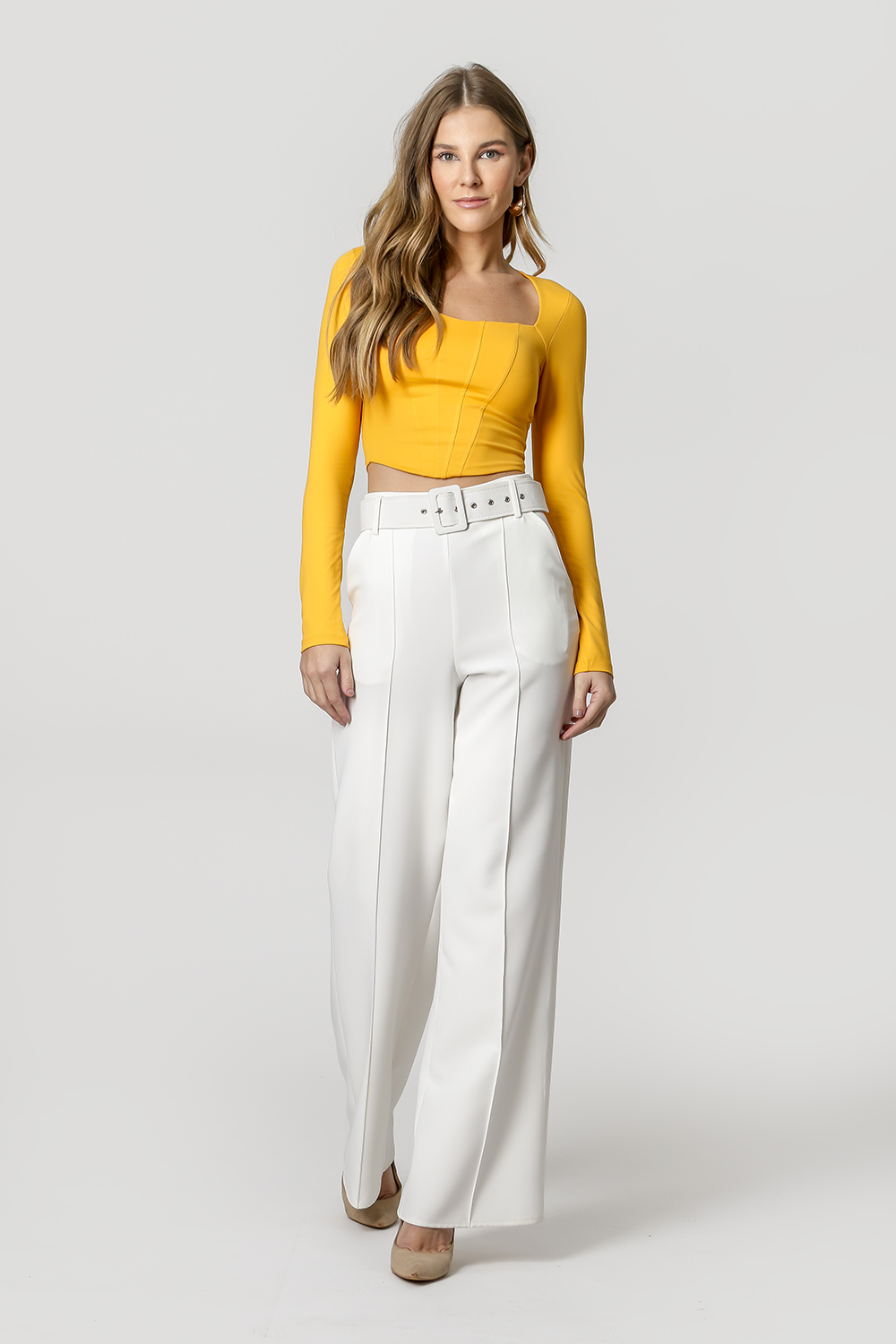 Blusa com shape justo manga longa e recortes com inspiração no corset. Peça feita em malha amni. Peça que valoriza a silhueta feminina e super versátil !