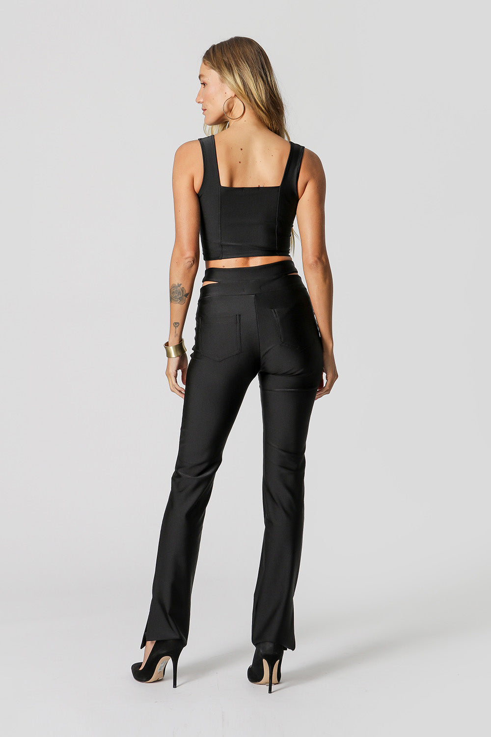 Top corset com recortes e barbatana feito em malha power. Frente da peça possuí forro. Peça fashionista para você arrasar nas produções.