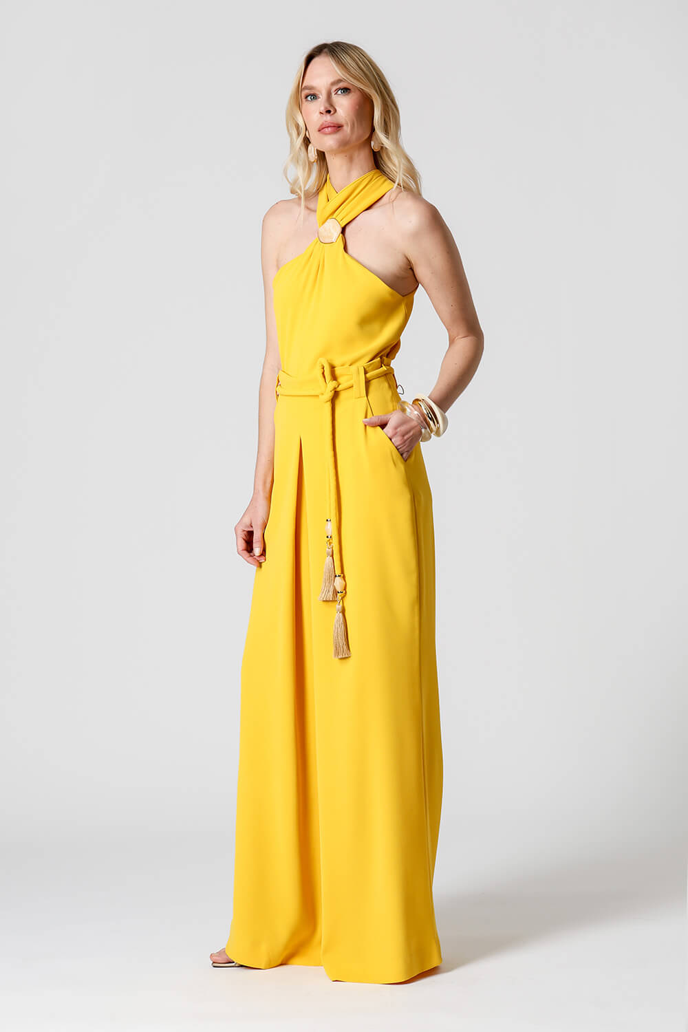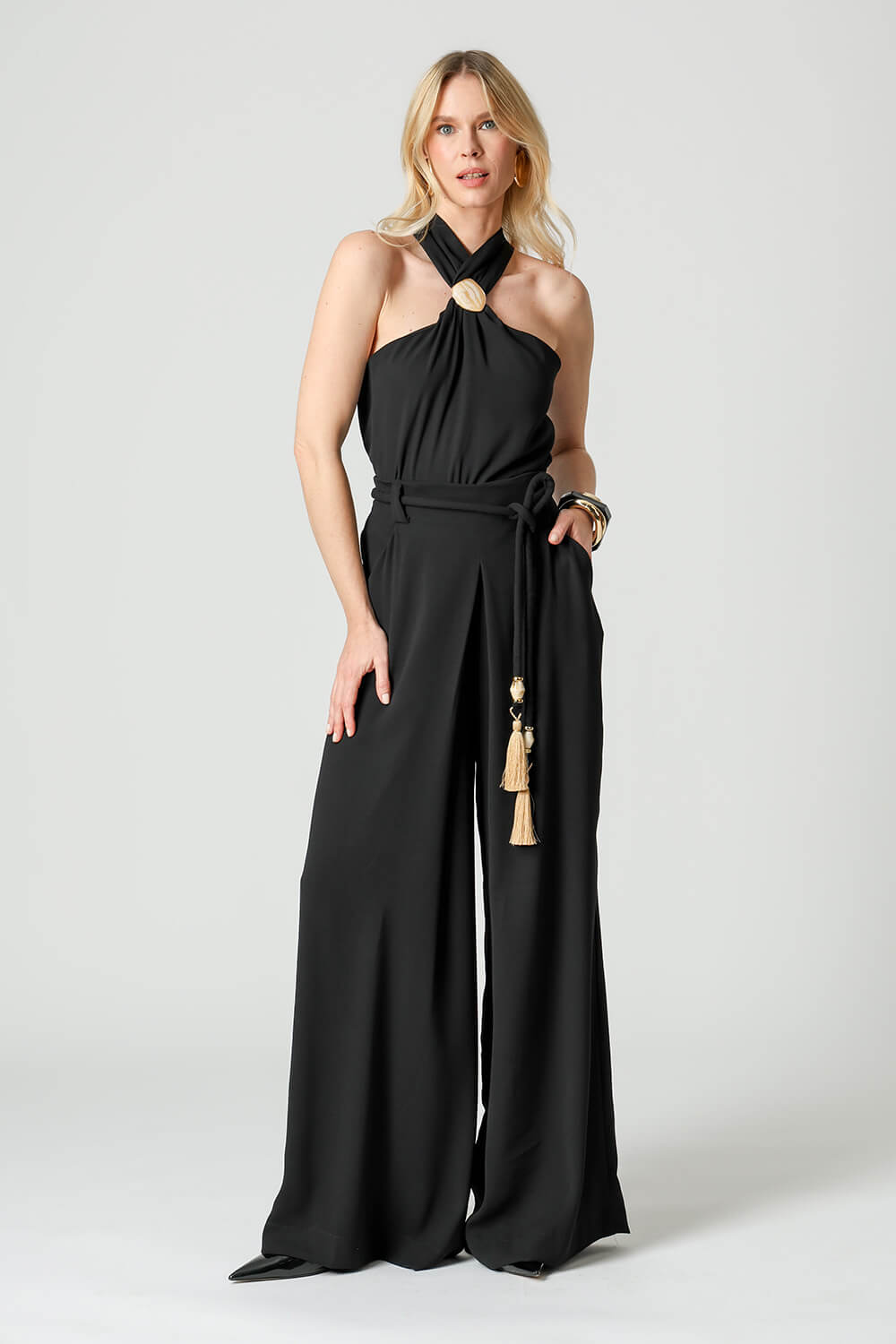 Detalhe de fivela marmorizada no decote