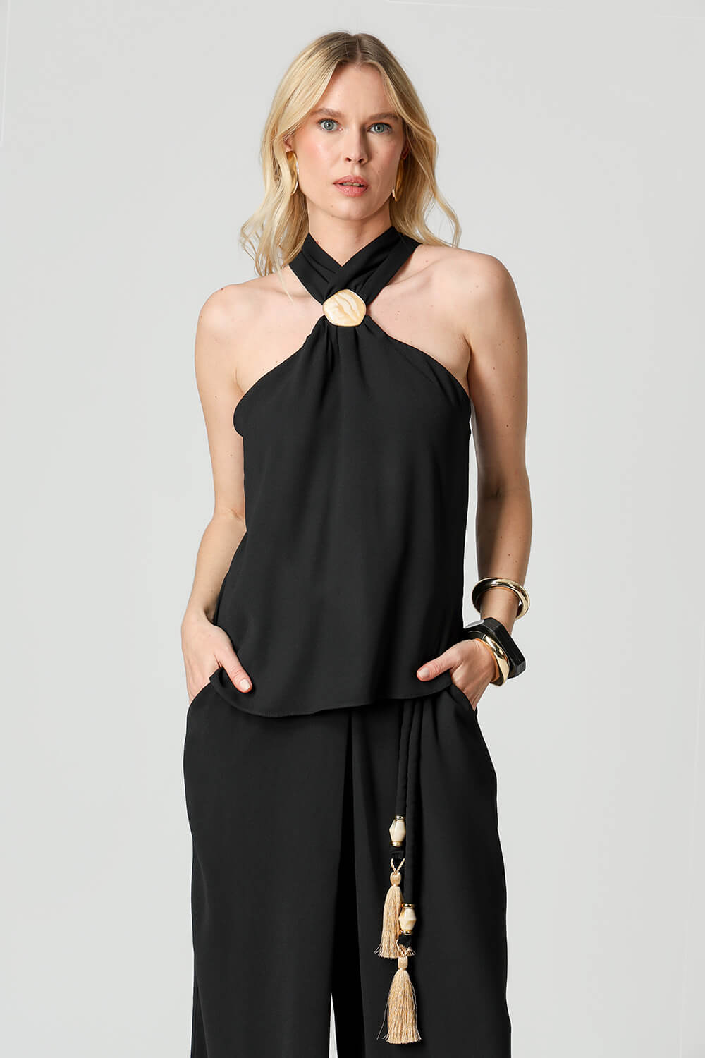 Blusa em crepe Segall, com alças largas e detalhe de fivela marmorizada no decote que adiciona charme ao visual. Leve, elegante e perfeita para compor looks modernos tanto para o dia quanto para a noite.