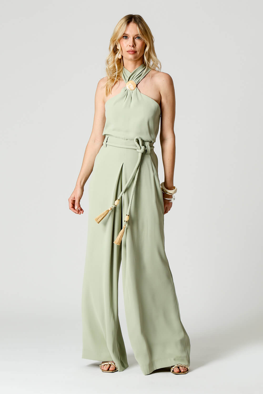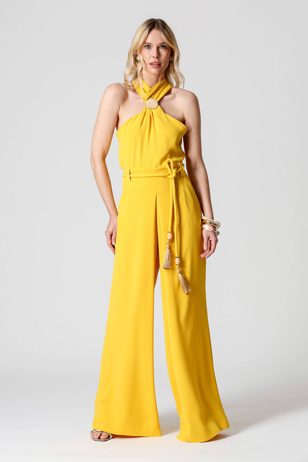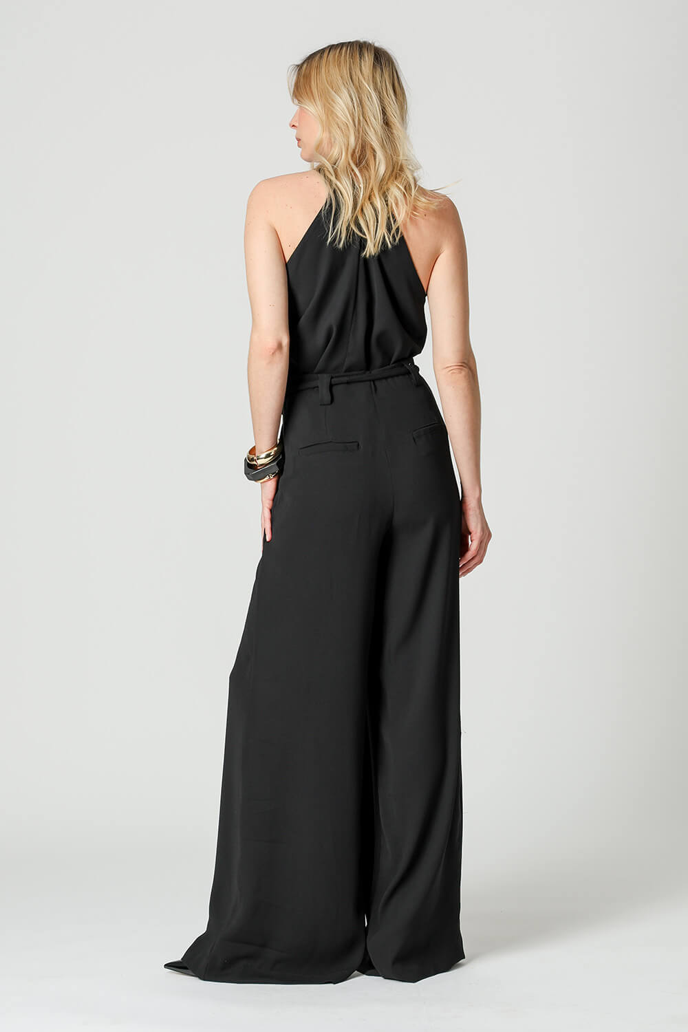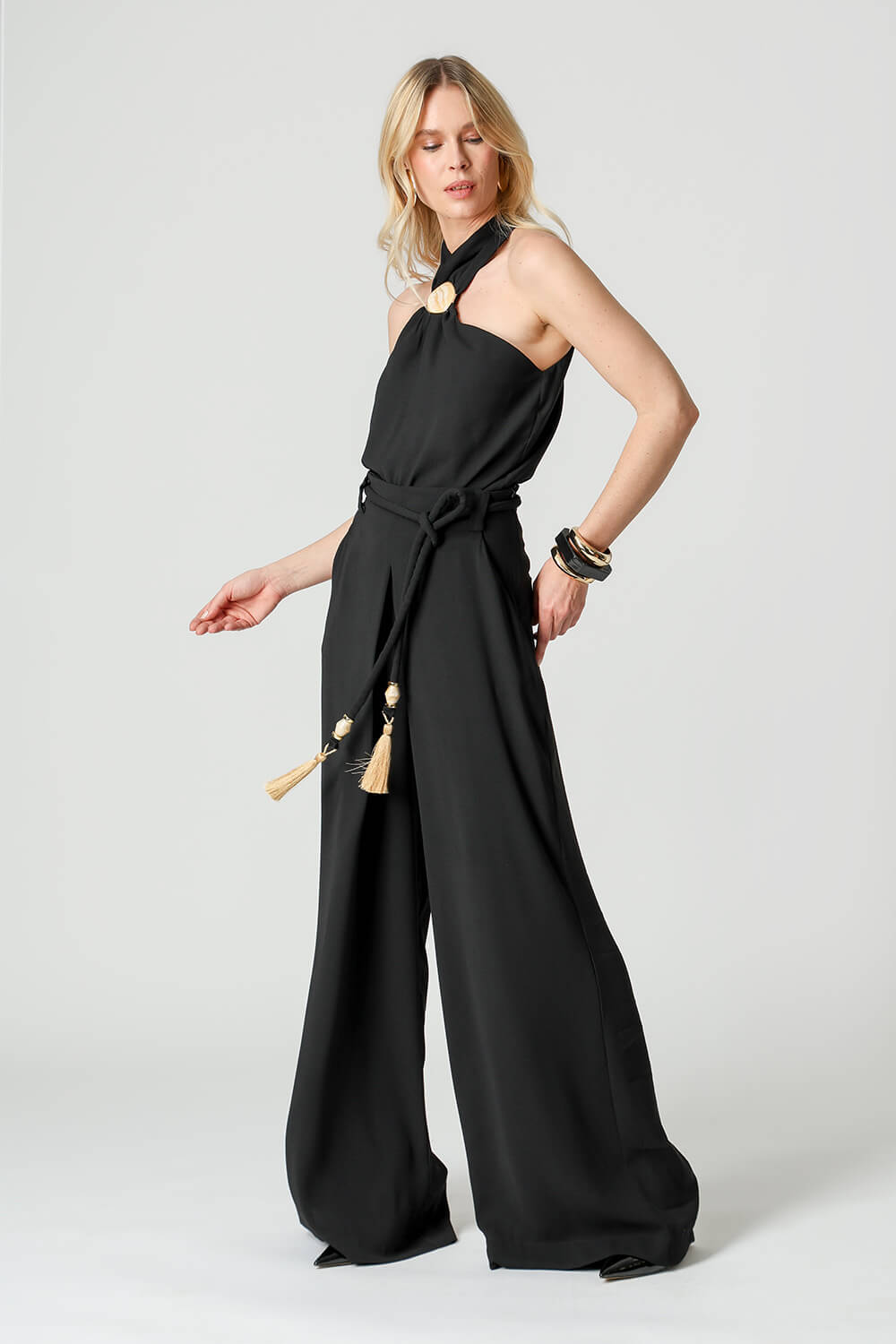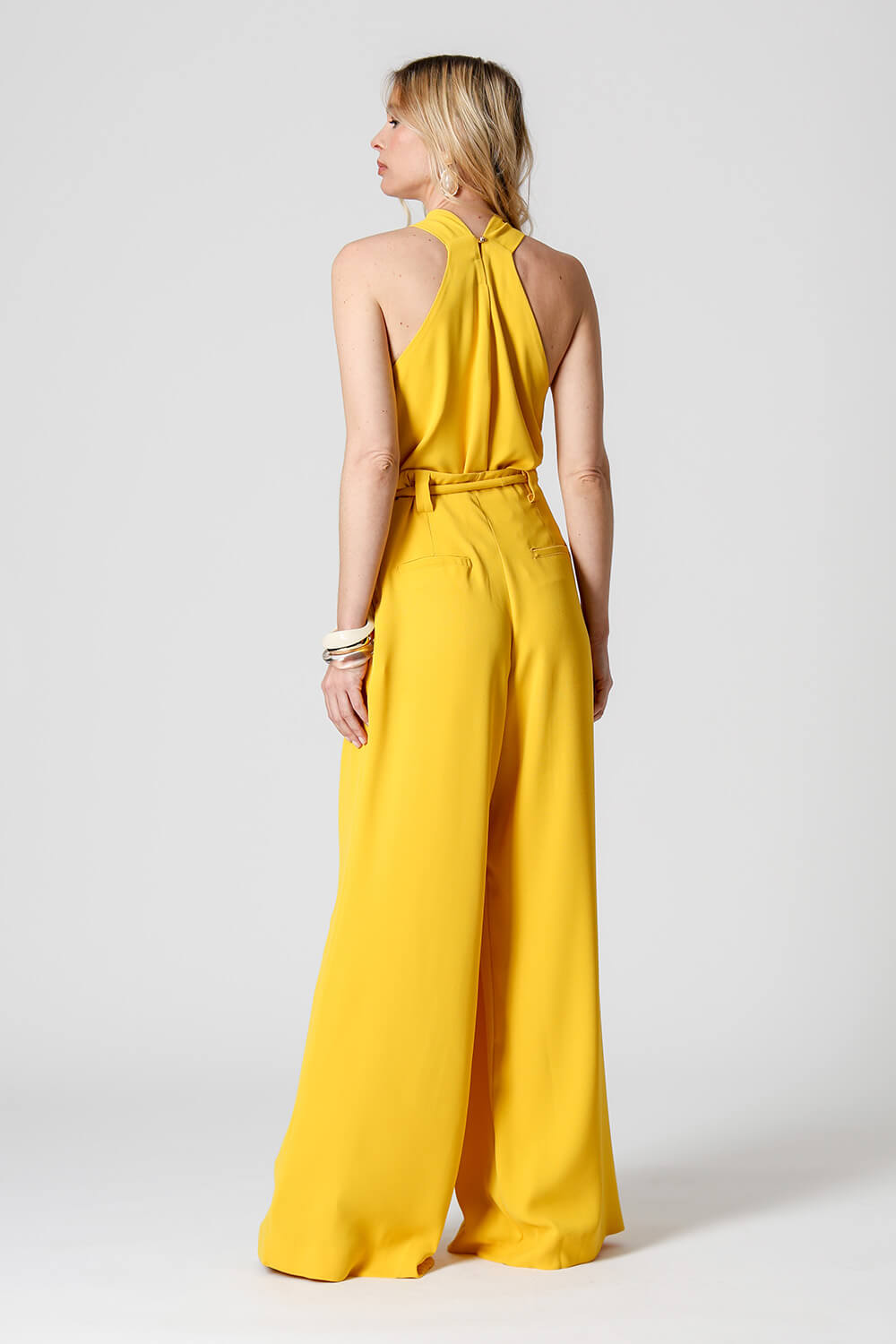 Fechamento com botão dourado nas costas