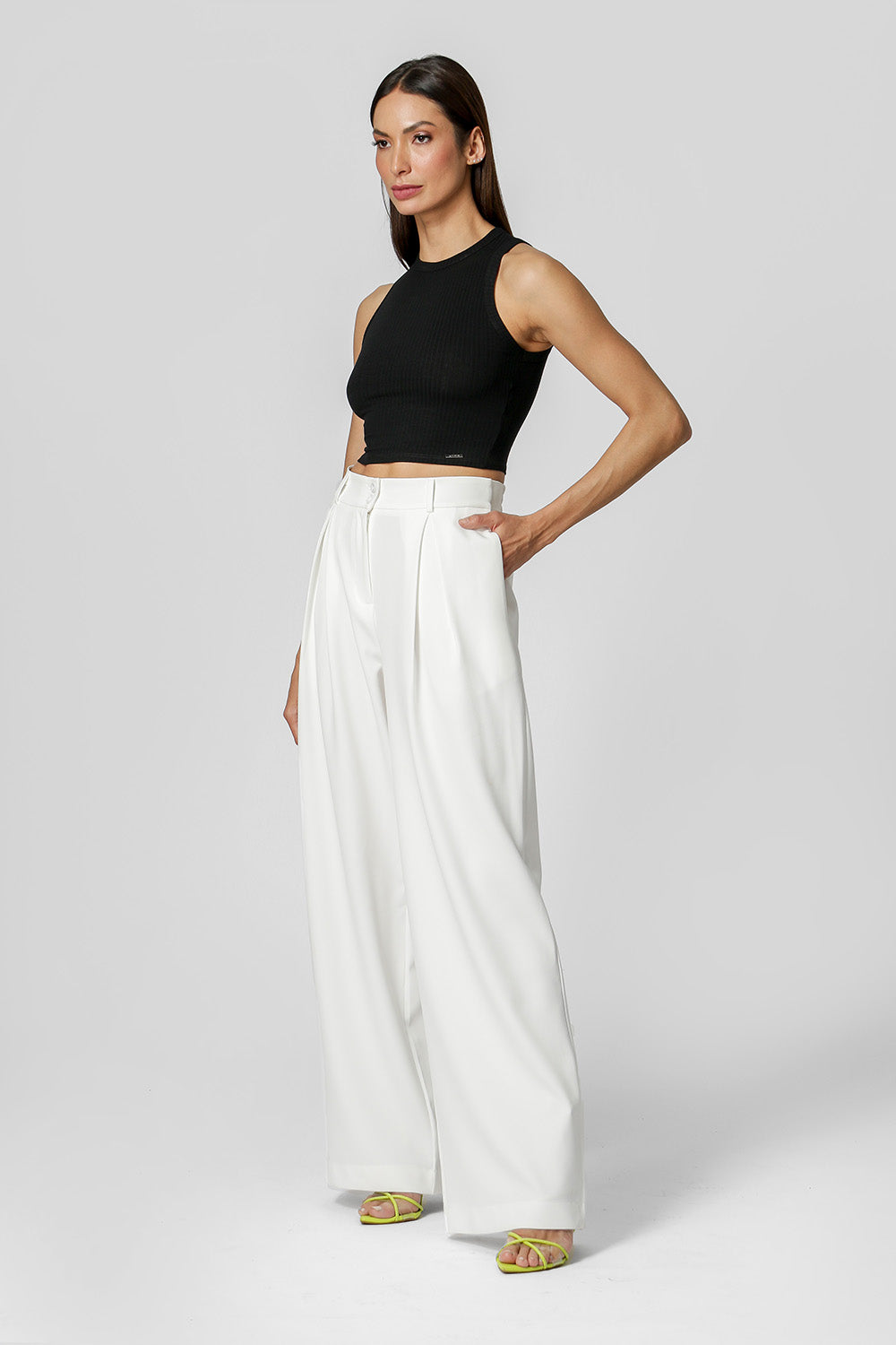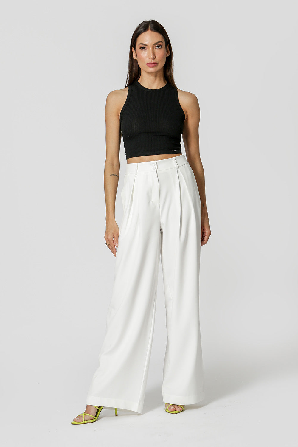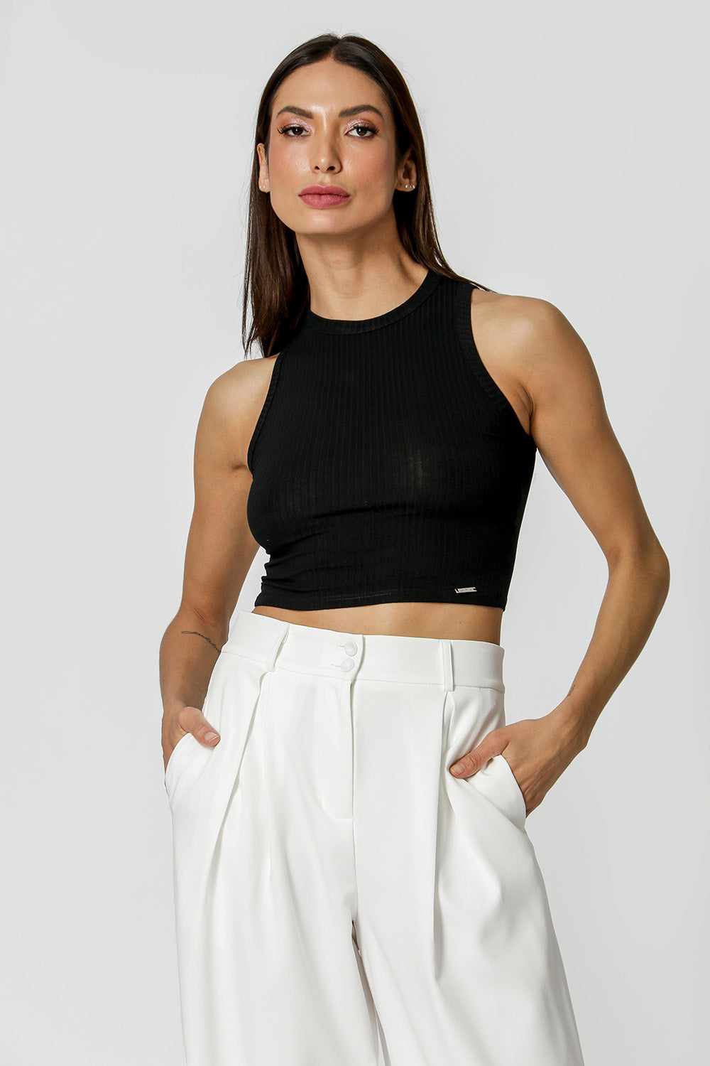 Blusa básica no comprimento cropped e com shape ajustado ao corpo. Feita em malha canelada. O básico pra você usar de segunda a segunda!