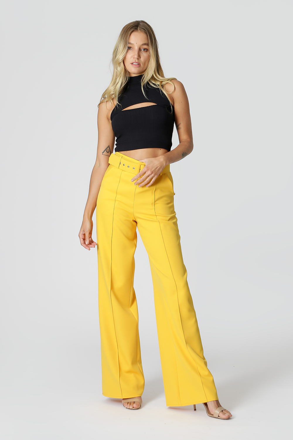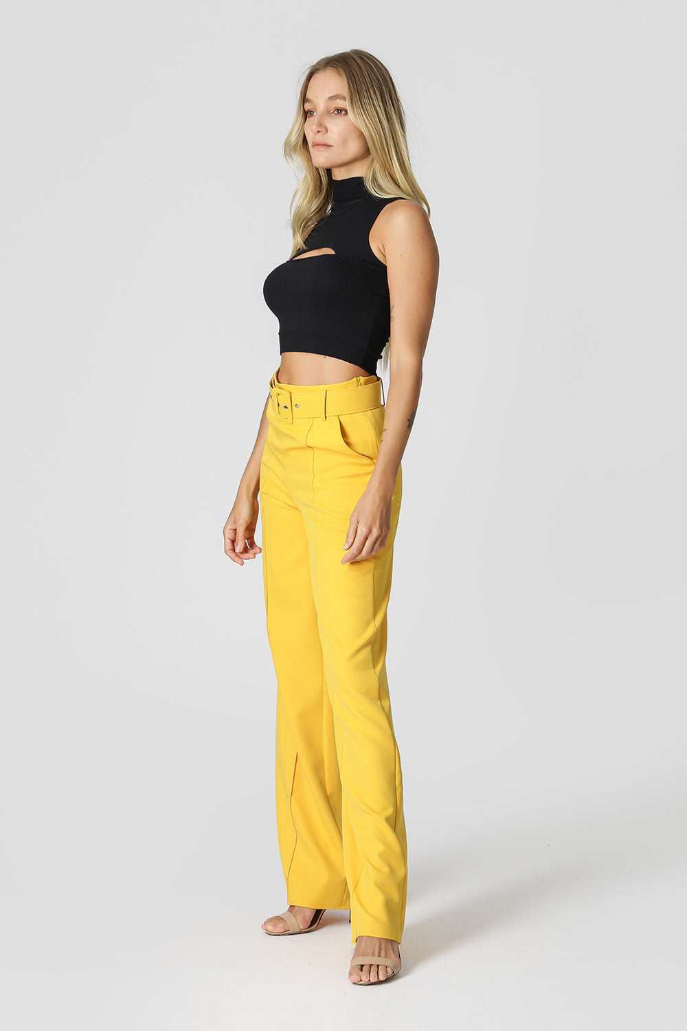 Blusa cropped com cava americana, gola e detalhe decote vazado. Feito em malha canelada. Peça básica, perfeita para trabalhar looks com sobreposições.
