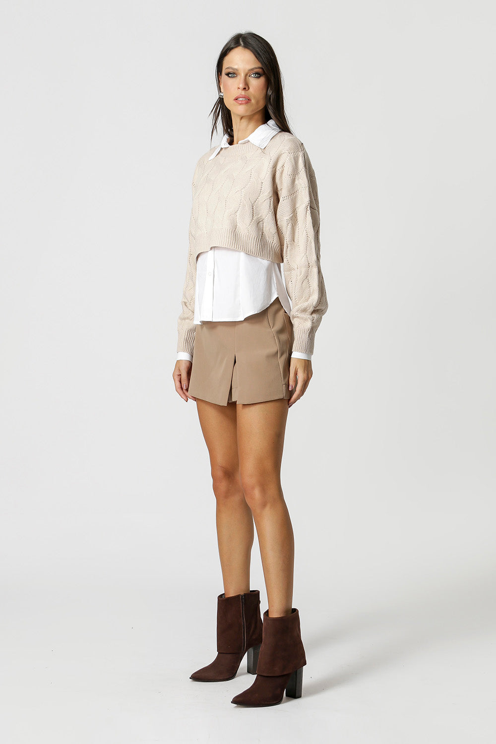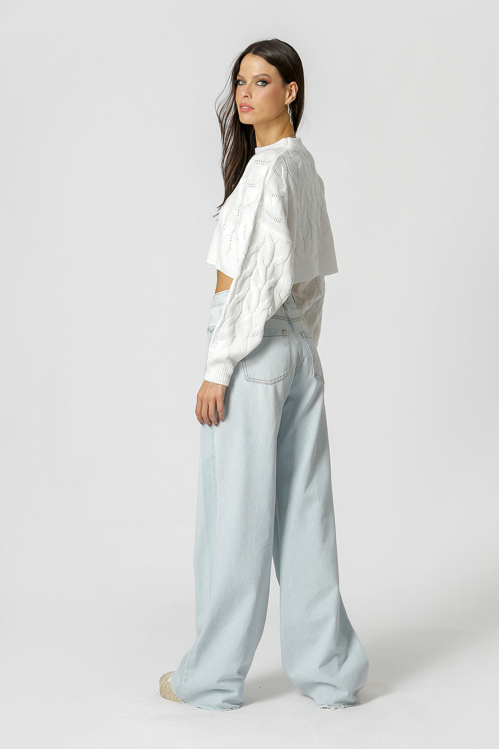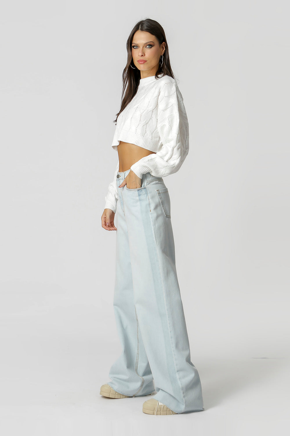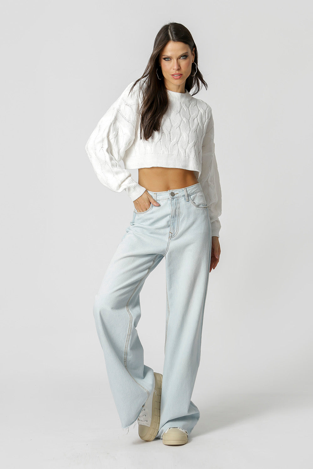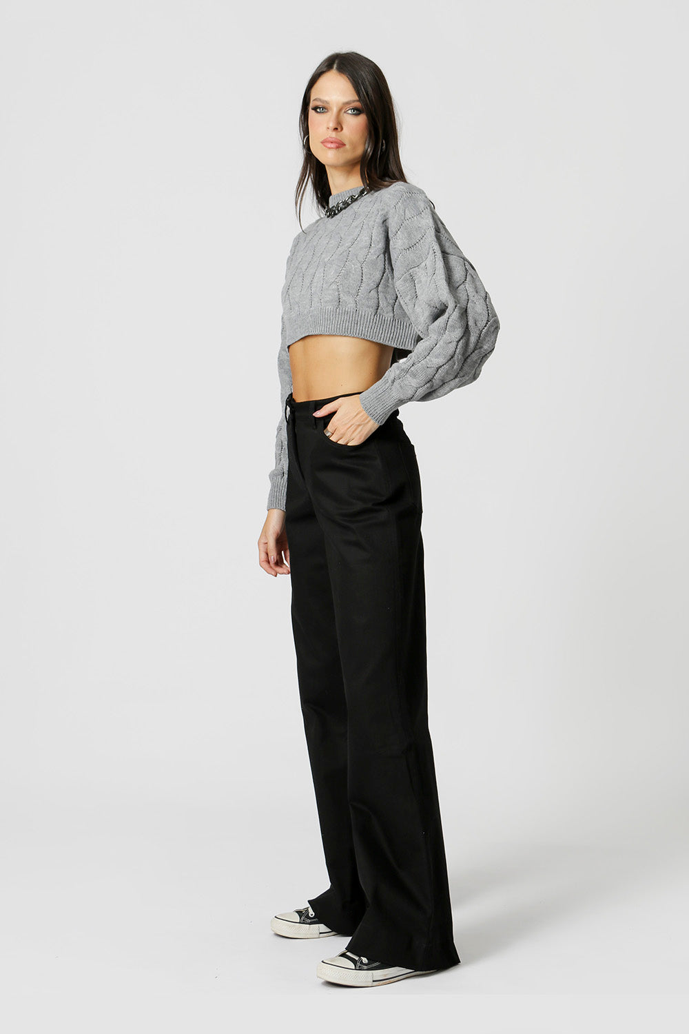 Blusa de tricô cropped de manga longa com detalhes trançados. Uma peça com textura diferenciada e escolha perfeita para looks descolados.