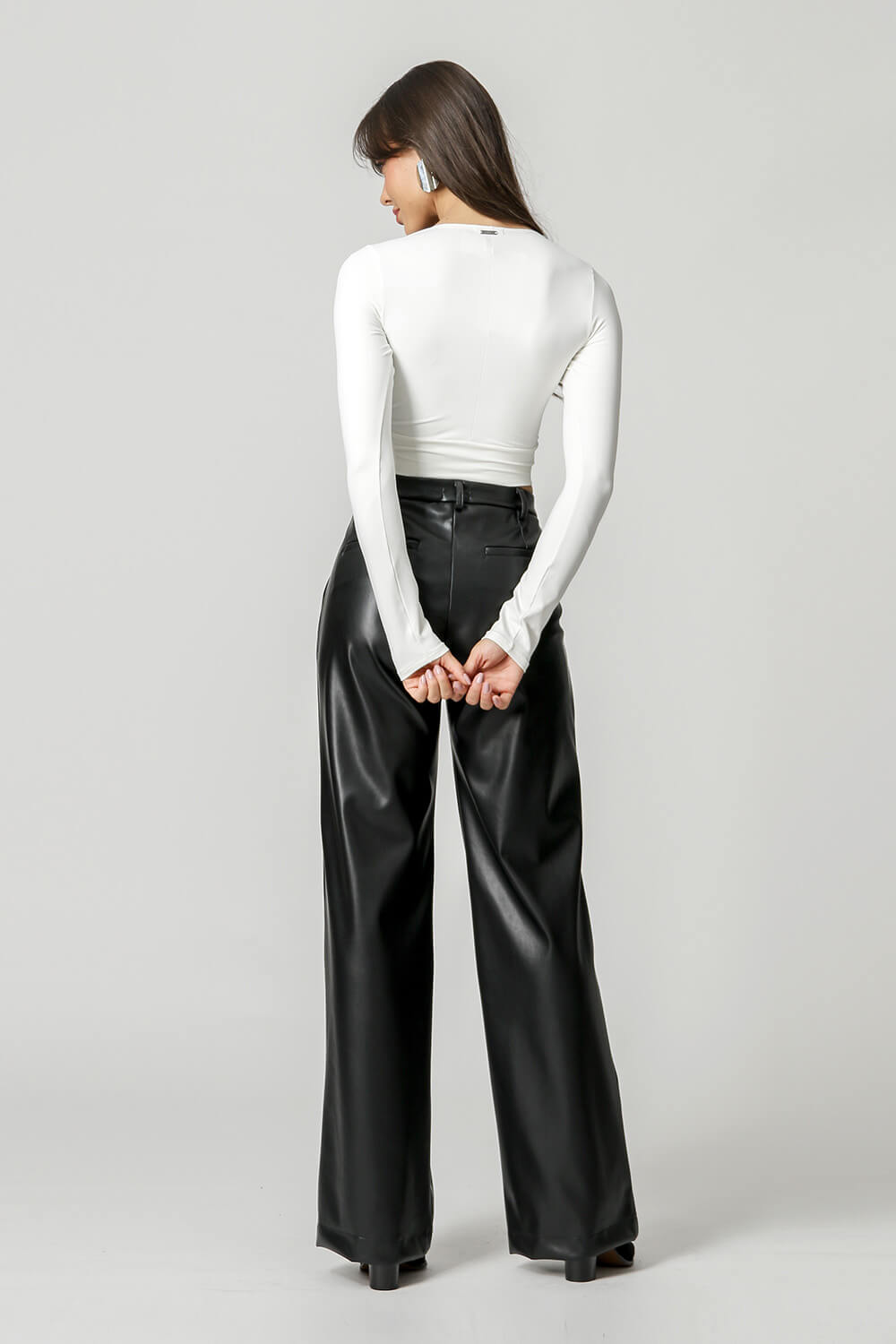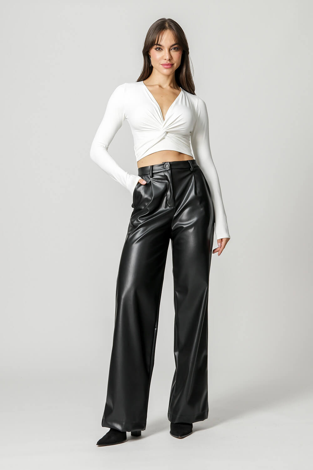 Blusa em tecido de malha Amni, em comprimento cropped, manga longa com detalhe twist na frente e decote V. Peça ideal para looks fashion e descolados.
