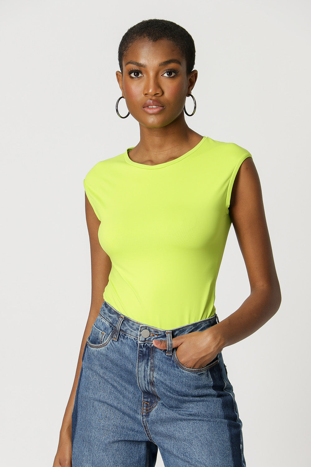 Blusa cropped slim, justa ao corpo com decote canoa. Peça que valoriza a silhueta feminina.