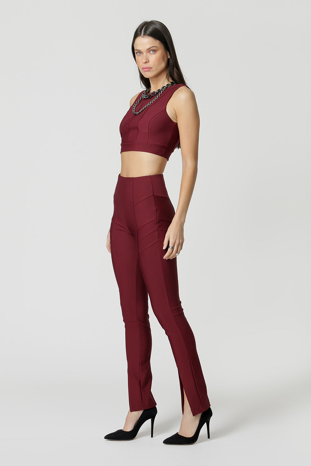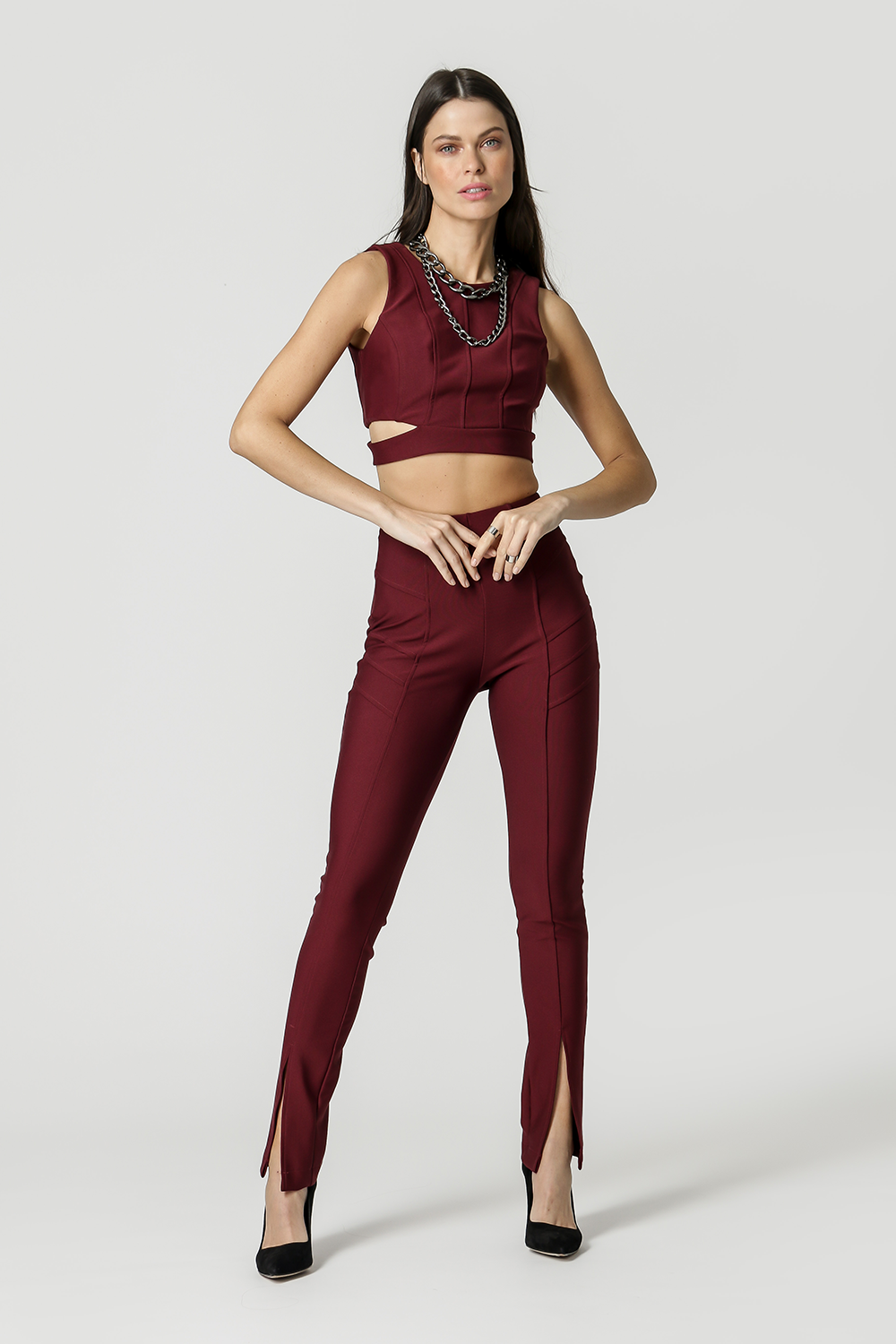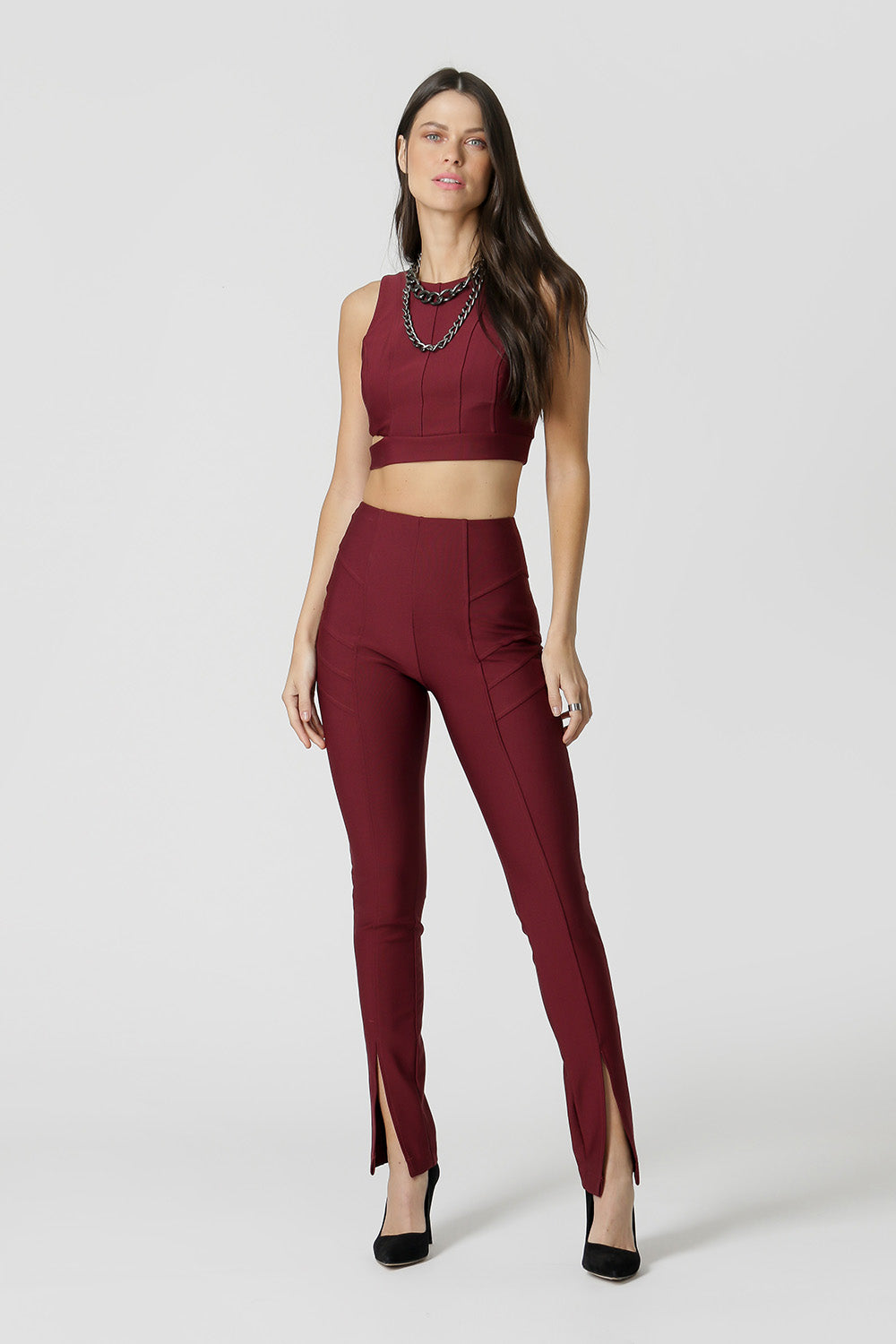 Blusa cropped com shape justo ao corpo, feito em alfaiataria comfy. Detalhe de vazado na lateral e recortes. Peça moderna com toque fashion.