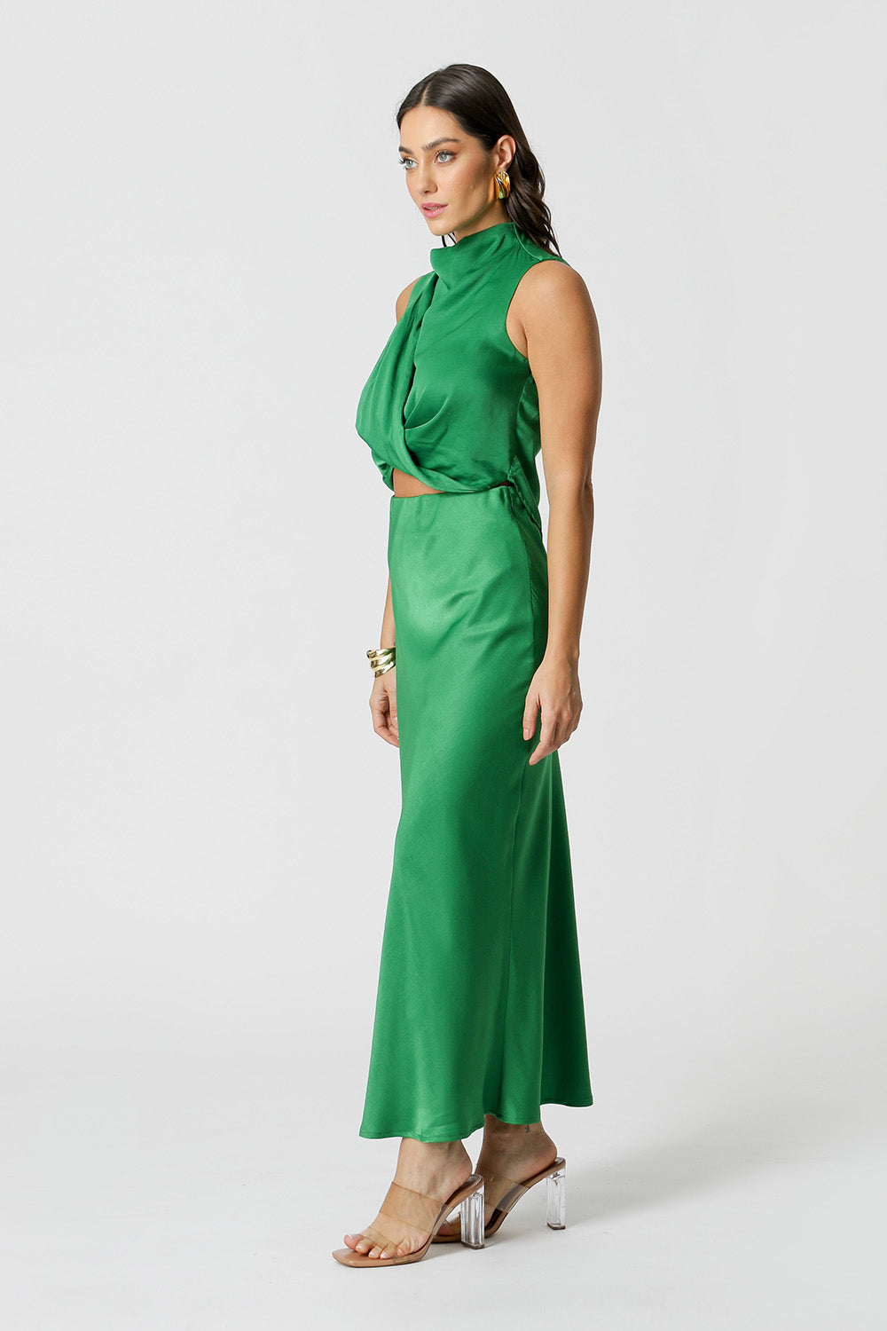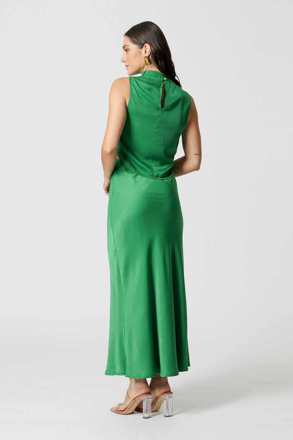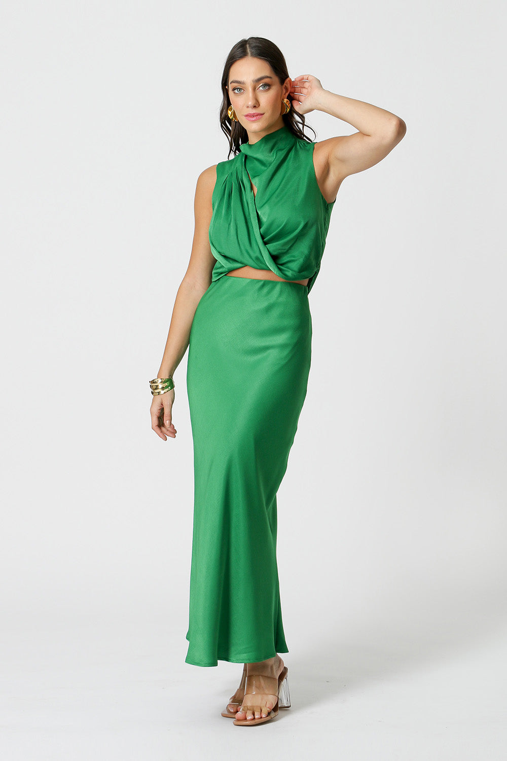 Blusa com gola alta e detalhes de pregas no ombro. Confeccionada em tecido Cetim. Um peça elegante chic, ideal para usar em diversas ocasiões trazendo um estilo sofisticado e glamuroso.