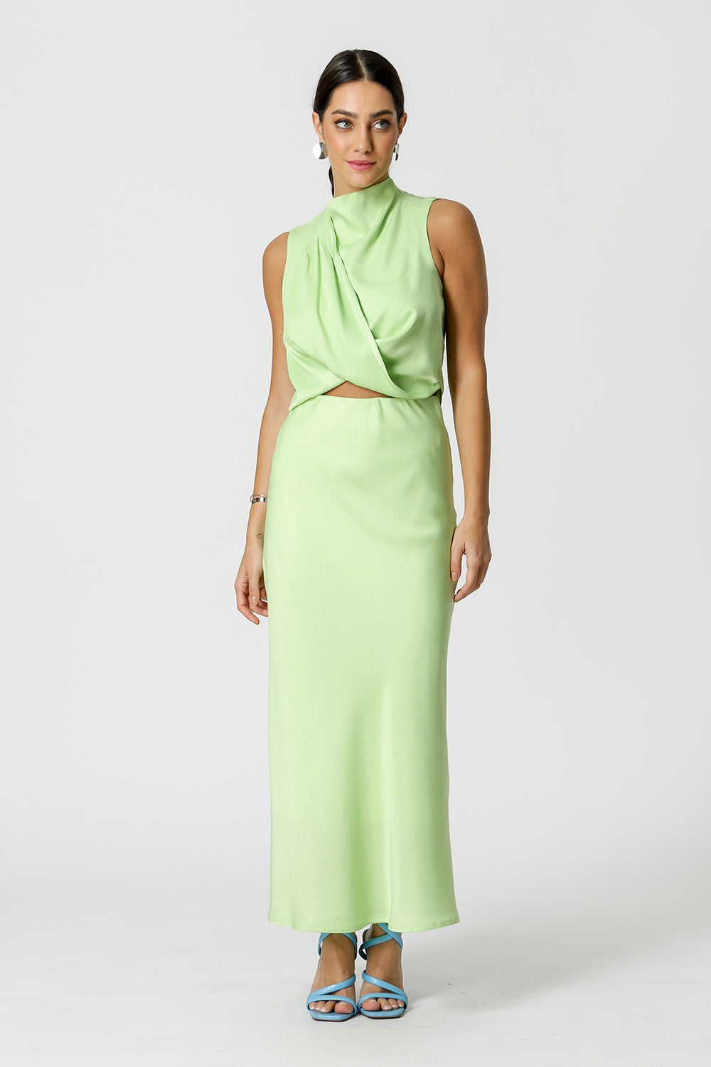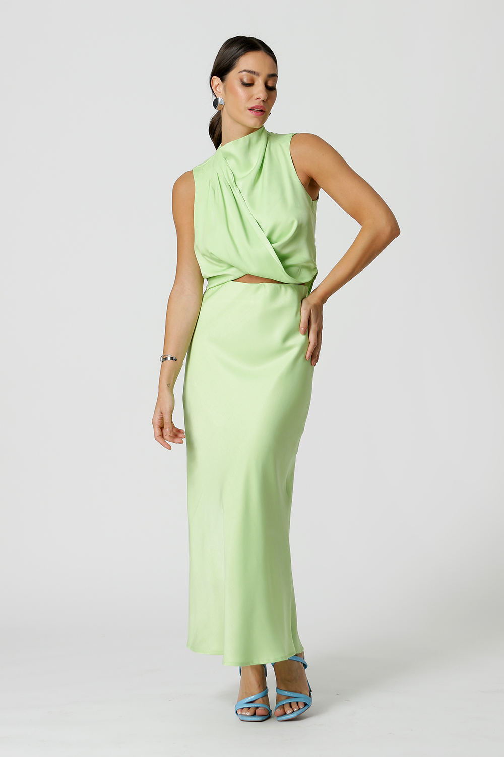 Blusa com gola alta e detalhes de pregas no ombro. Confeccionada em tecido Cetim. Um peça elegante chic, ideal para usar em diversas ocasiões trazendo um estilo sofisticado e glamuroso.