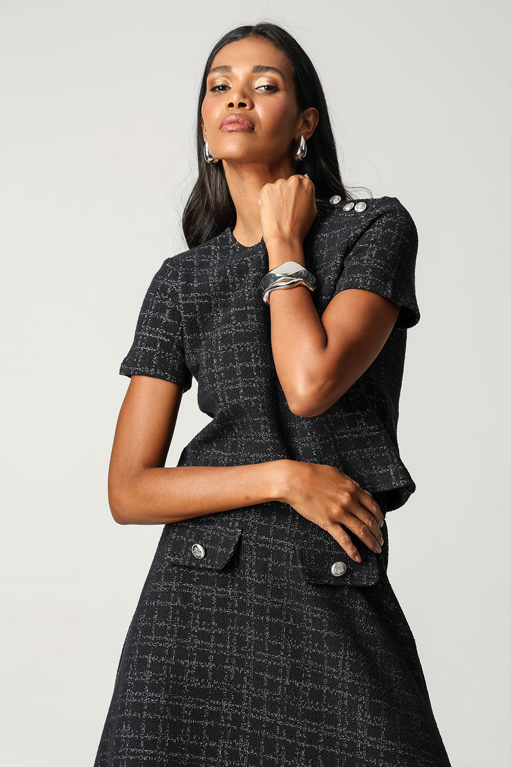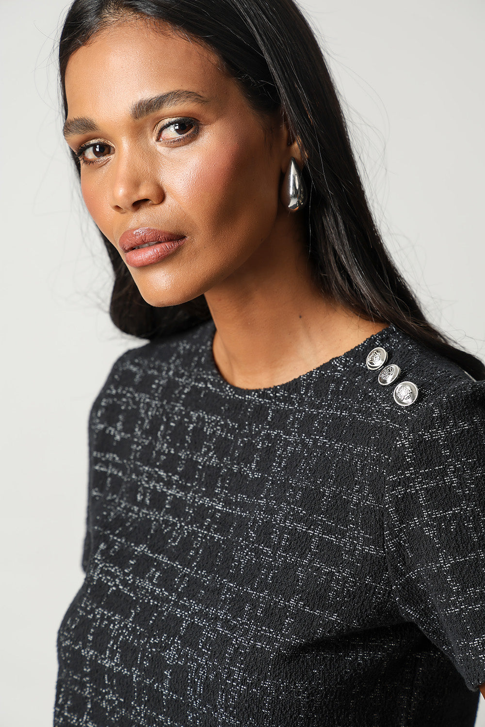 Blusa versátil e elegante, perfeita para adicionar um toque de glamour a qualquer ocasião, seja no dia a dia ou em eventos especiais.