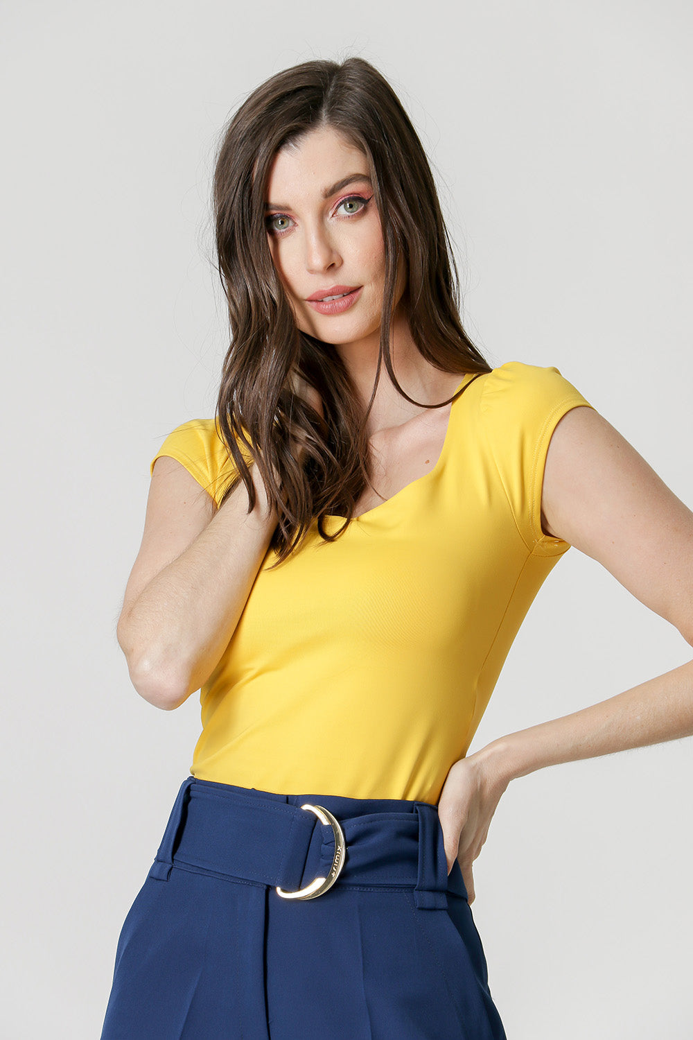Blusa feita em malha poliamida super confortável. Posseui um lindo decote quadrado e mangas curtas. Uma peça cheia de charme para compor muitos looks causais.