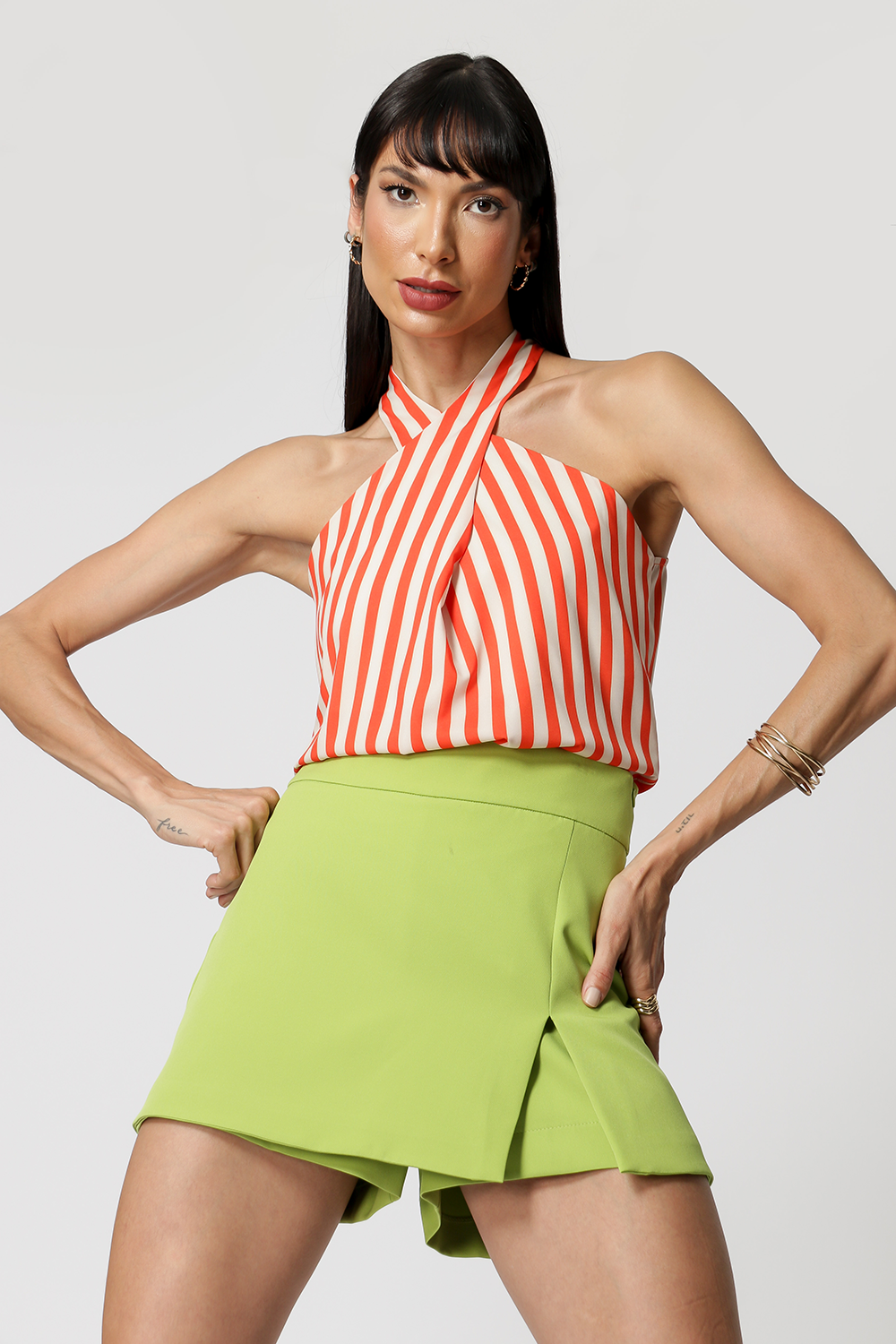 Blusa com decote transpassado e com botões nas costas. Um modelo confeccionado em tecido leve, fluído estamapado. Ótima proposta para compor looks casual trazendo leveza com charme no seu dia-a-dia.