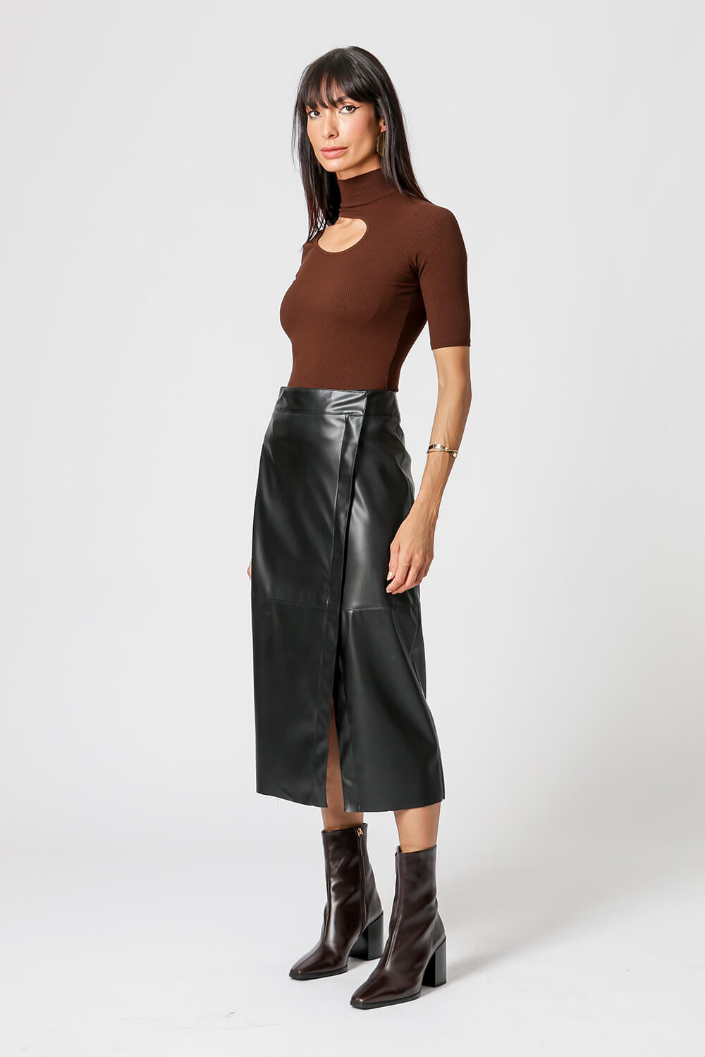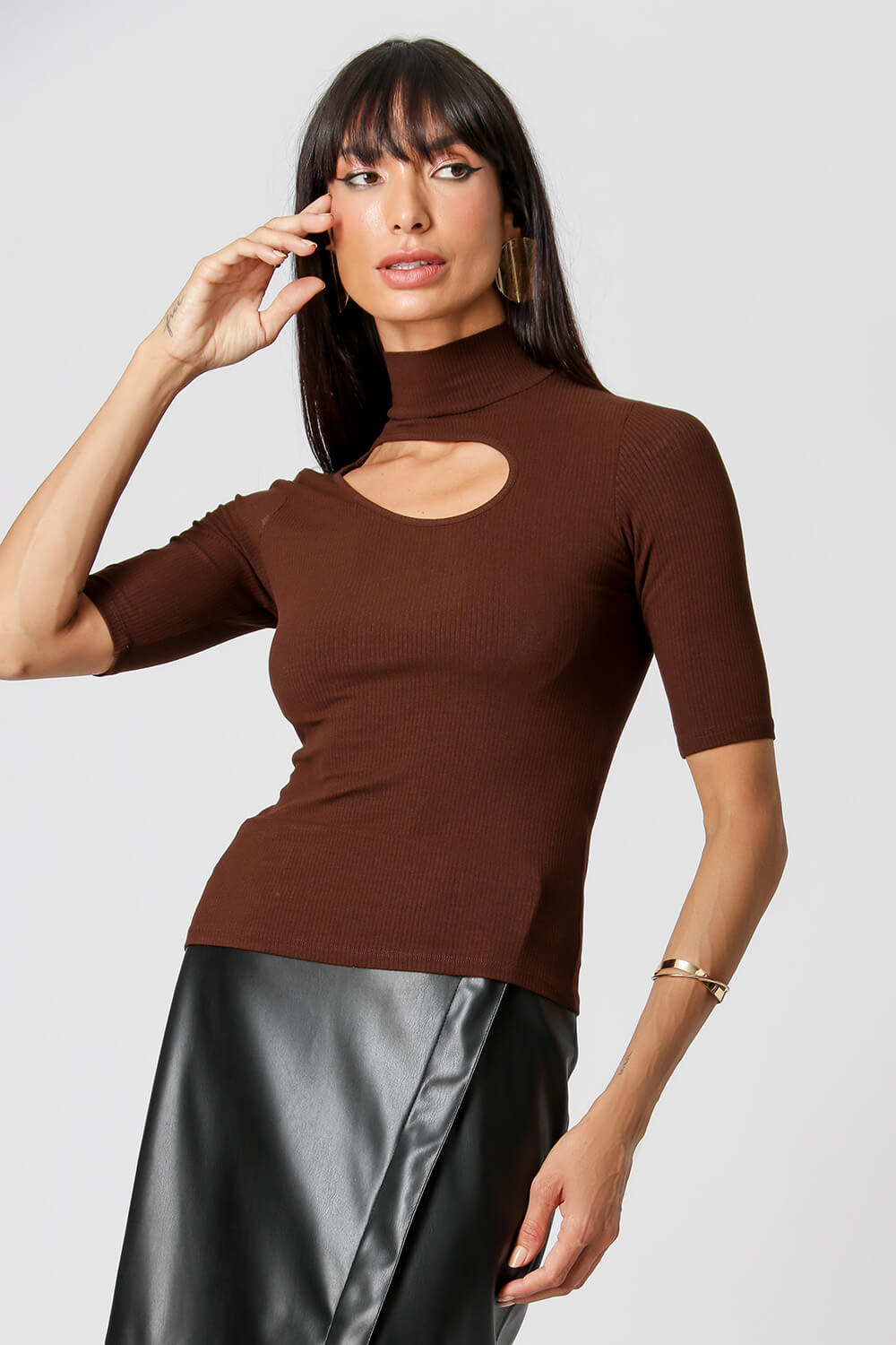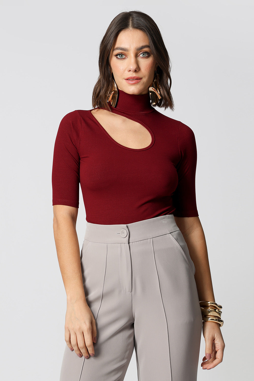 Blusa com detalhe vazado no ombro, gola alta e manga curta é uma peça sensual e elegante que pode ser usada em diversas ocasiões. Ela é perfeita para quem quer adicionar um toque de estilo ao seu look, sem abrir mão do conforto.