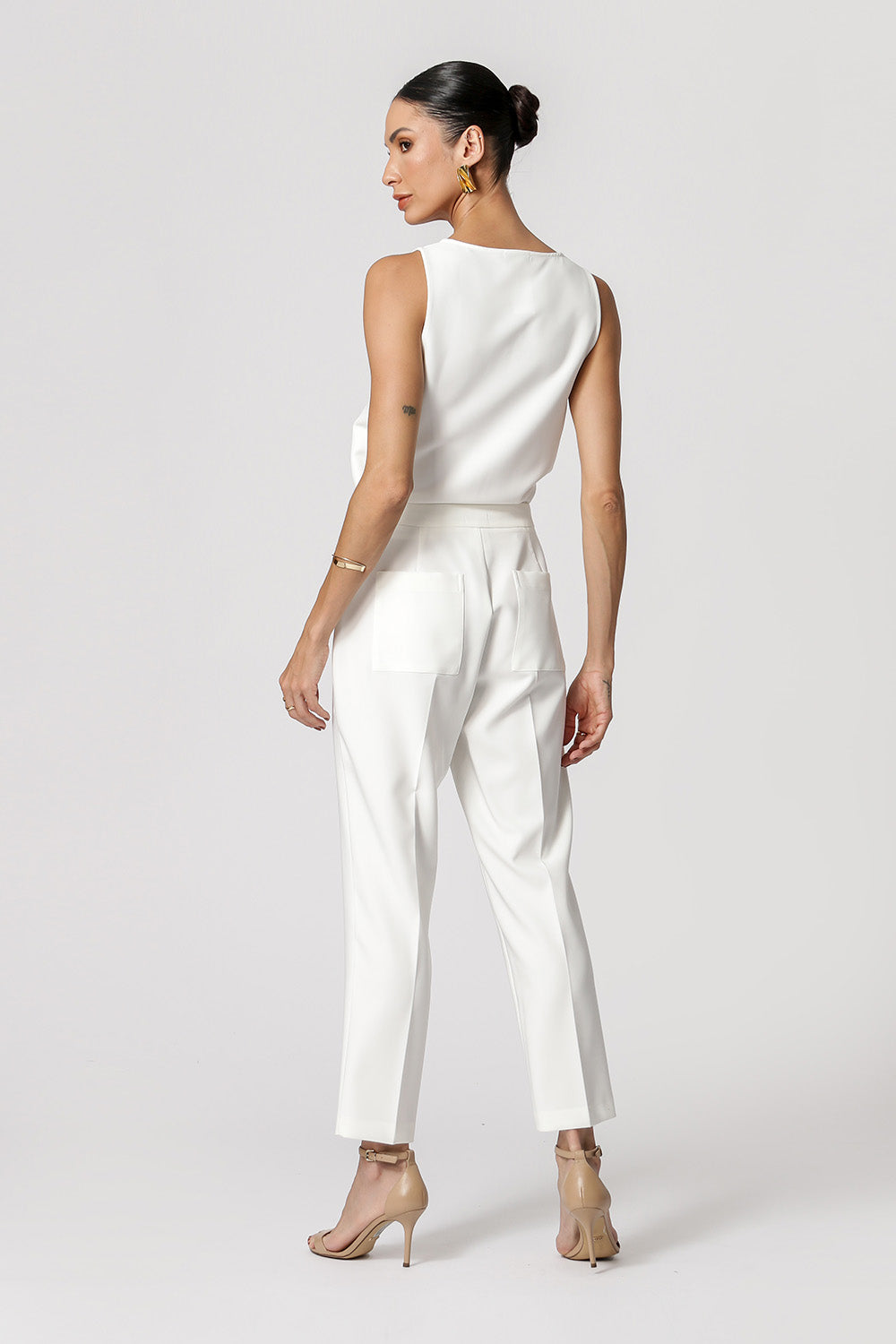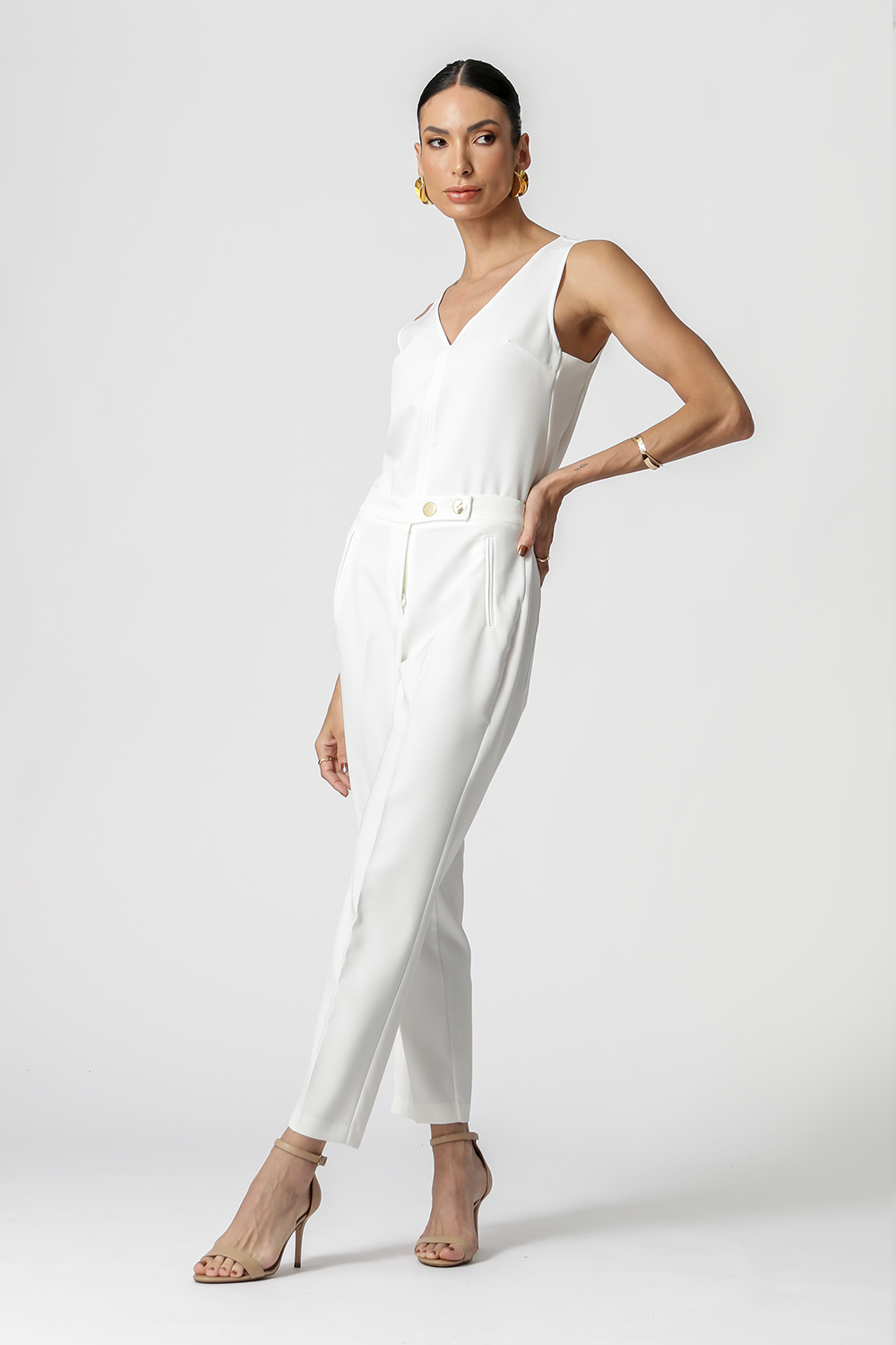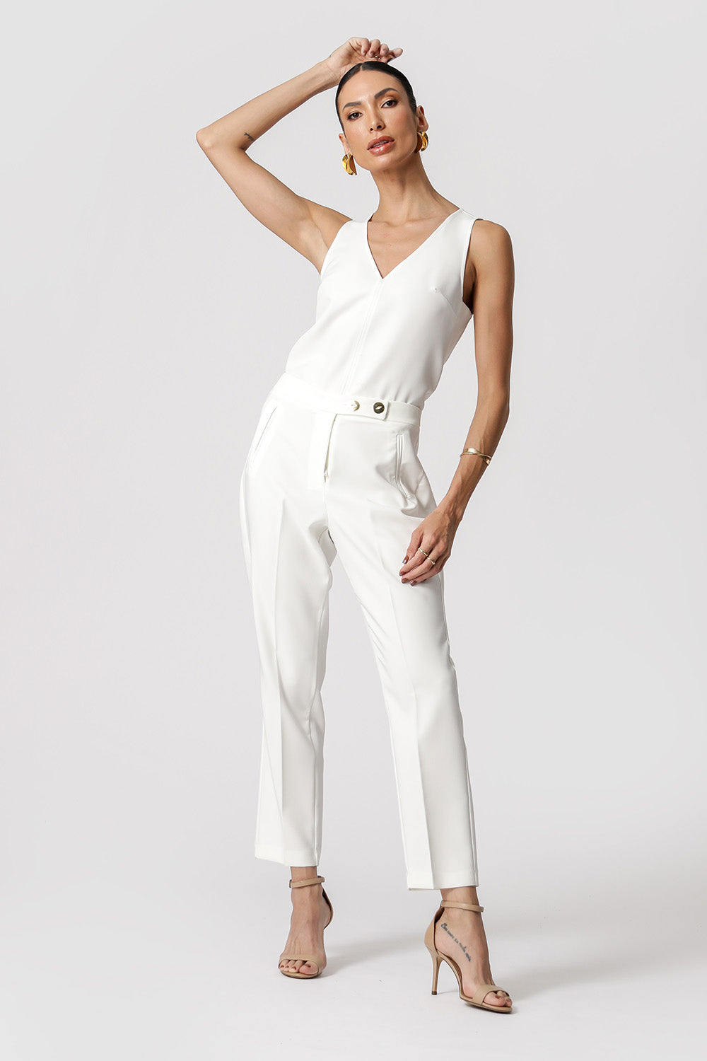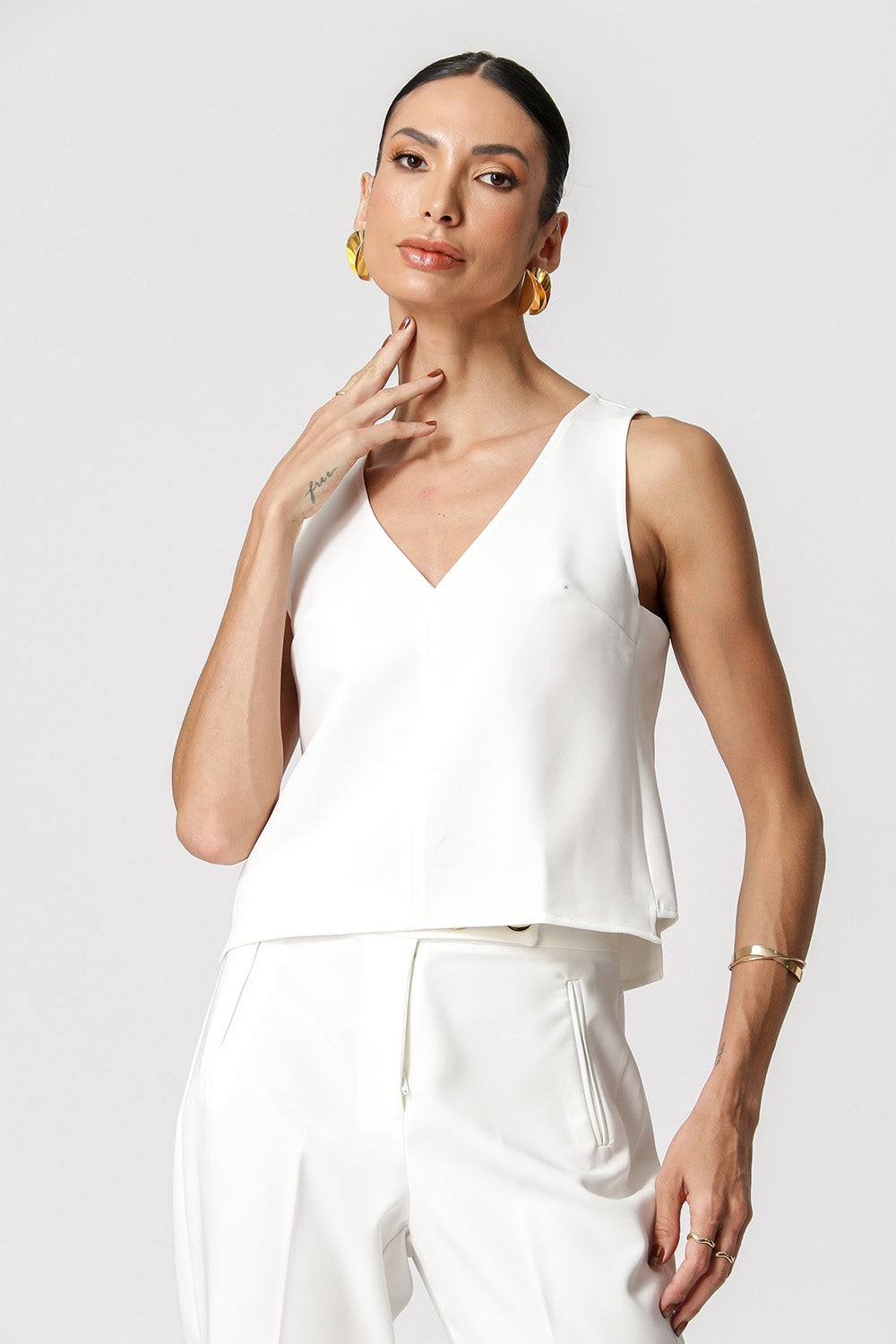 Blusa com decote V sem manga e recorte laterais. Confeccionada em tecido alfaiataria. Uma peça moderna e perfeita para um mood work.