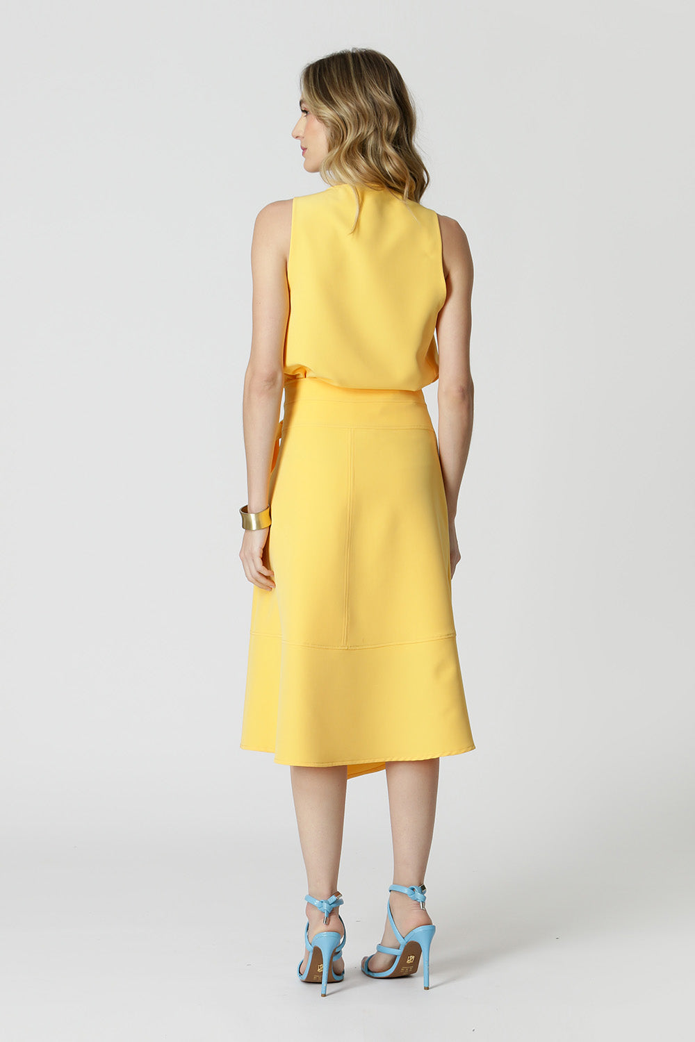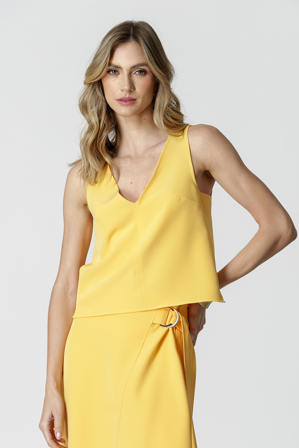 Blusa com decote V sem manga e recorte laterais. Confeccionada em tecido alfaiataria. Uma peça moderna e perfeita para um mood work.