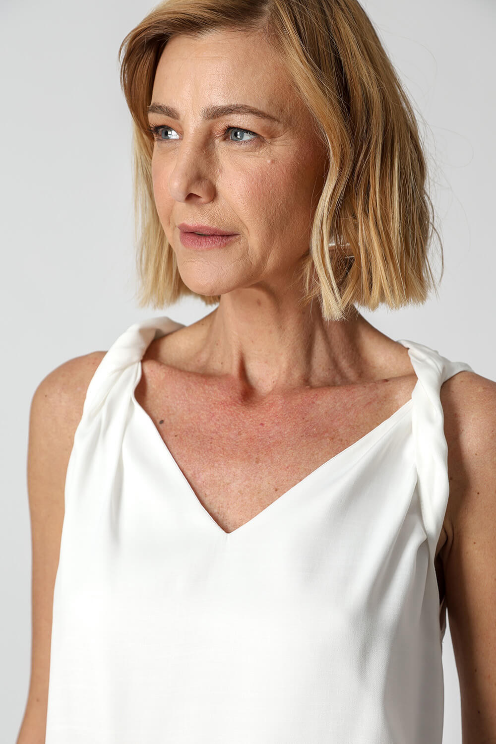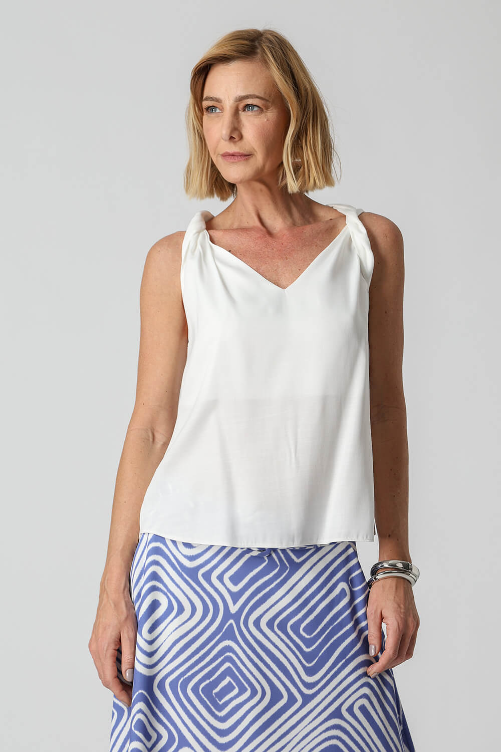 • Blusa Em Cetim Torcida No Ombro - OFF WHITE