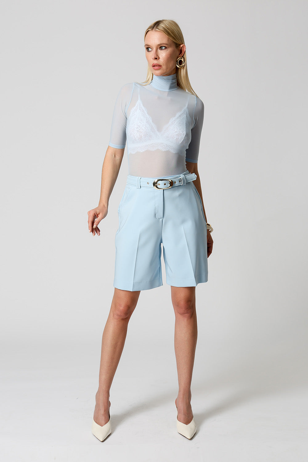 Blusa Em Tule Manga Curta - AZUL CLARO