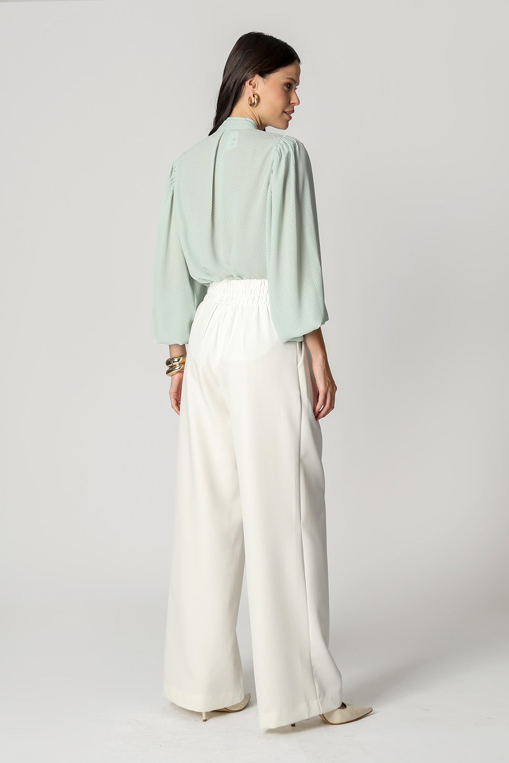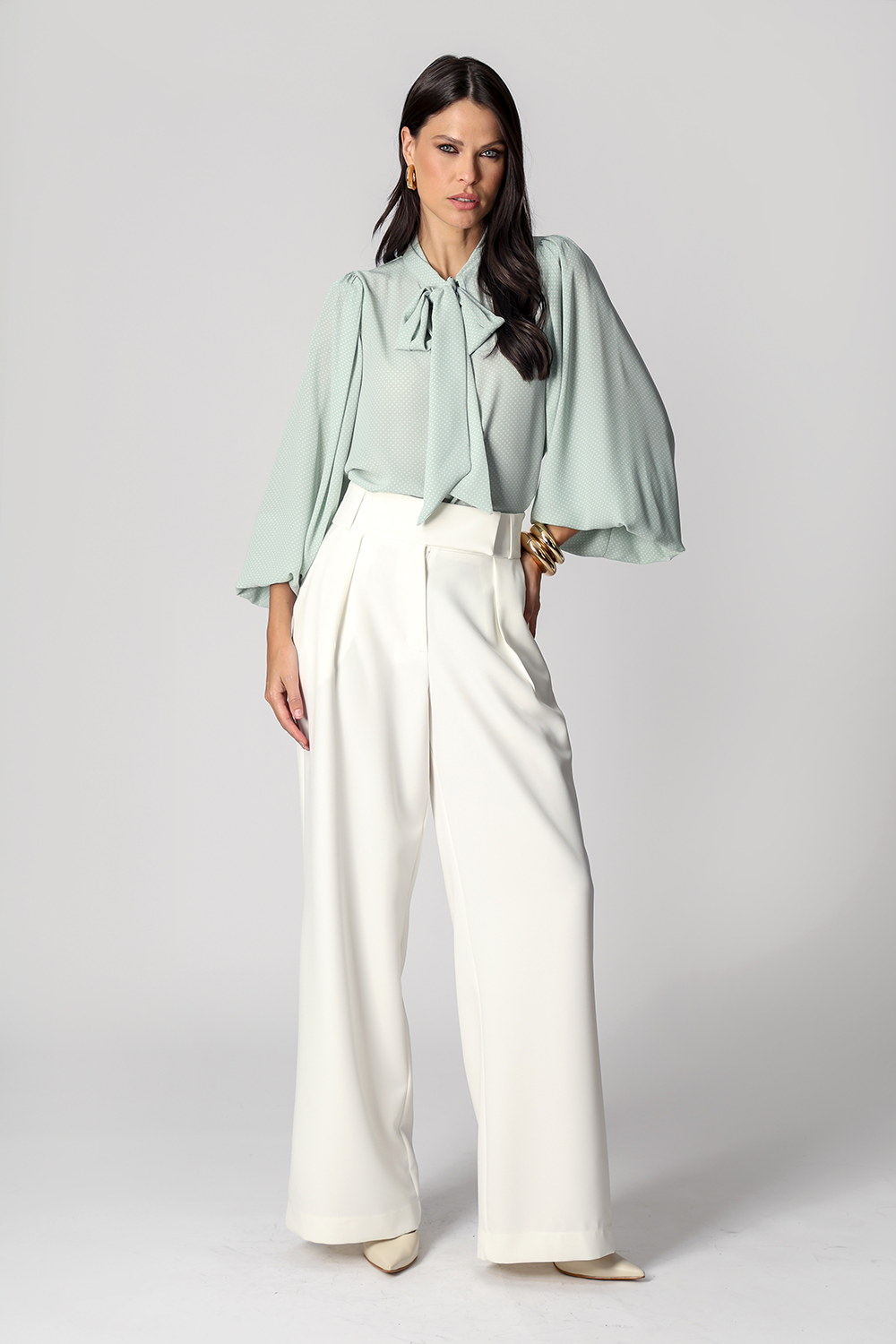 Elegante e cheia de charme, essa blusa traz shape soltinho em crepe fluido estampado, garantindo conforto e leveza. O detalhe do laço no decote e as mangas bufantes adicionam um toque sofisticado e feminino ao look.