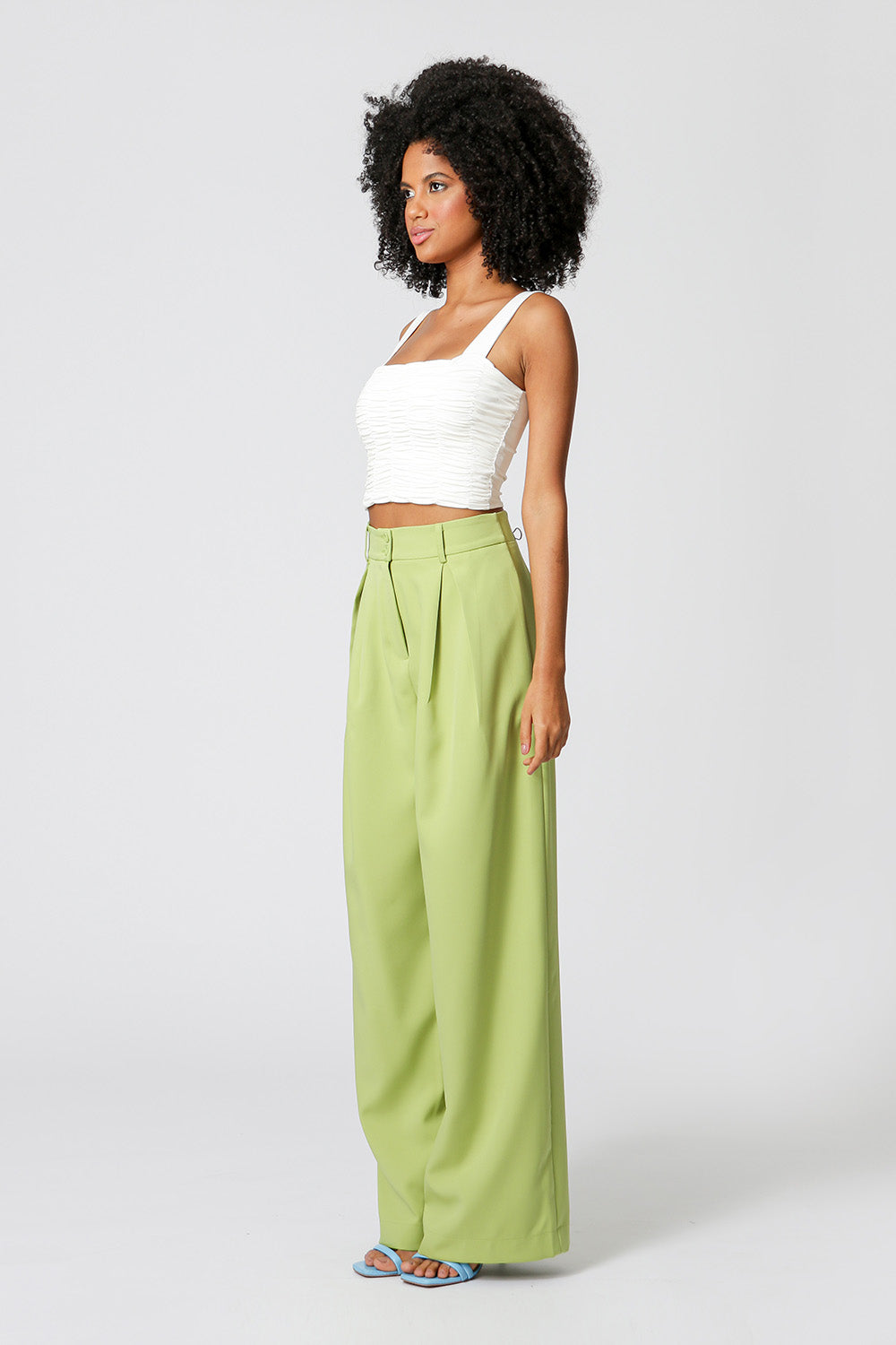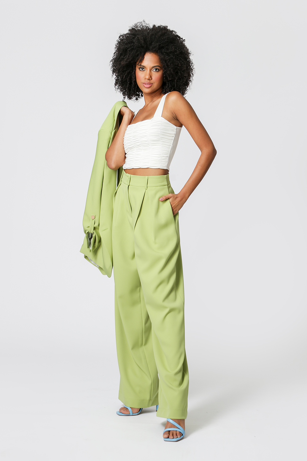Blusa alça com decote reto e frente toda franzida. Feita em malha amni. Ideal para looks mais casuais.