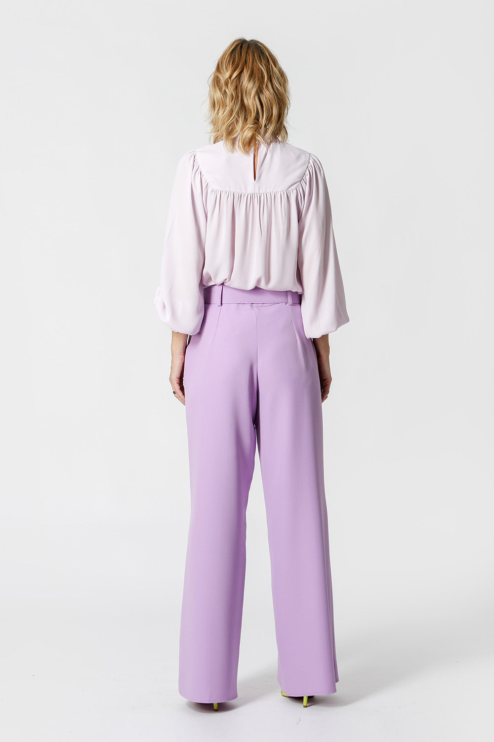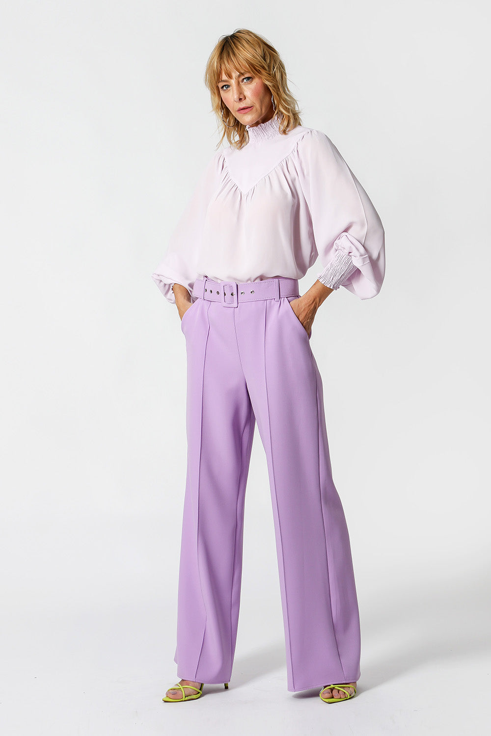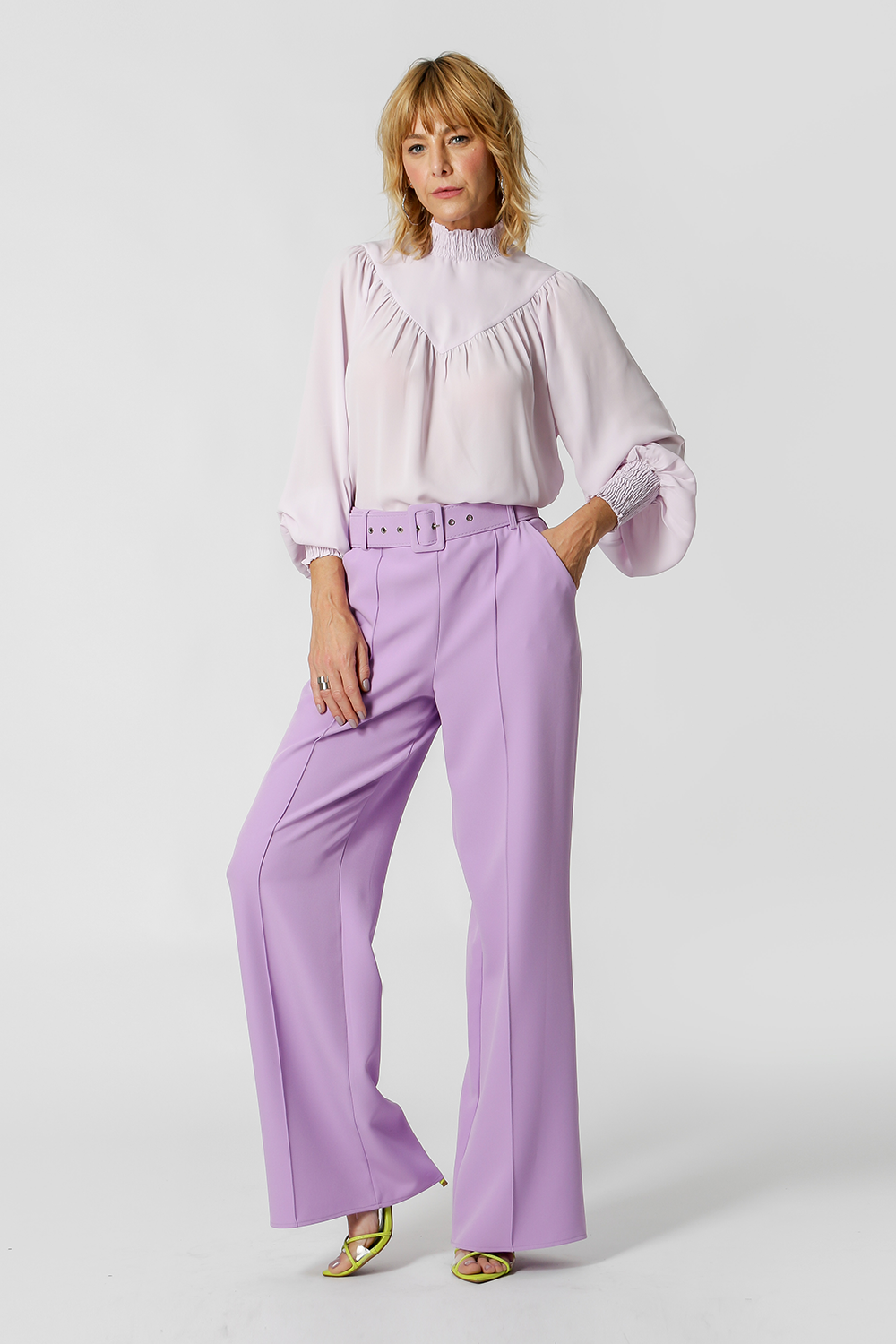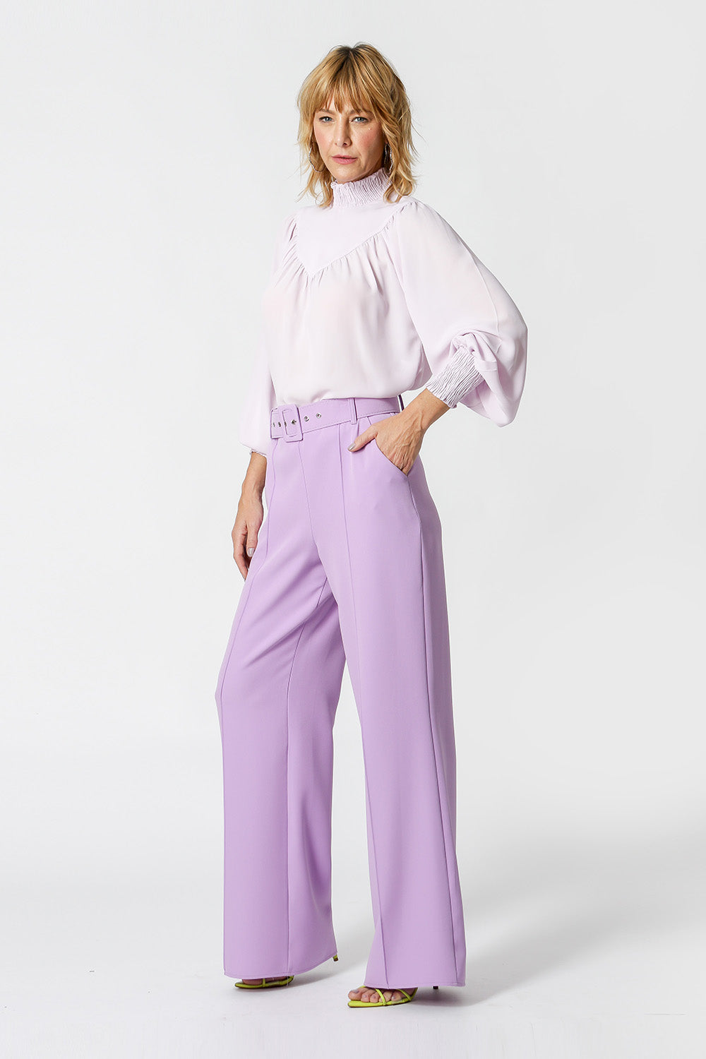 Blusa com shape mais soltinho, manga longa e gola alta, com detalhe de lastex franzido. Peça sofisticada feita em crepe fluído, ideal ocasiões mais formais.
