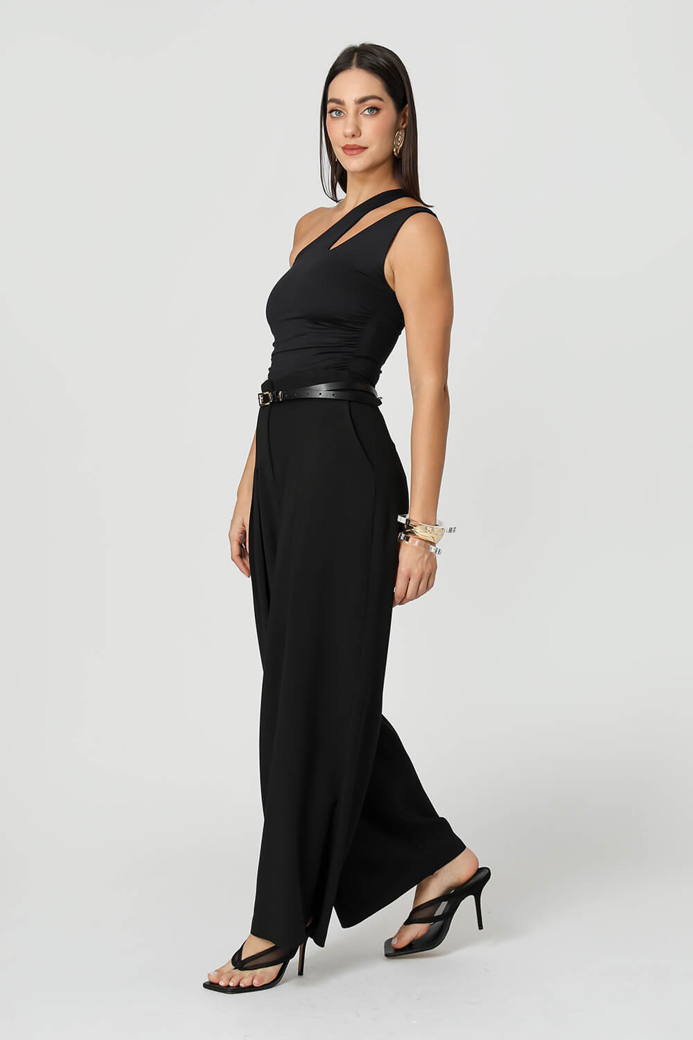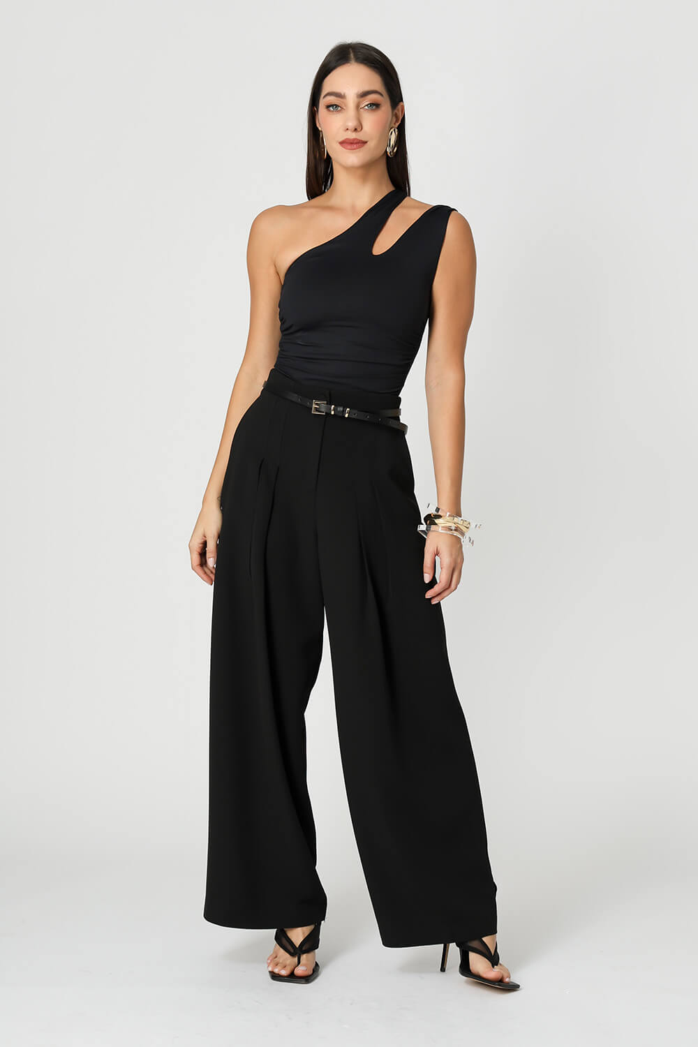 Blusa franzida com abertura no ombro, confeccionada em malha amni. Uma peça coringa para compor os looks do dia a dia.