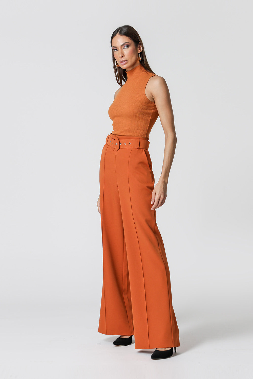 Blusa gola alta feita em malha canelada. Peça linda para looks de trabalho e ocasiões casuais.