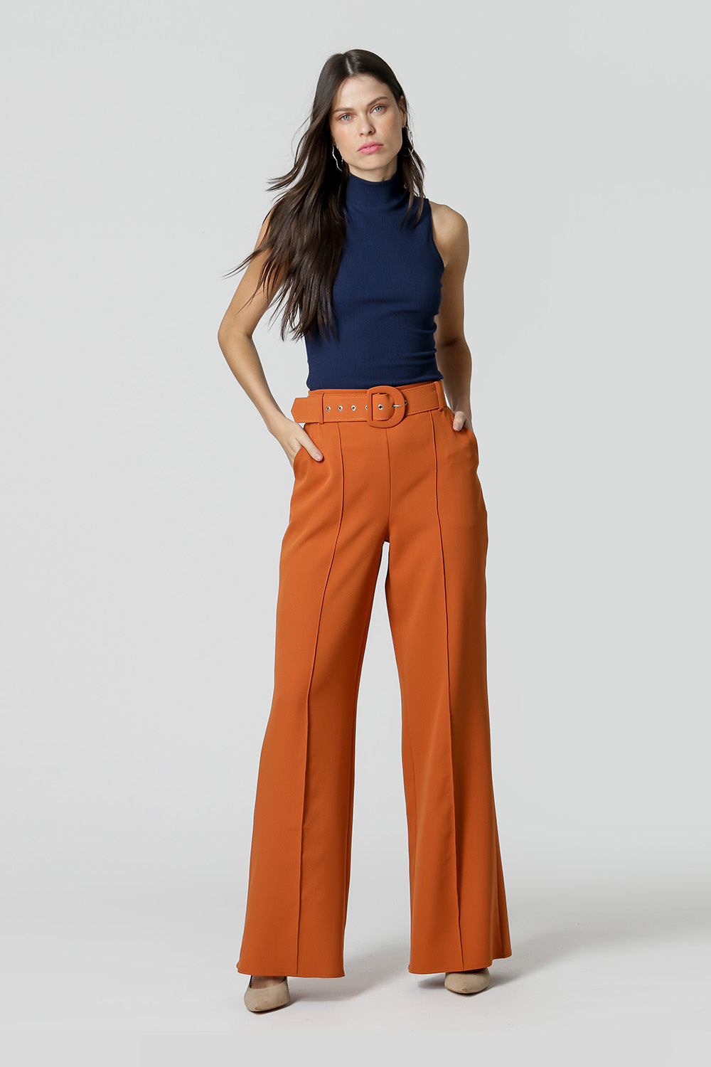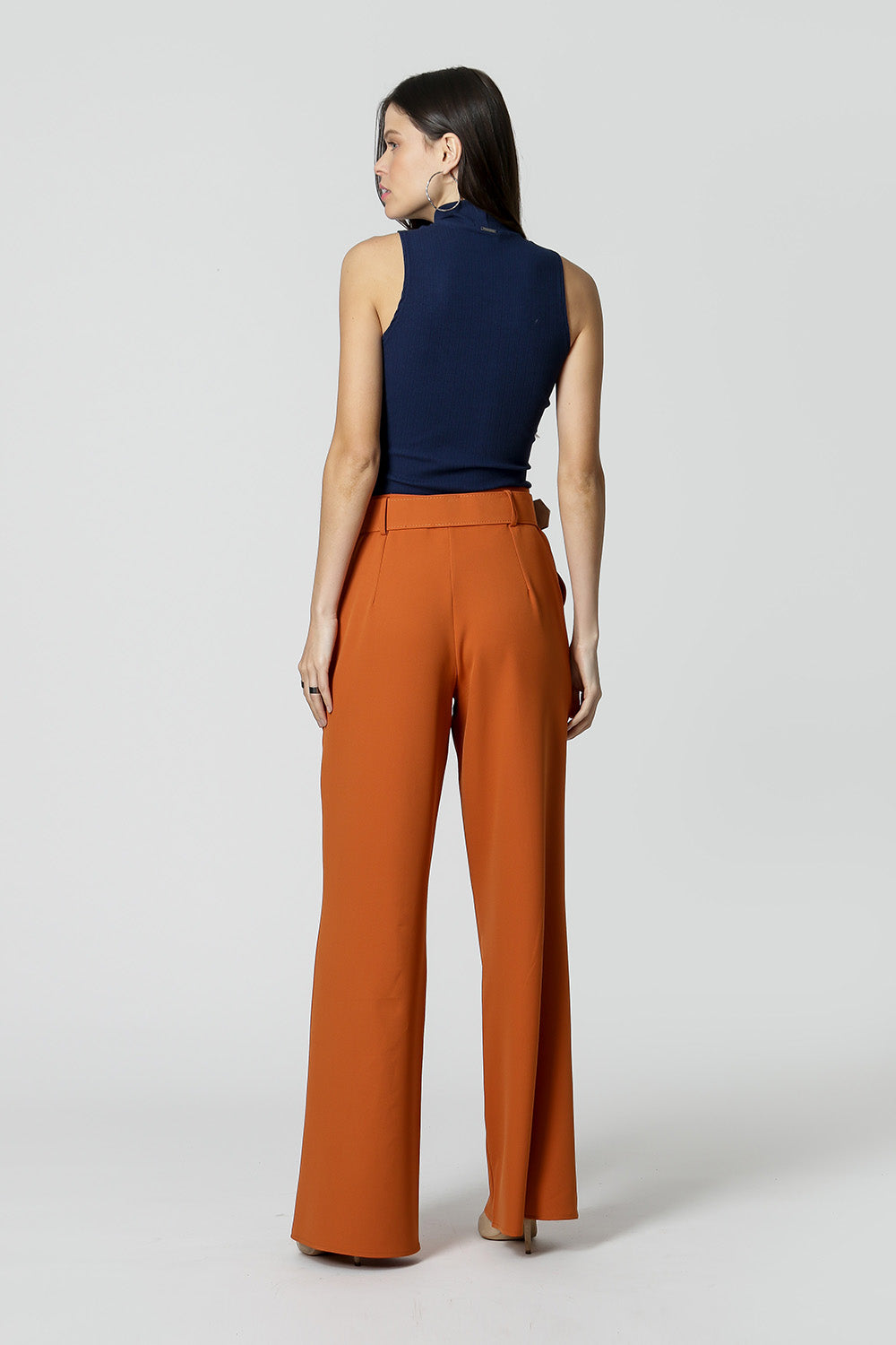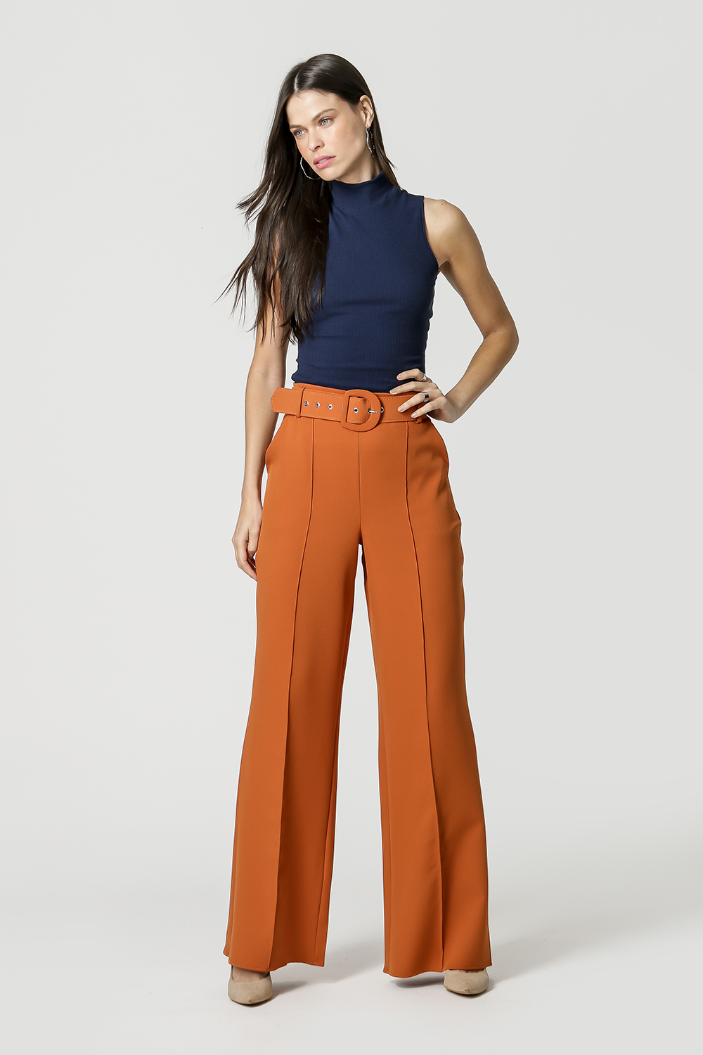 Blusa gola alta feita em malha canelada. Peça linda para looks de trabalho e ocasiões casuais.