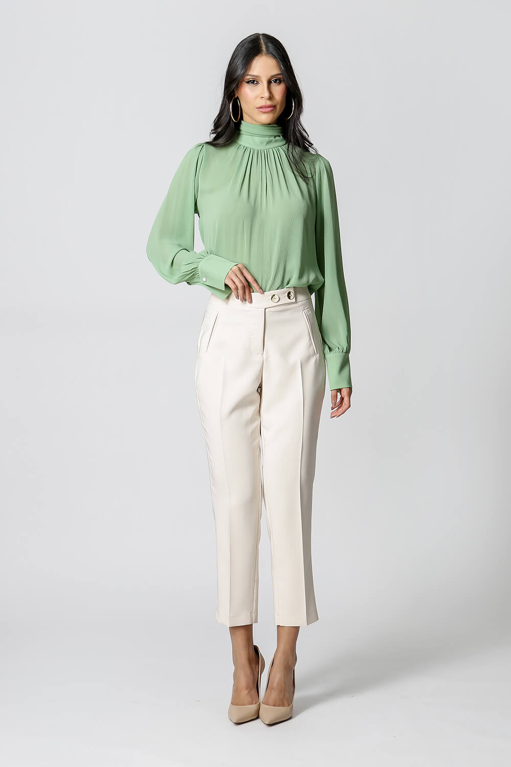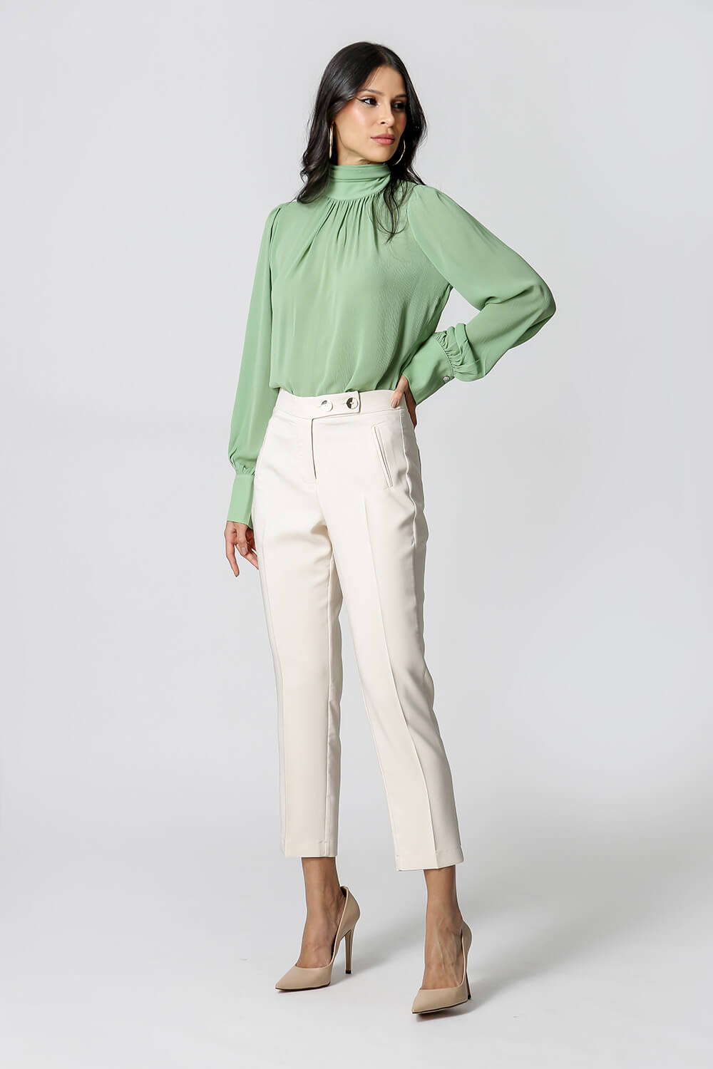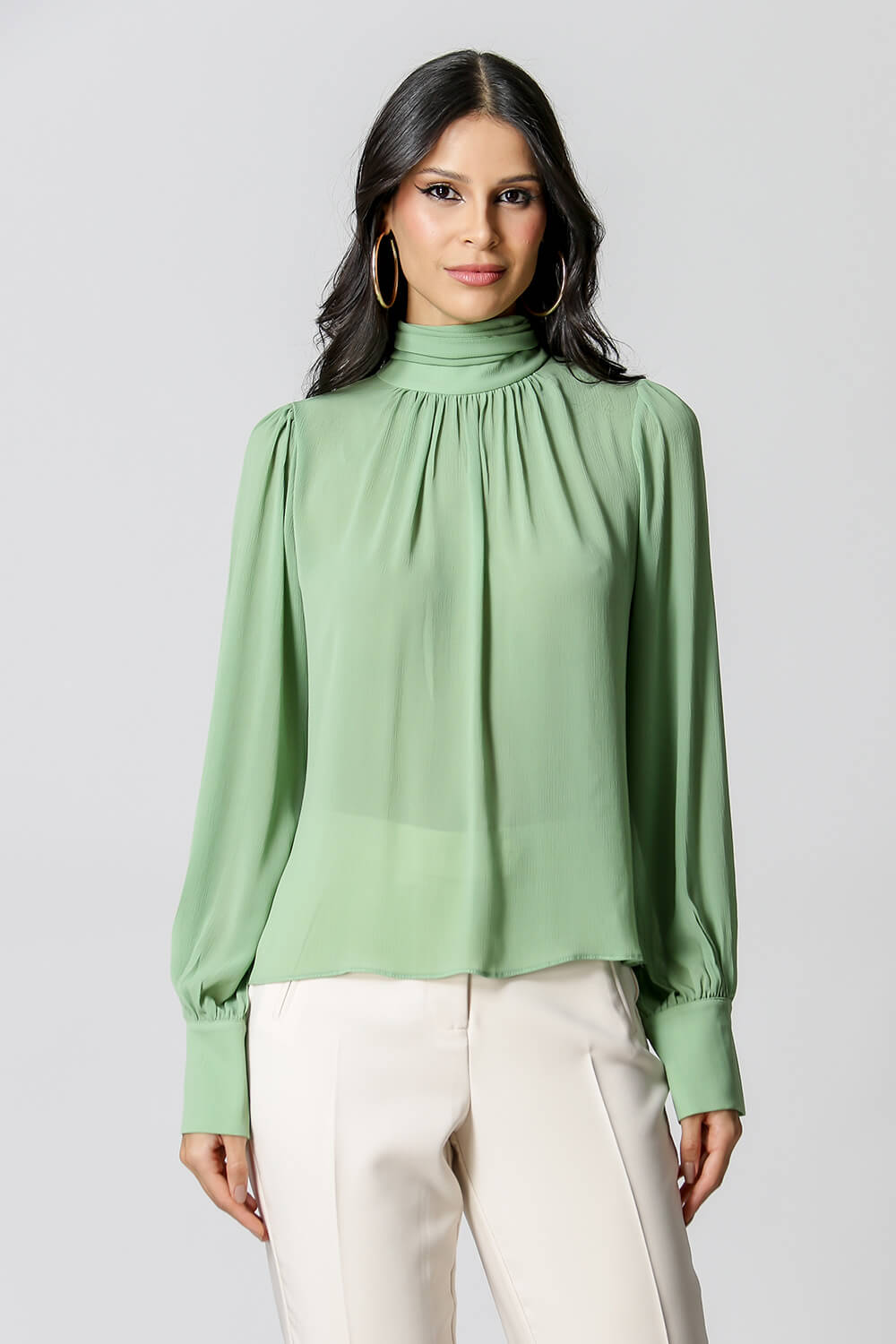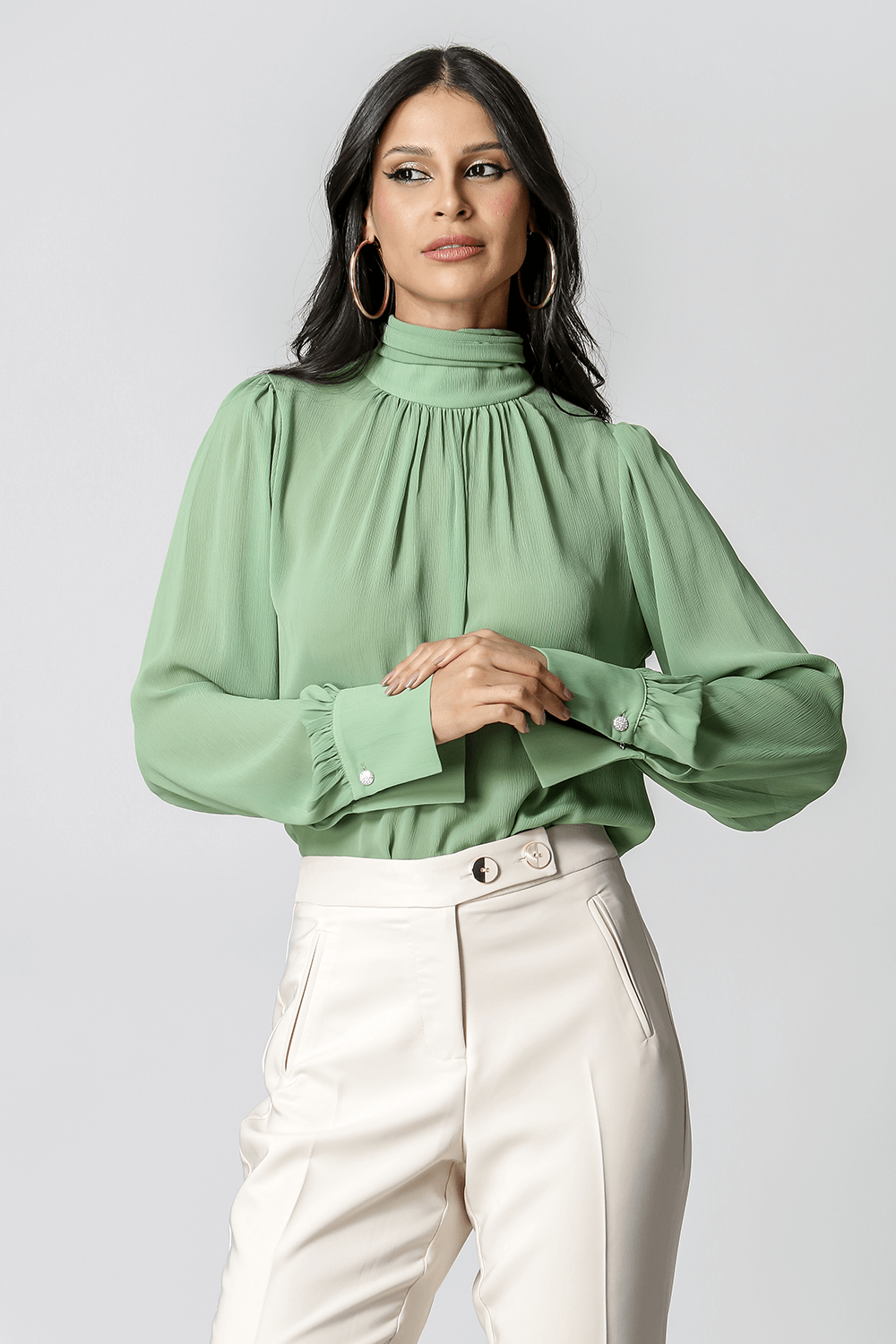 Blusa Gola Alta Com Amarração. Peça elegante e ideal para o mood work.