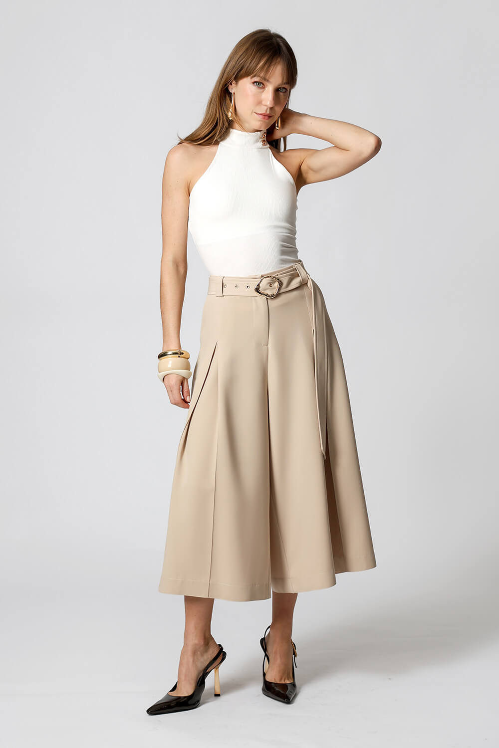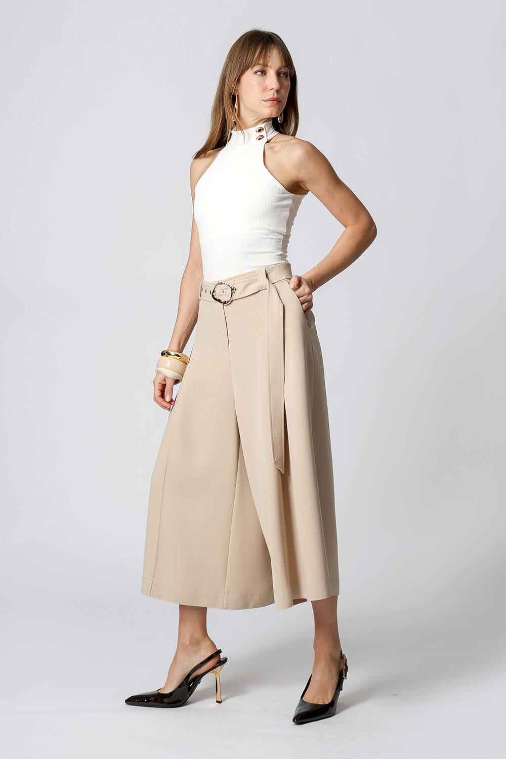 Elegante e versátil, a blusa de gola alta traz botões dourados diferenciados que adicionam charme ao visual. Com modelagem slim e tecido canelado, valoriza a silhueta e é perfeita para compor looks do dia a dia ao office look.