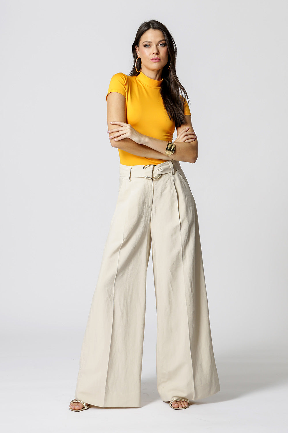 Blusa com gola alta e manga curta. Confeccionada em tecido malha. Uma peça básica e que não pode faltar em seu closet para compor looks casual.