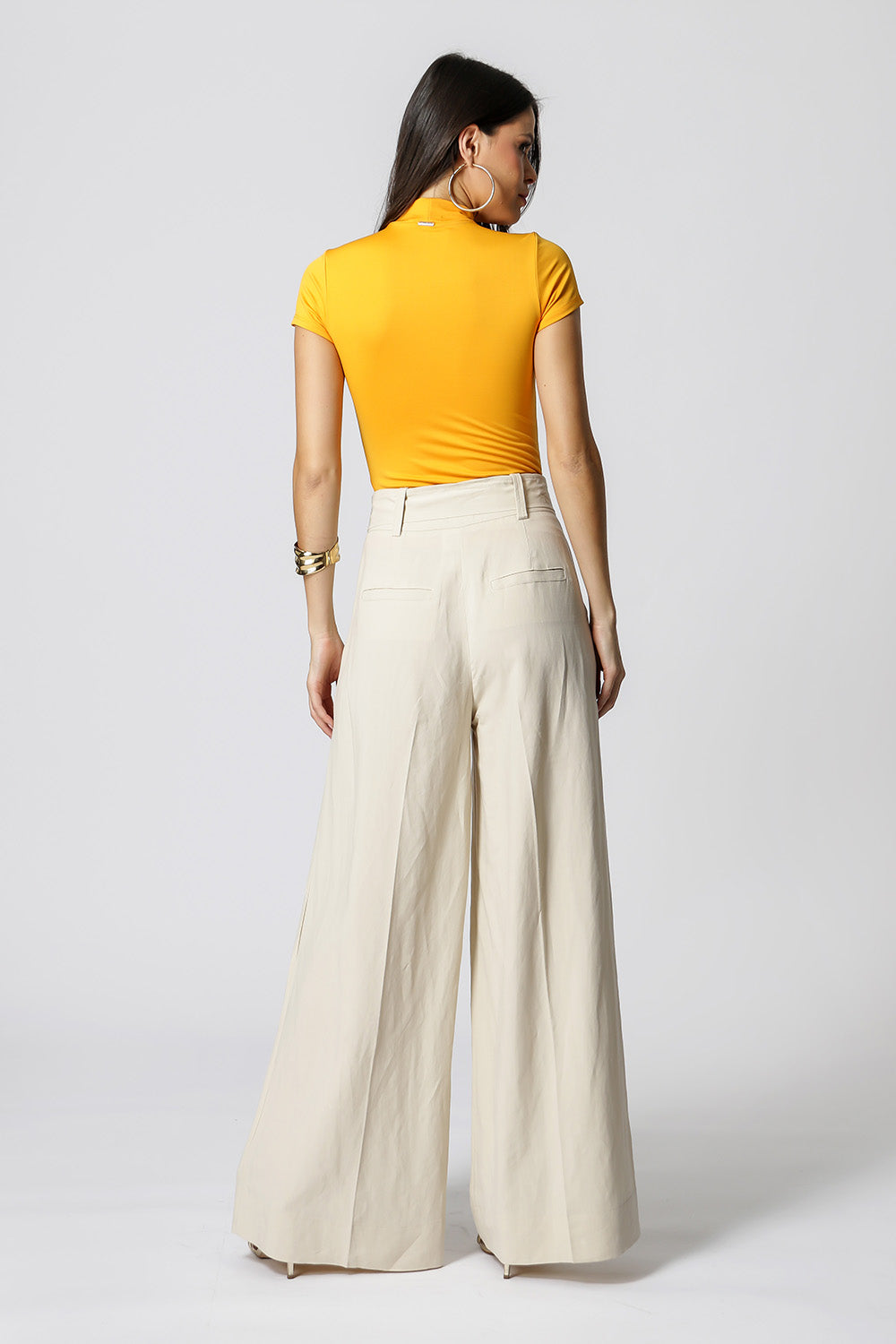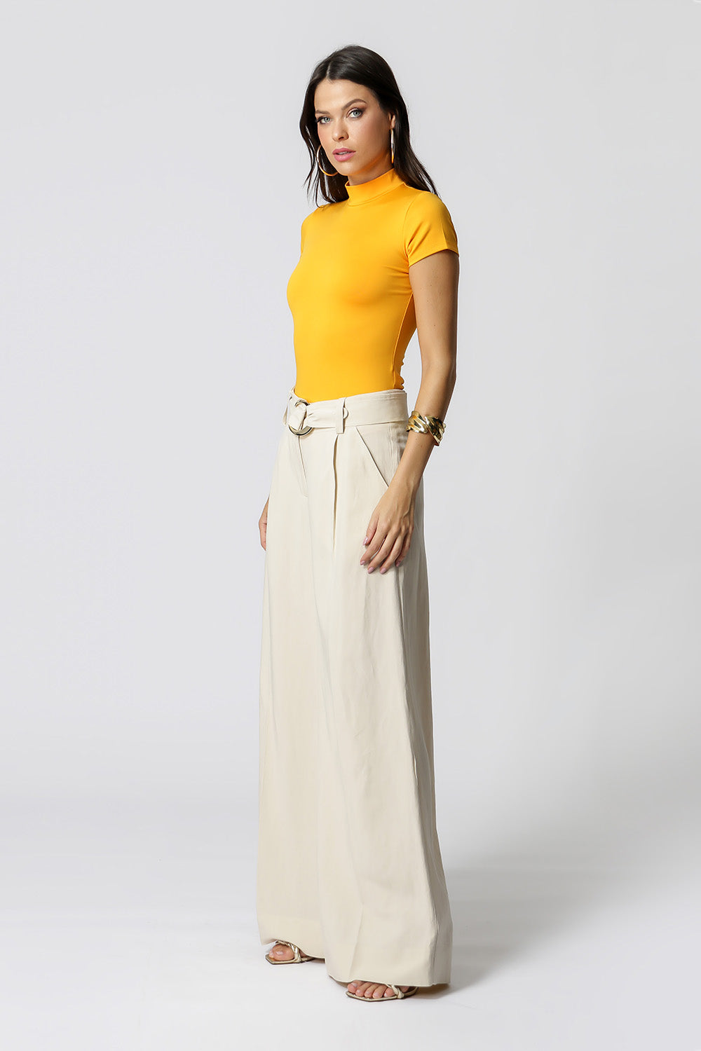• Blusa Gola Alta Com Manga Curta - TANGERINA