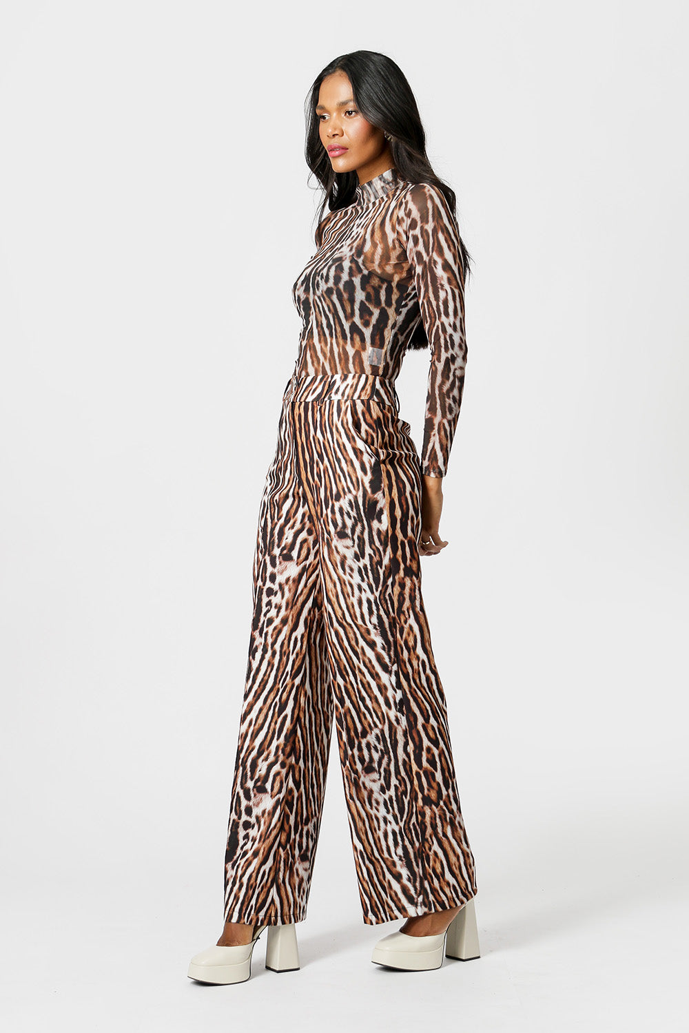 Blusa manga longa e gola alta confeccionada em tule estampado. Peça trendy que não pode ficar de fora do look night.