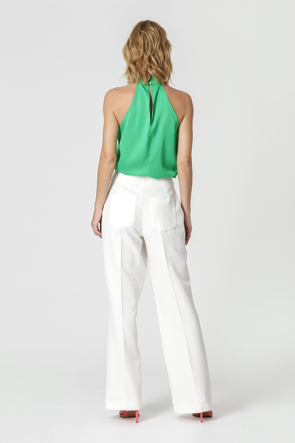 • Blusa Gola Alta Em Cetim Poá - BANDEIRA