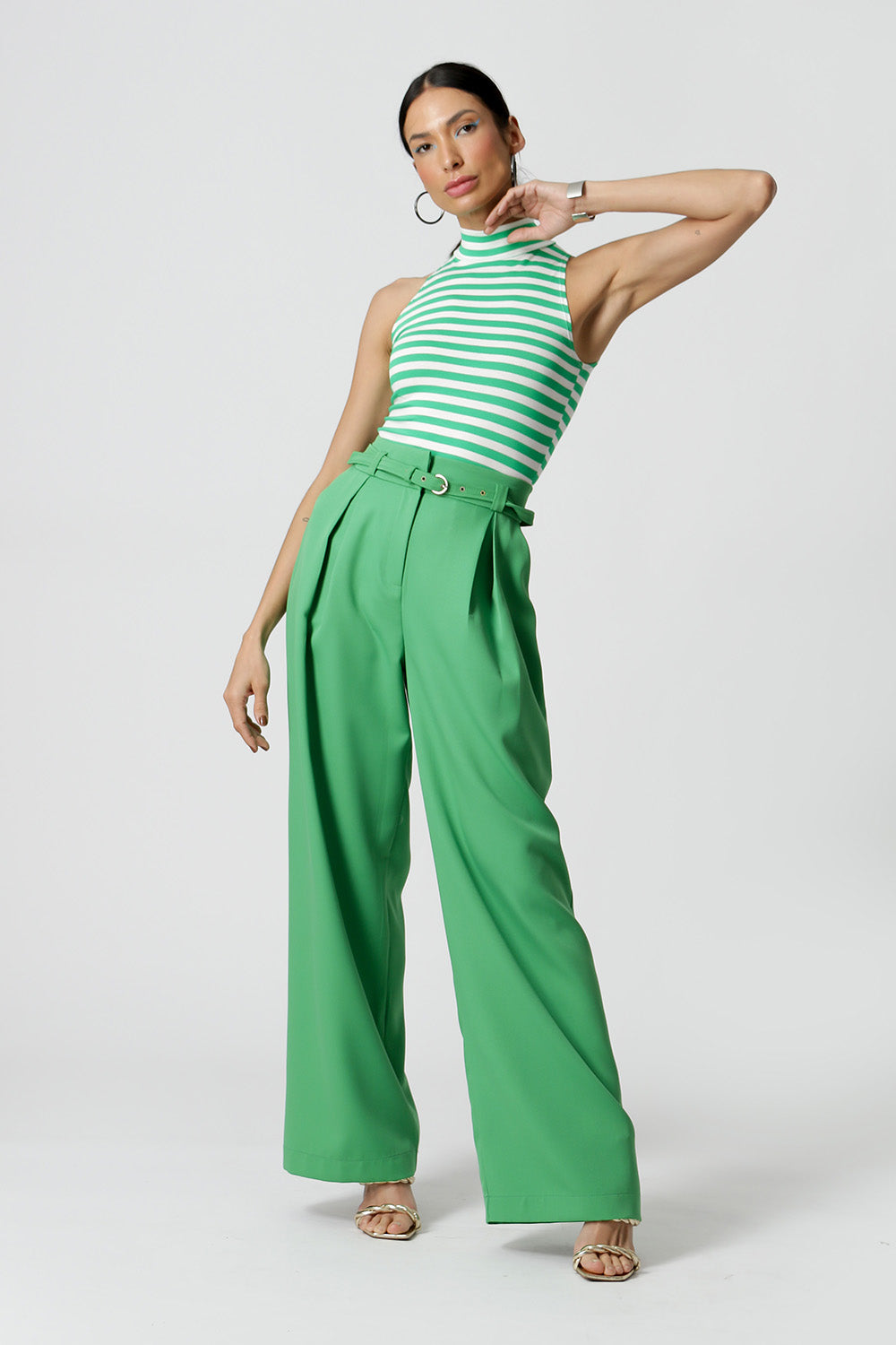 Blusa com gola e cava americana, feito em malha listrada, uma peça versátil para diversos looks um item essencial para o guarda roupa feminino.
