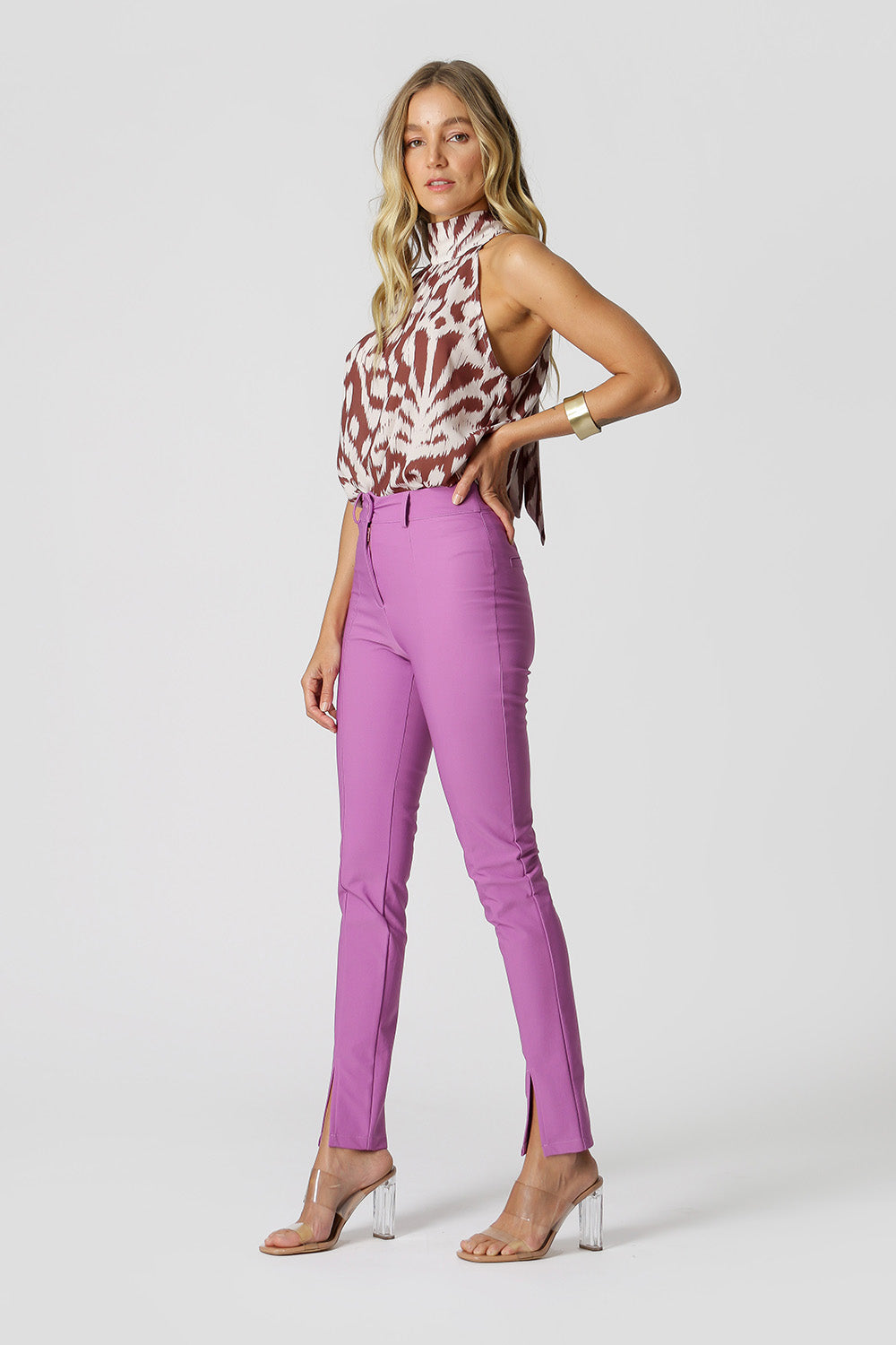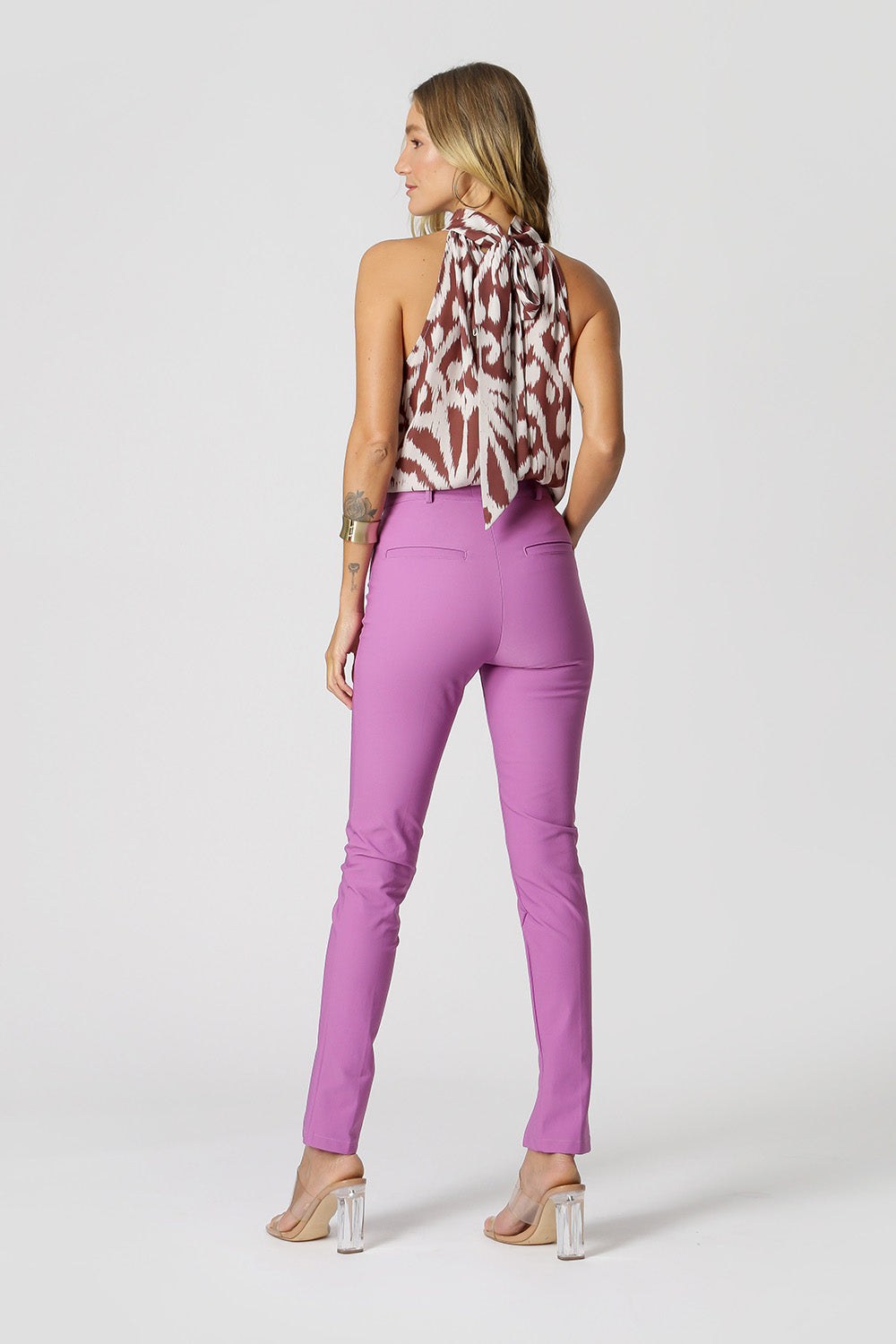 Blusa cava americana, feita em crepe fluído estampado. Possui detalhe de gola com laço e abertura costas. Peça elegante, ideal para ocasiões especiais.