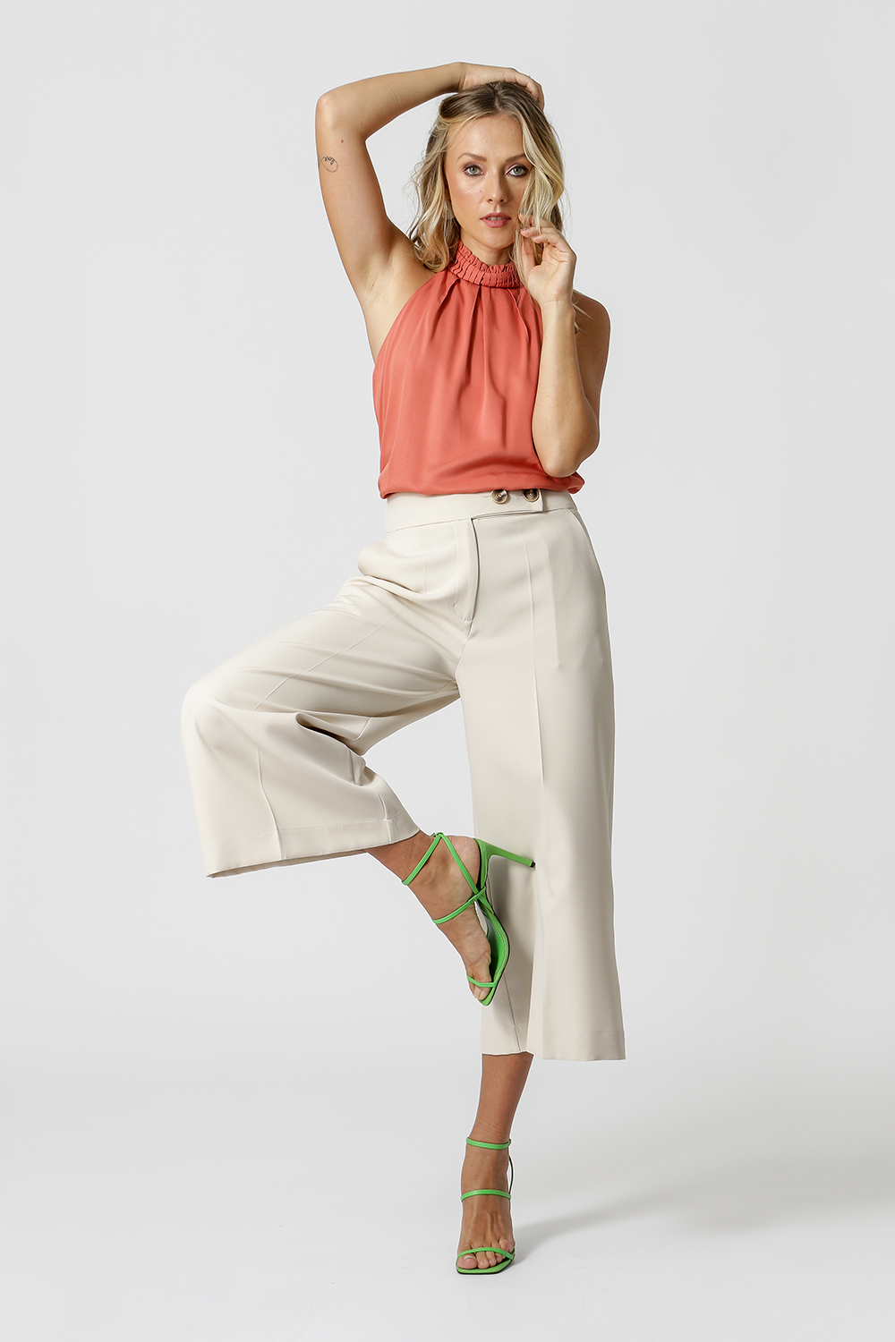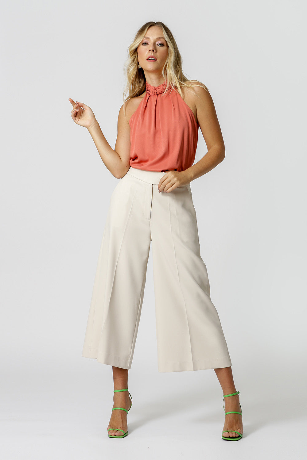 Blusa com cava americana, shape mais solto e detalhe de gola com pregas. Peça feita em viscose fluída, perfeita para um look do dia a dia.