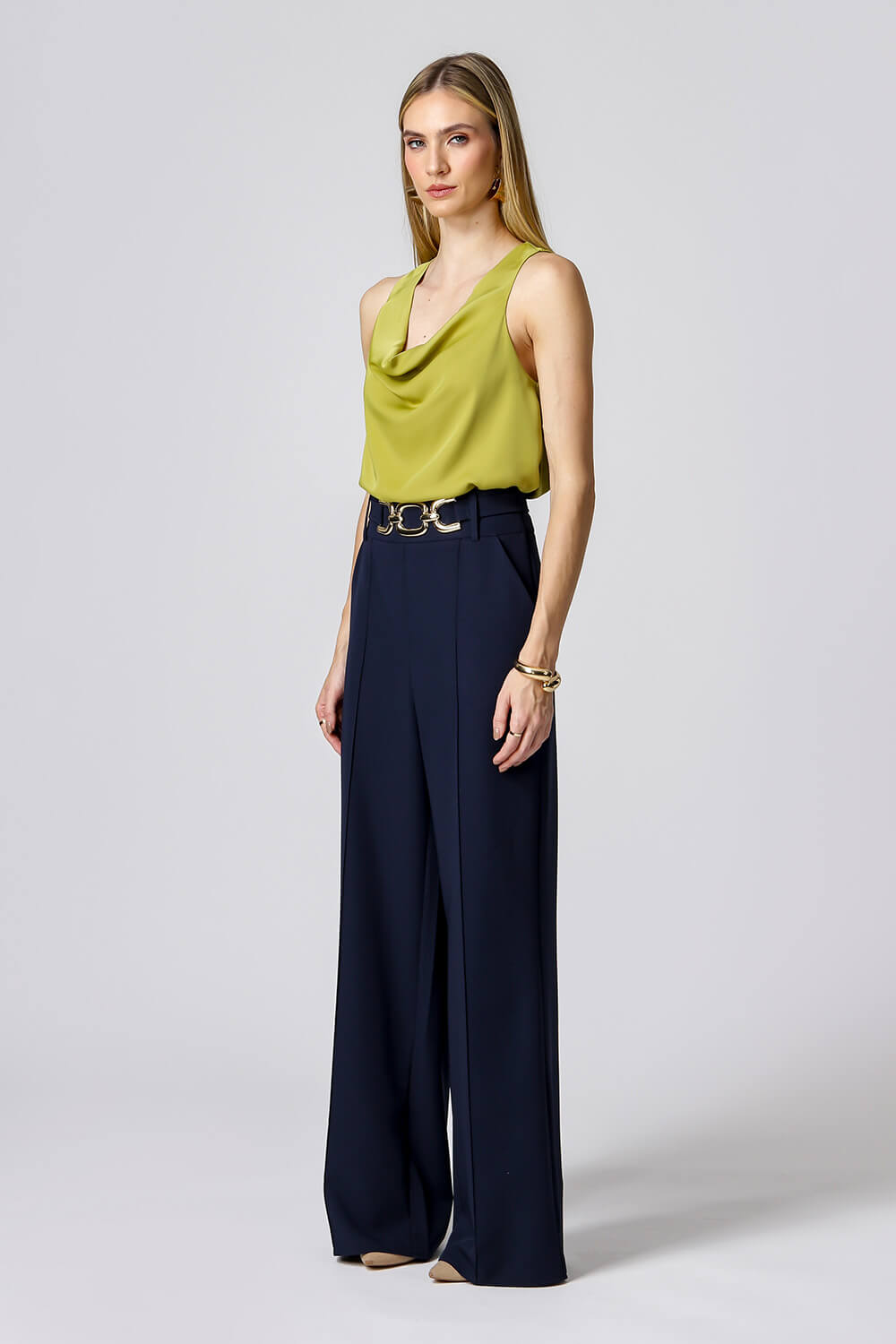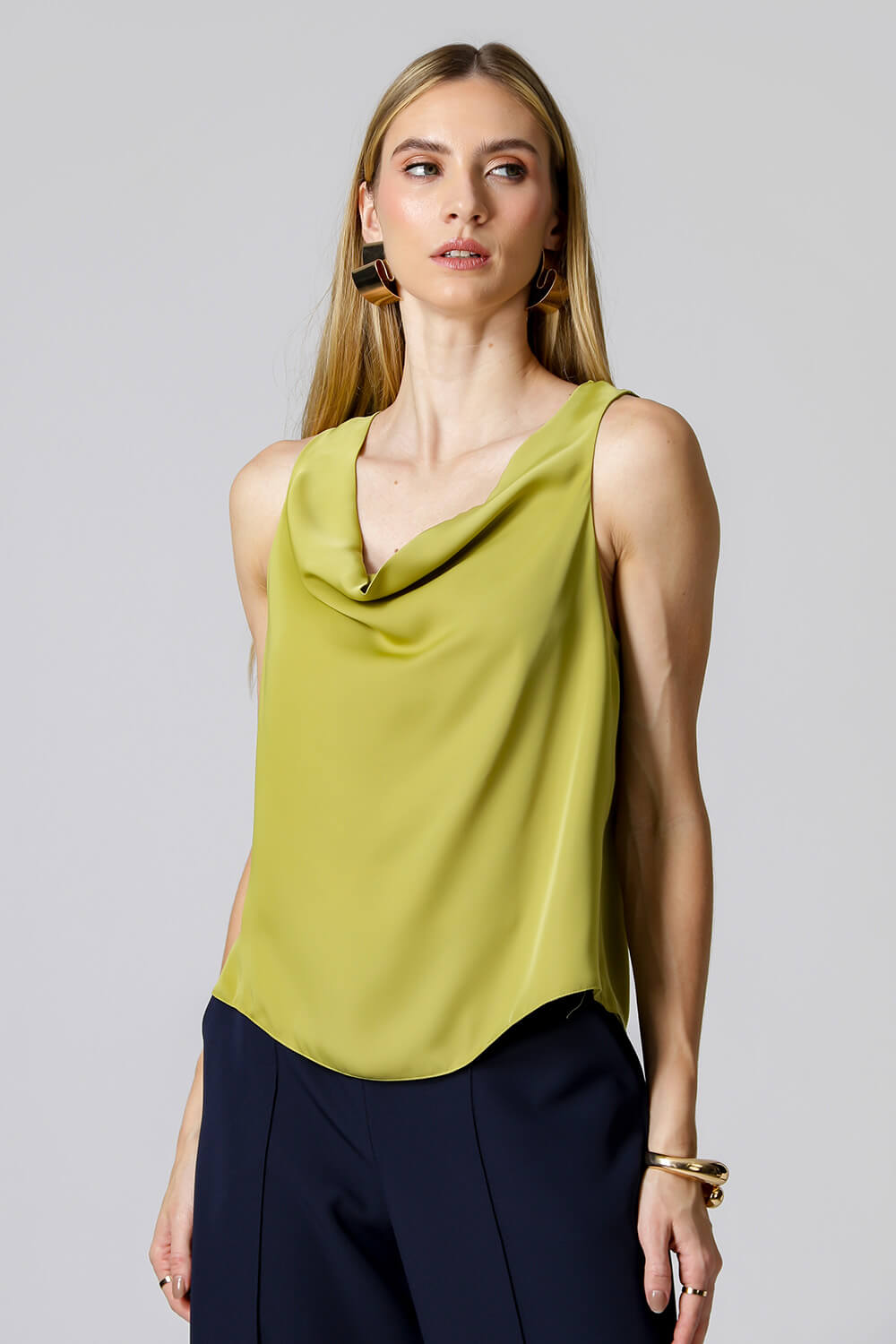 Blusa Gola Degagê. Uma peça confeccionada no cetim. Peça com informação de moda atual e moderna.