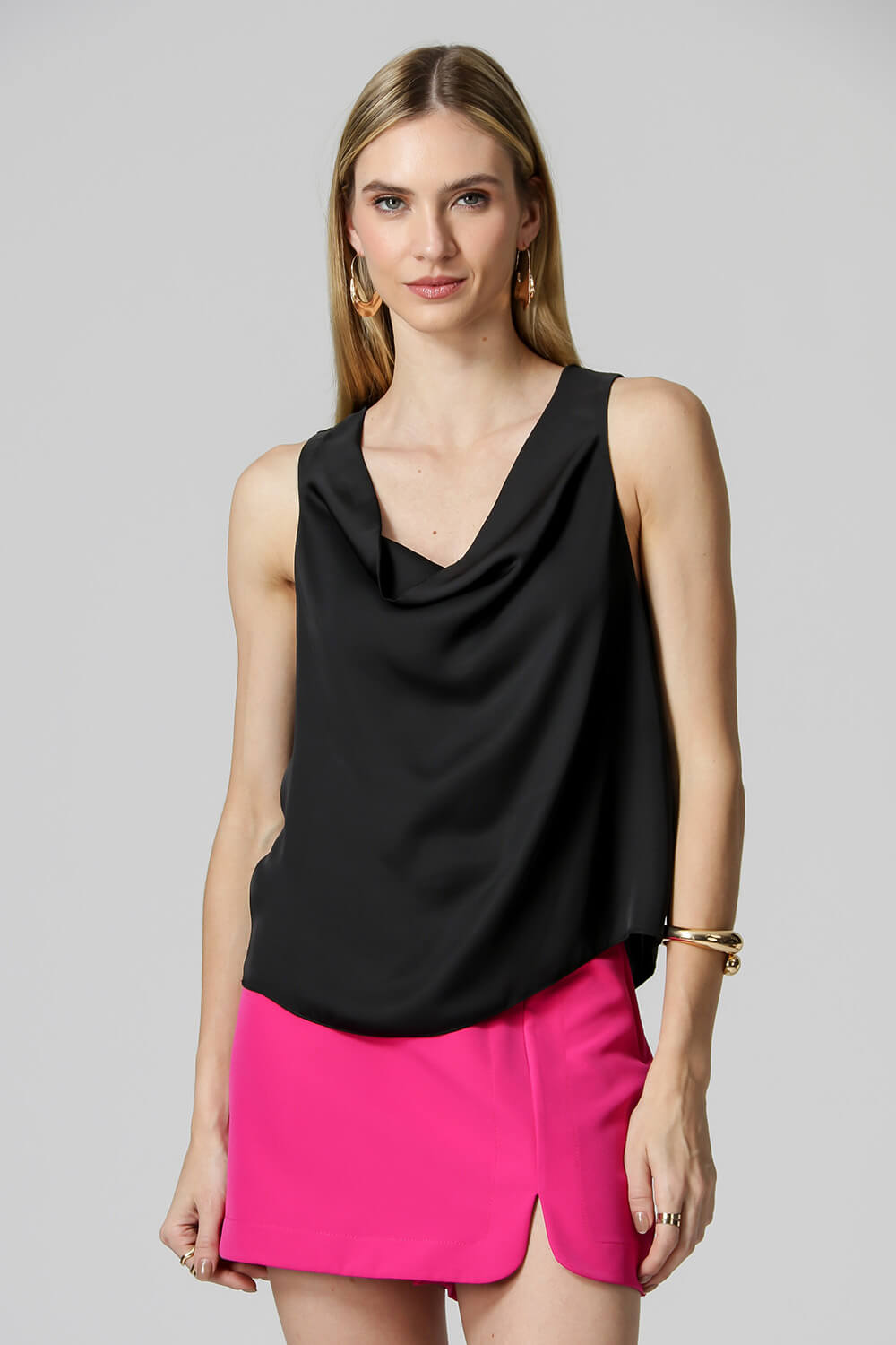 Blusa Gola Degagê. Uma peça confeccionada no cetim. Peça com informação de moda atual e moderna.