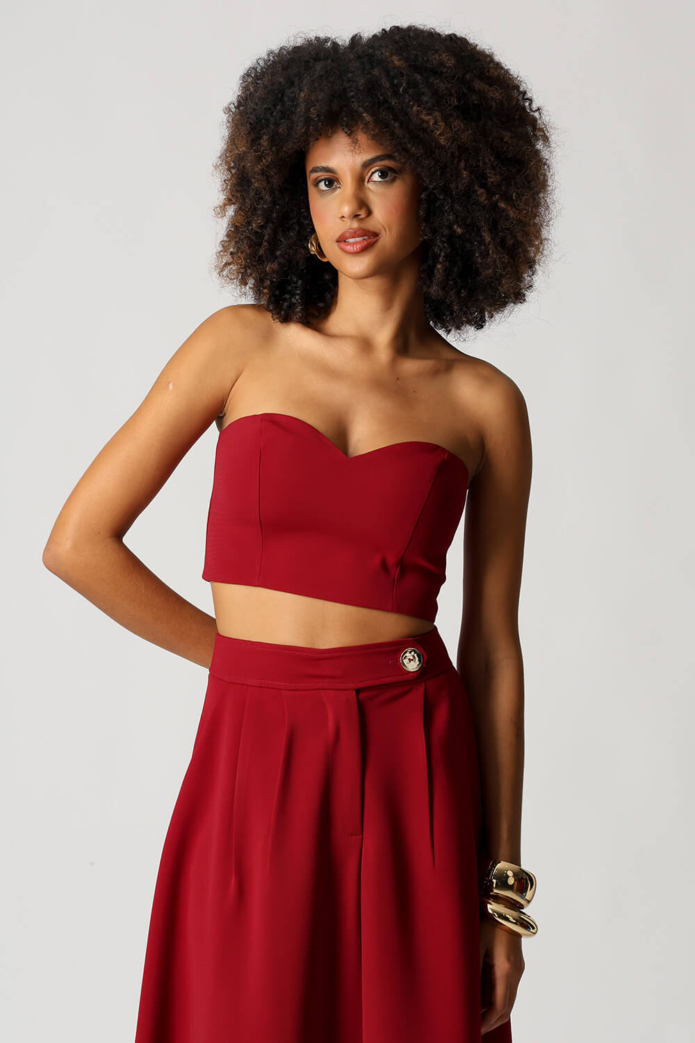 Acompanha top e faixa do mesmo tecido, podendo ser usada de diversas maneiras diferentes