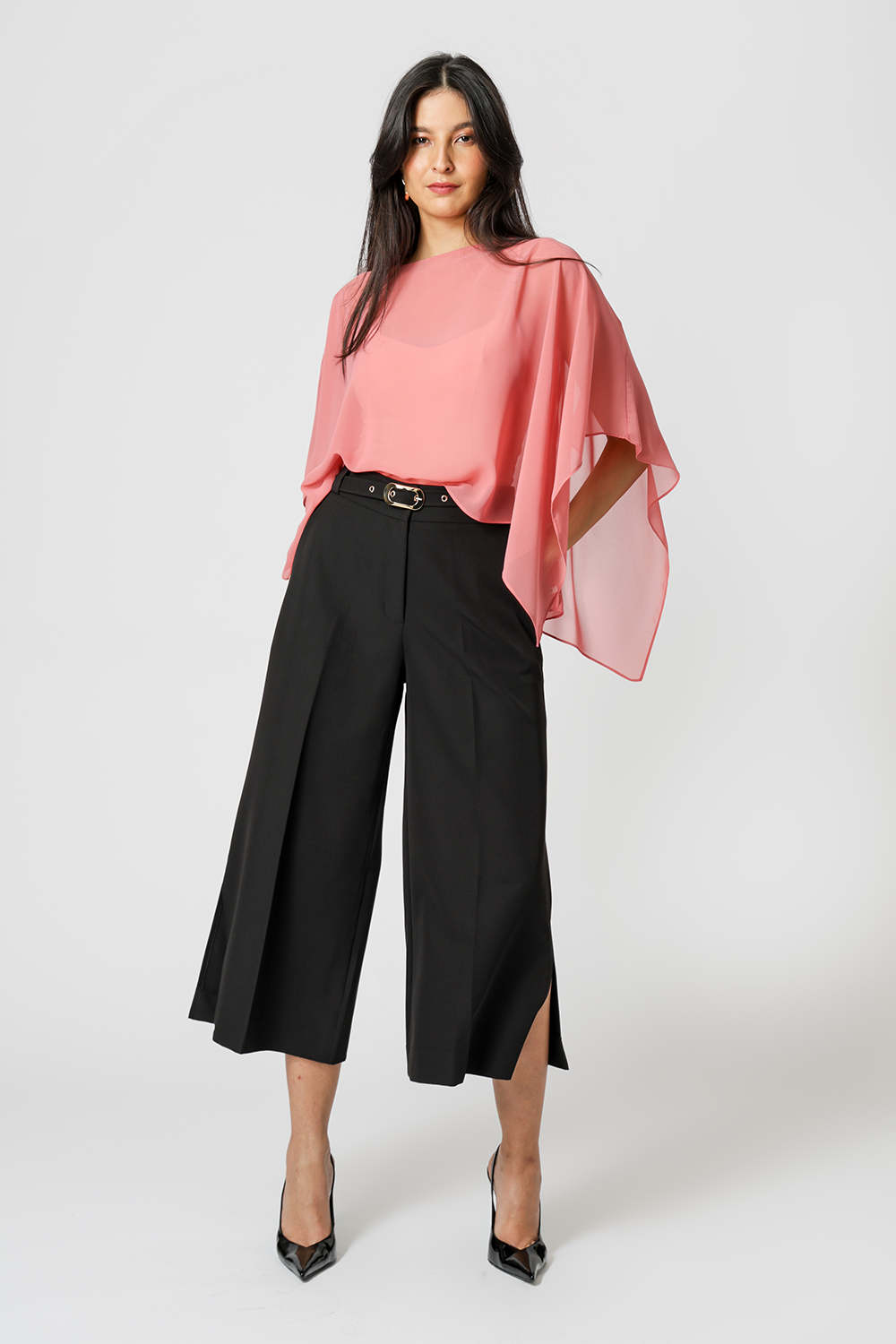 Blusa kaftan confeccionada em tecido crepe fluído. Peça com leve transparência e modelagem soltinha. Vem acompanhada com uma regata de bojo e alças ajustáveis da mesma cor para usar por baixo da blusa.