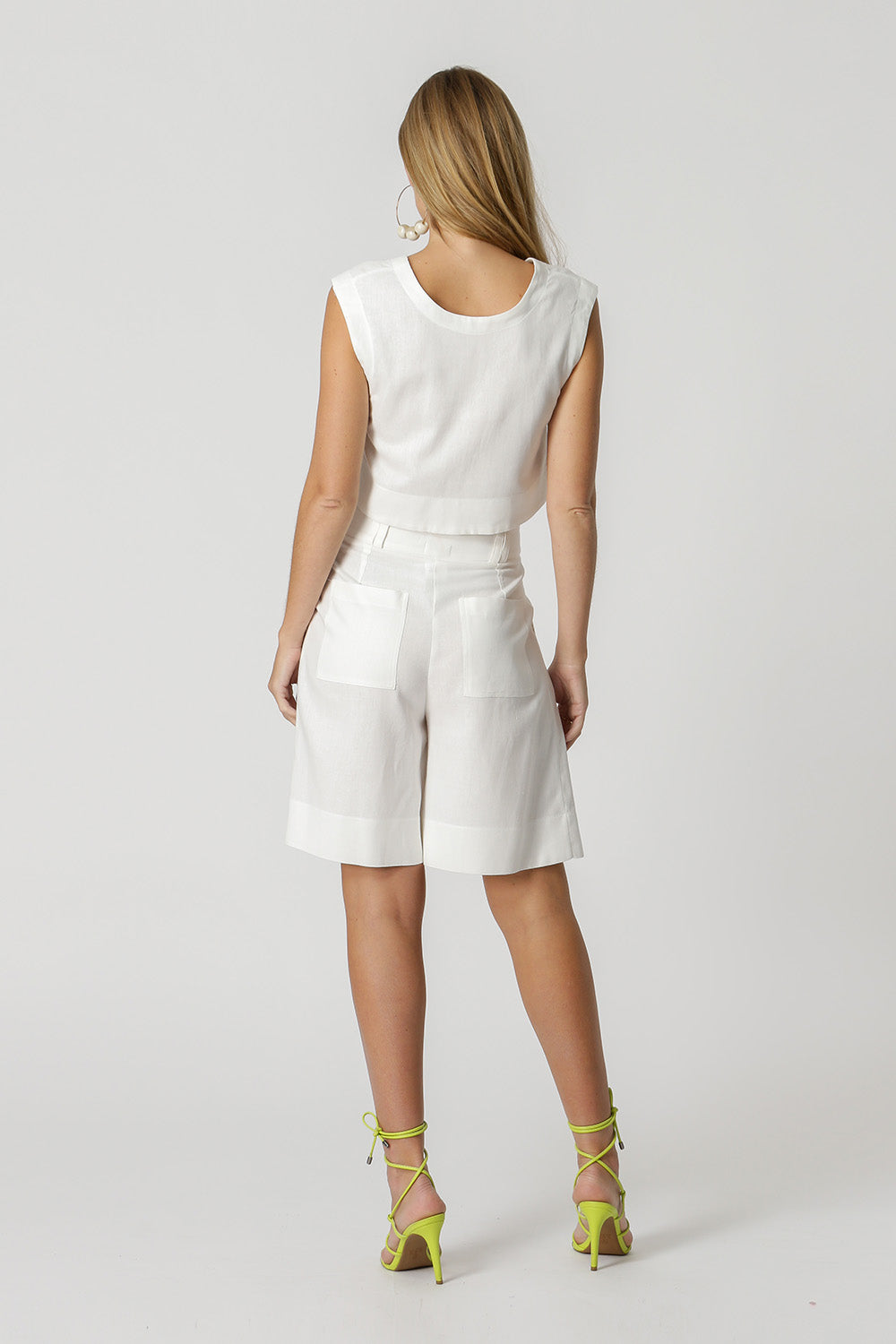Blusa cropped com botões. Confeccionada em tecido linho viscose. Pode ser usada com a parte dos botões para frente ou para trás. Uma pesça básica e perfeita para ocasiões casuais.