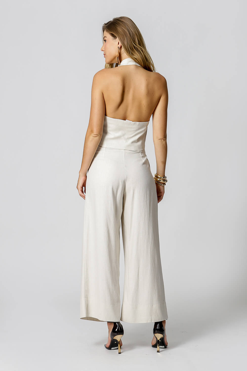 Blusa de linho frente única com transpasse e detalhe de fivela. Uma peça com muita informação de moda, aposte!