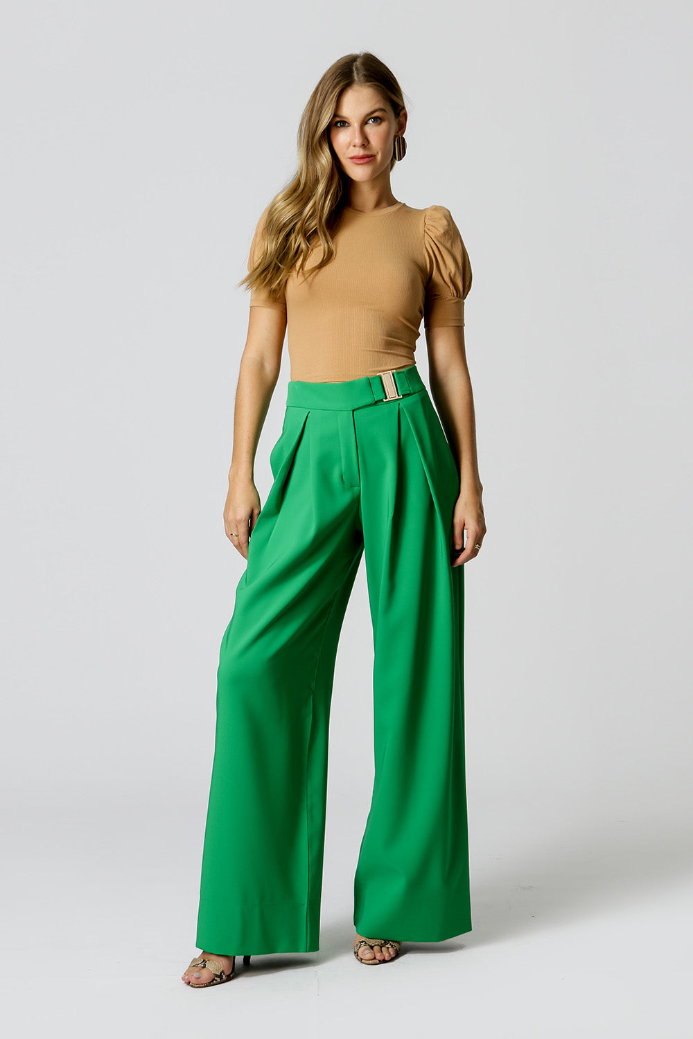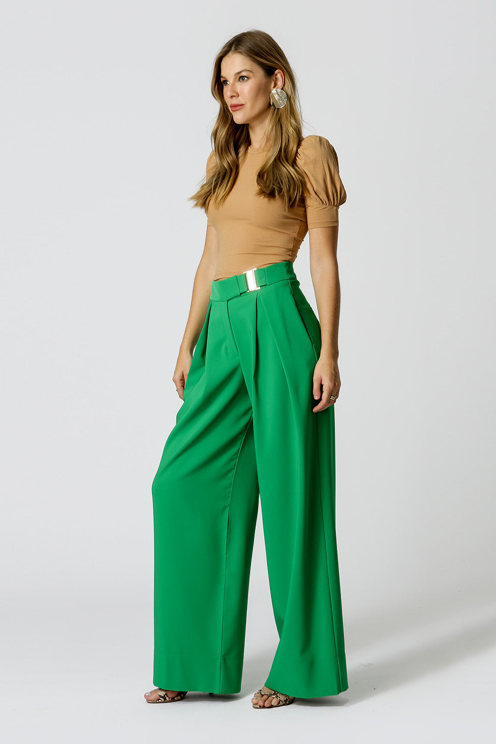 Blusa feita em malha canelada slim, com comprimento cropped e mangas bufantes diferenciadas, uma peça prática para o dia a dia.