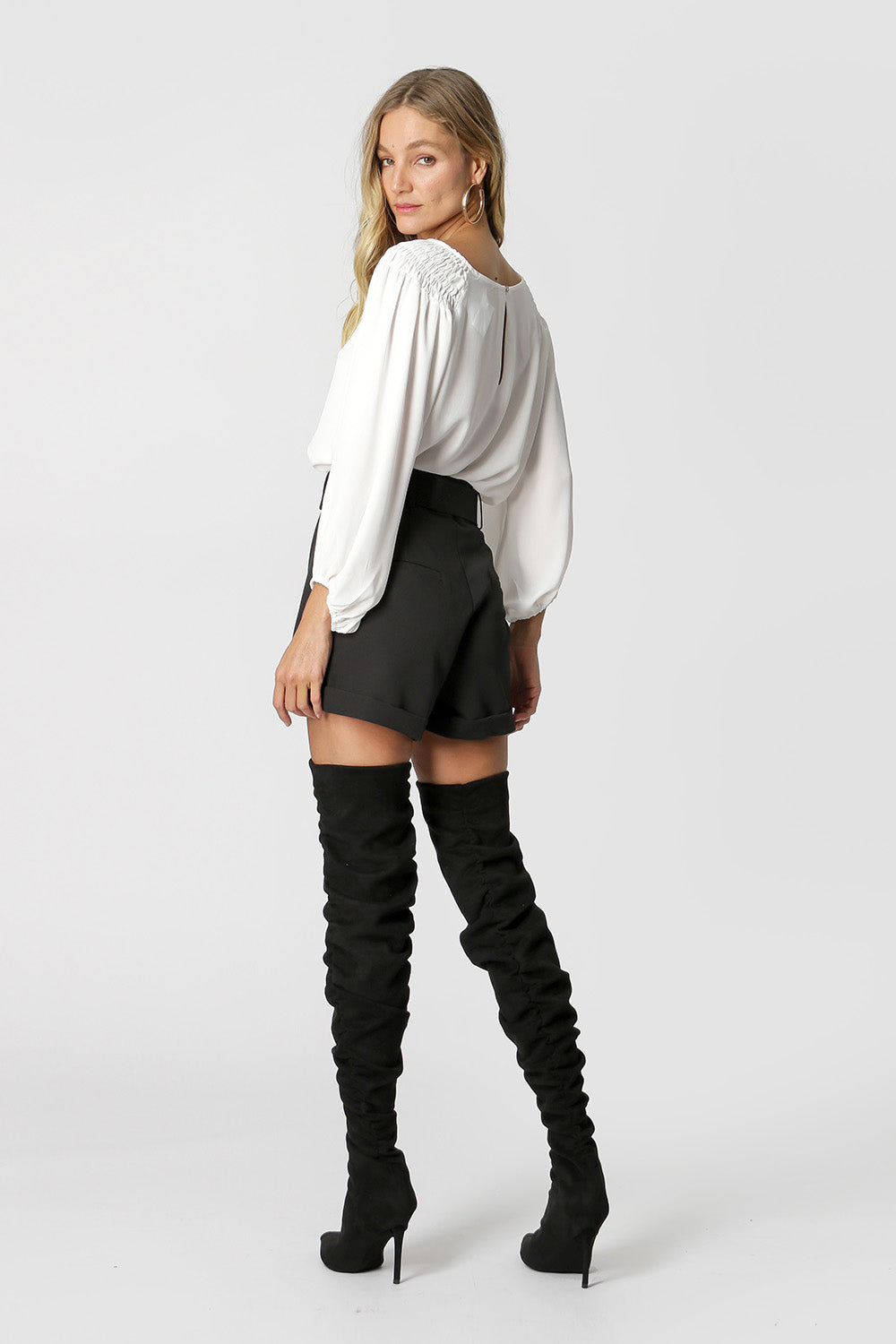 Blusa feita em tecido fluída, com shape mais solto e detalhe de lastex nos ombros. Peça versatil e feminina que pode ser usadas dos dois lados.