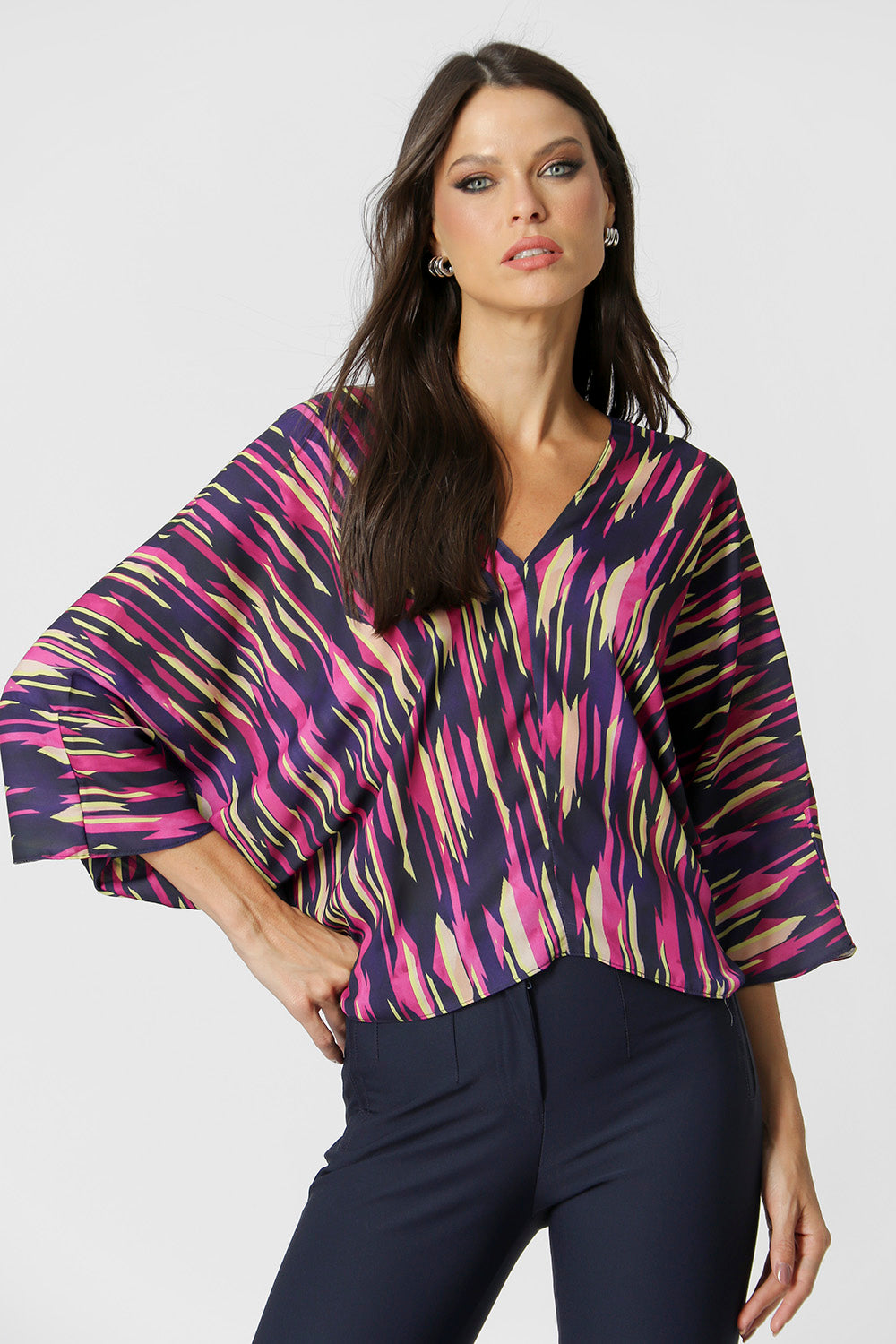 Blusa manga ampla estampada. Confeccionada no tecido crepe fluído. Uma peça versátil e que traz praticidade na hora de compor seus looks casual.